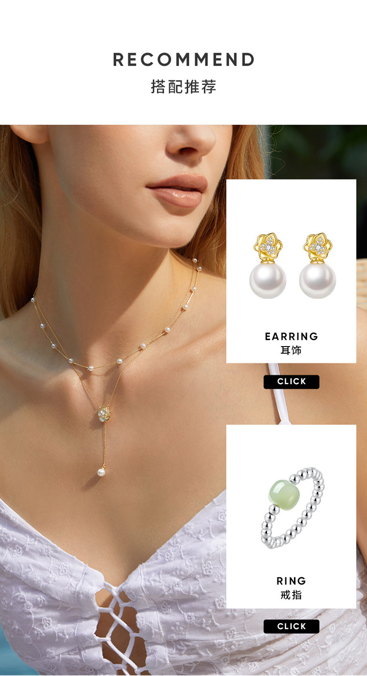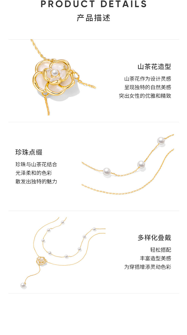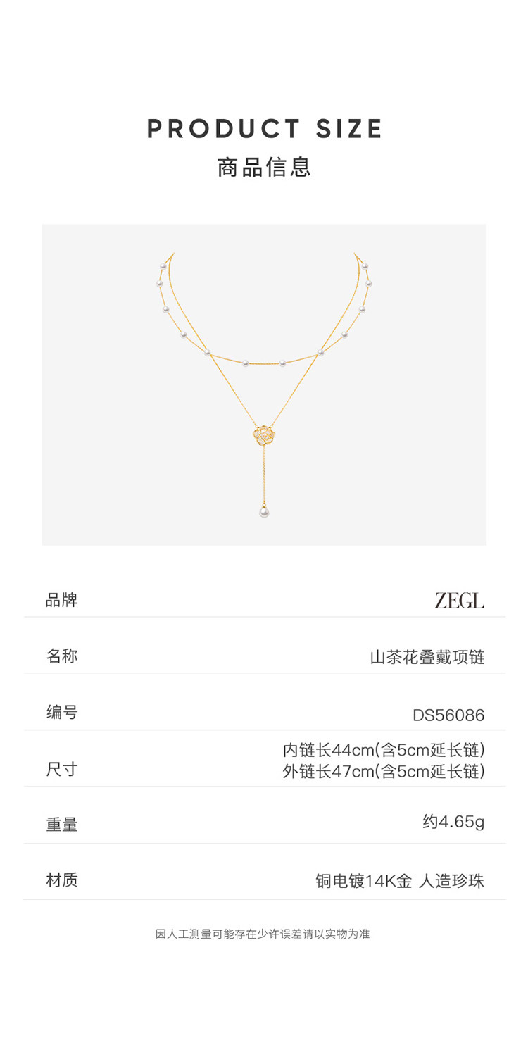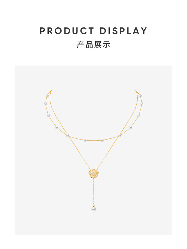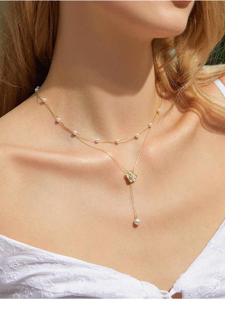 ZEGL人造珍珠山茶花項鍊女雙層曡戴鎖骨鍊小衆頸鏈毛衣鏈禮物春夏