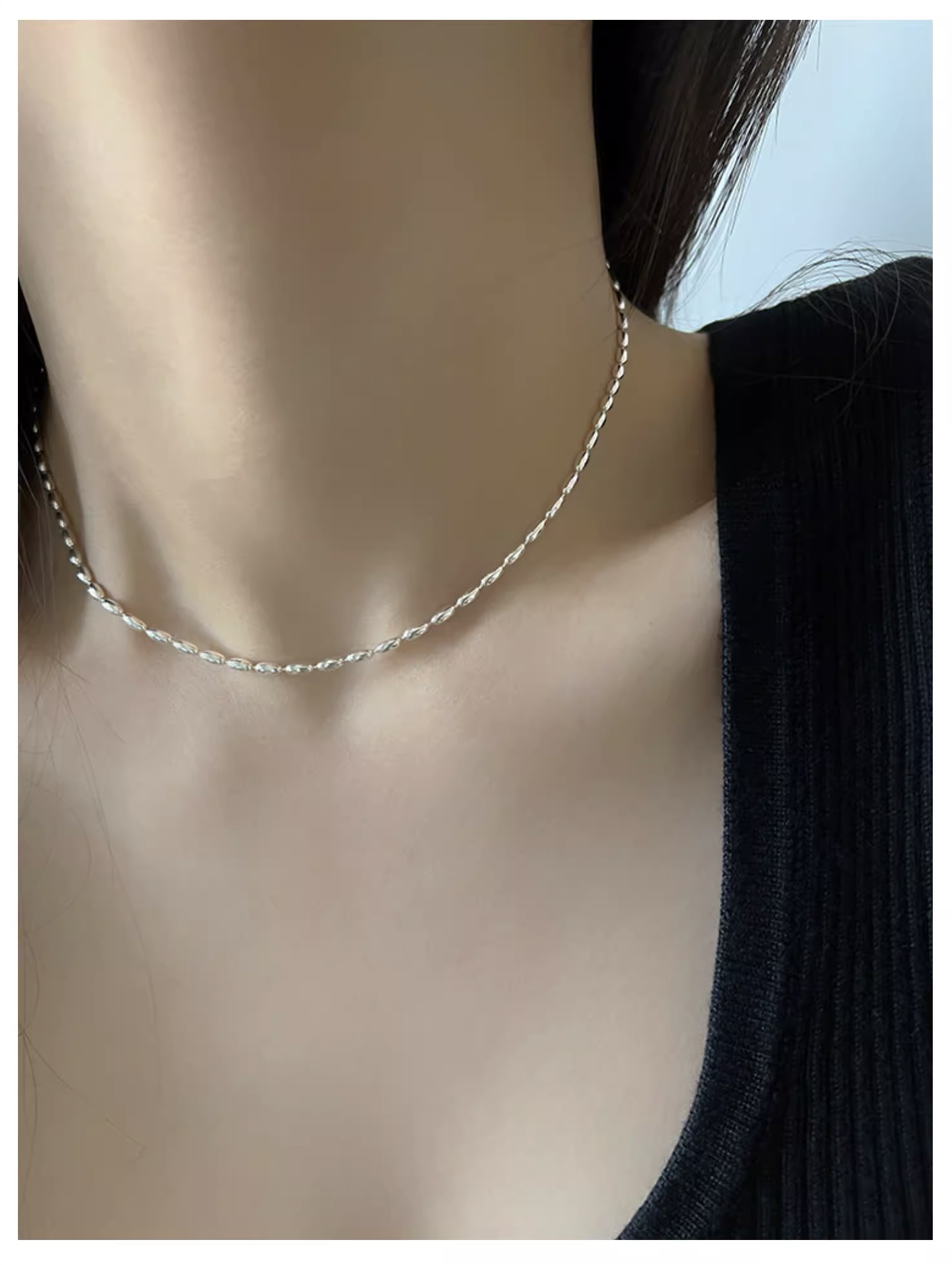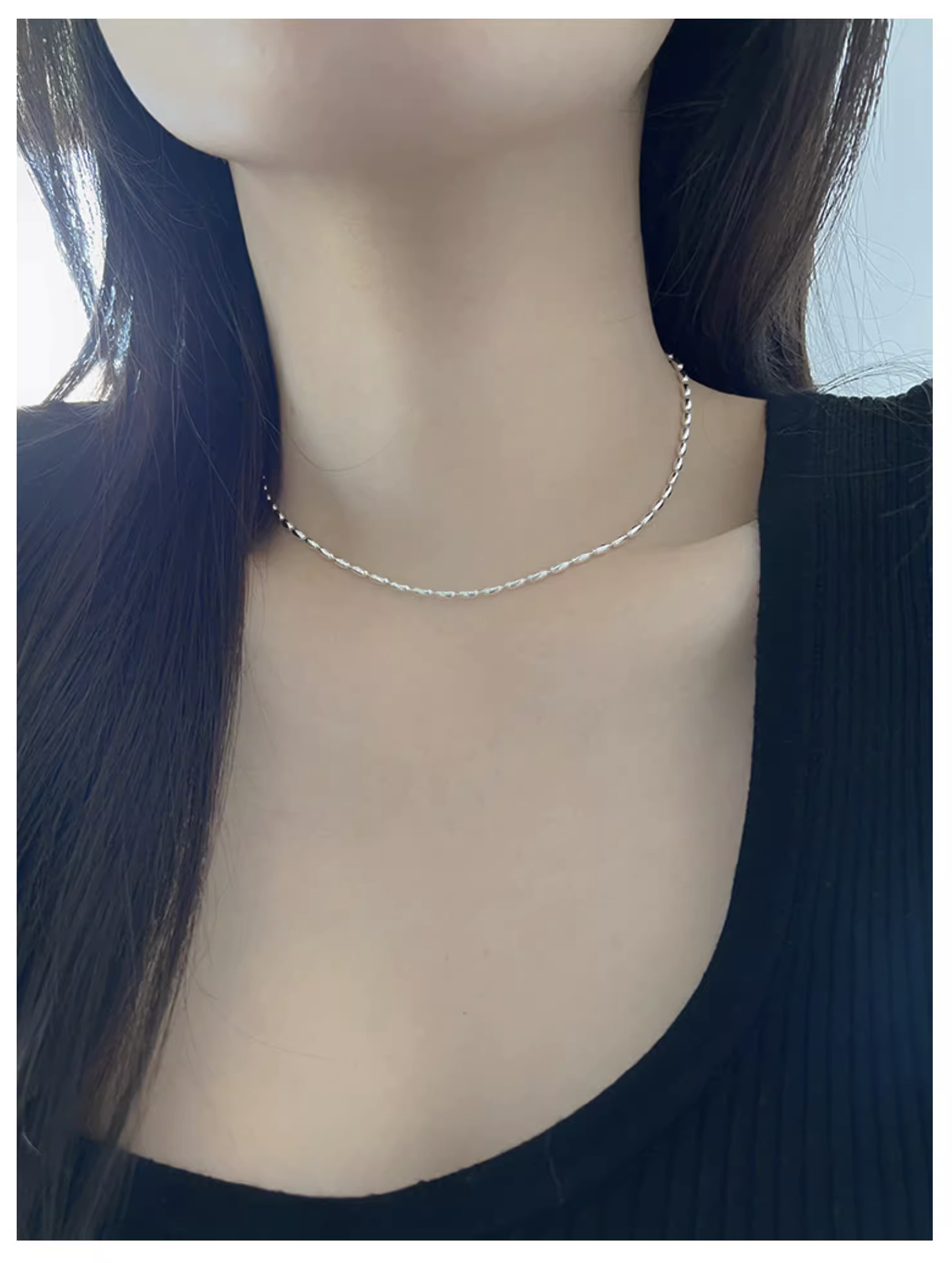 STANDii手作銀色小米粒項鍊choker極簡約百搭曡戴項圈高級感銀豆
