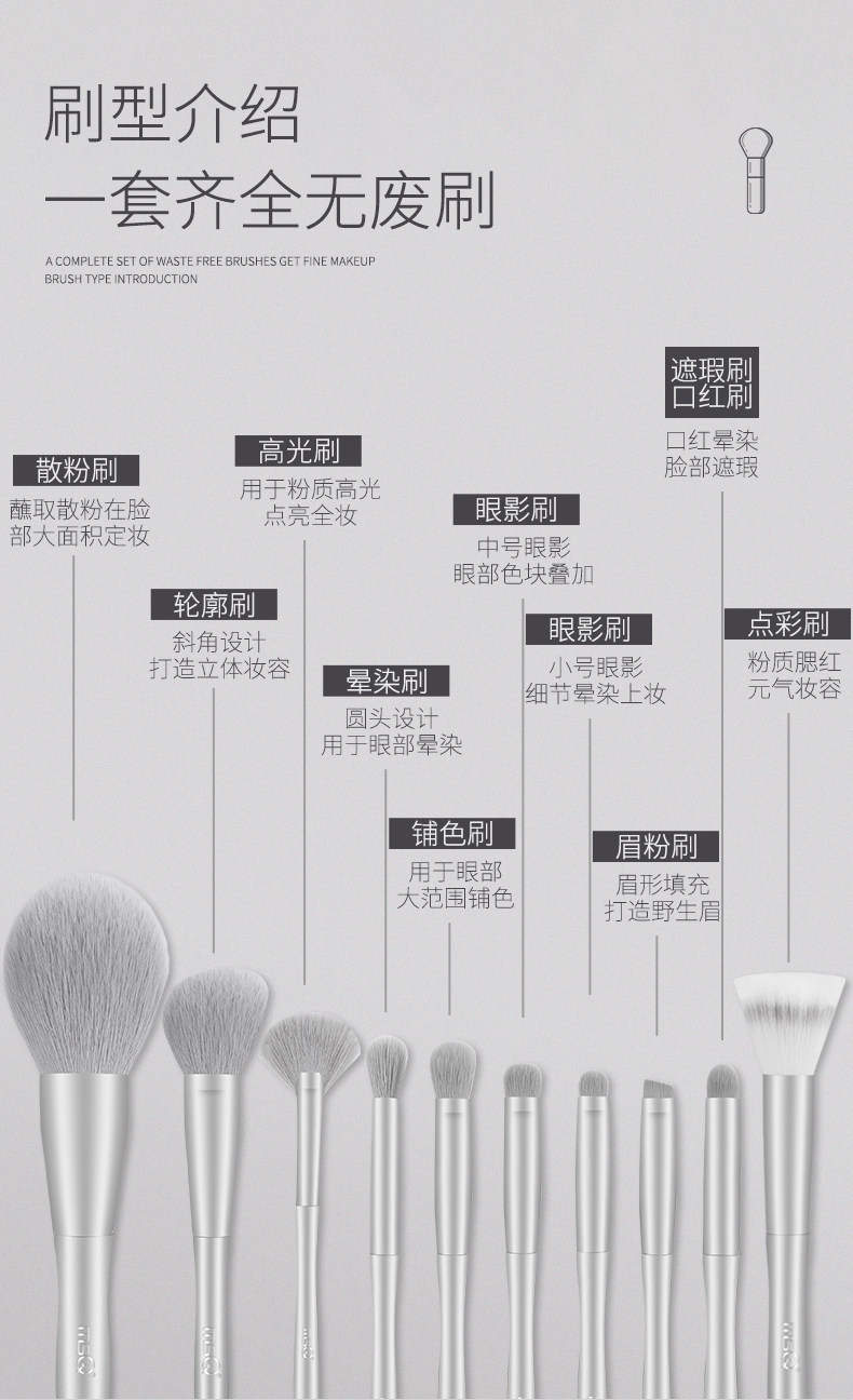 MSQ/魅絲蔻×琦兒聯名款10支銀素化妝刷套裝全套散粉刷遮瑕眼影刷