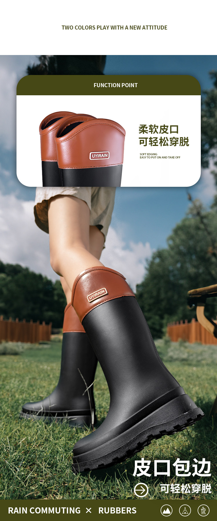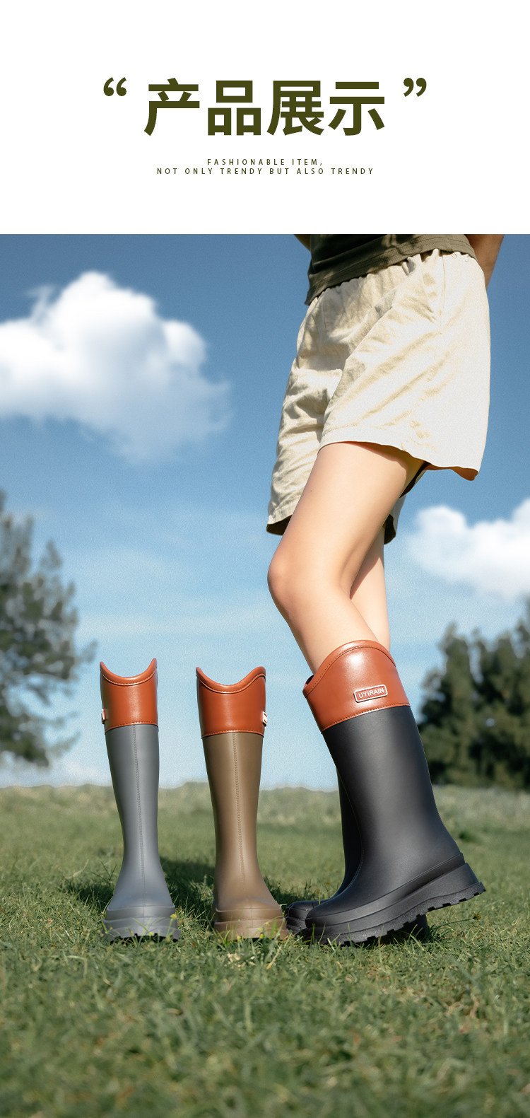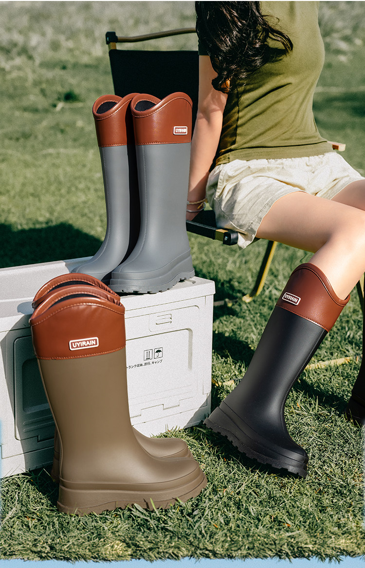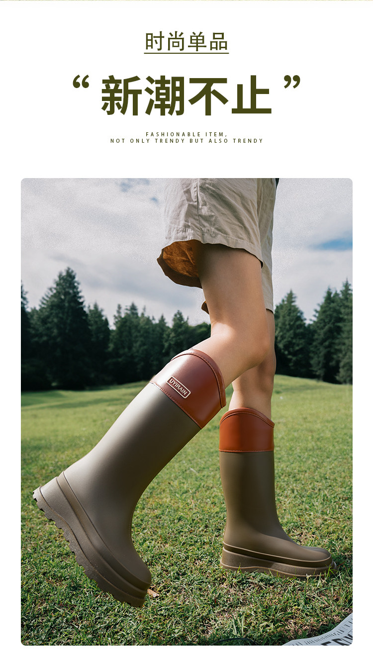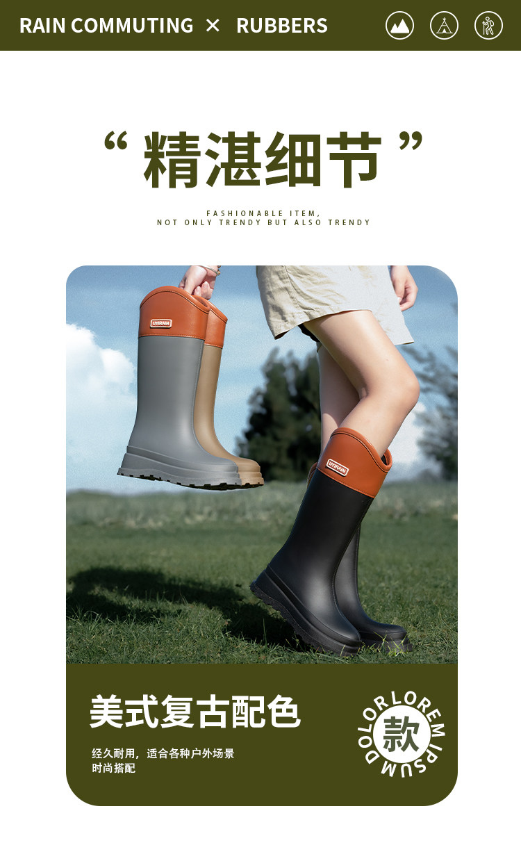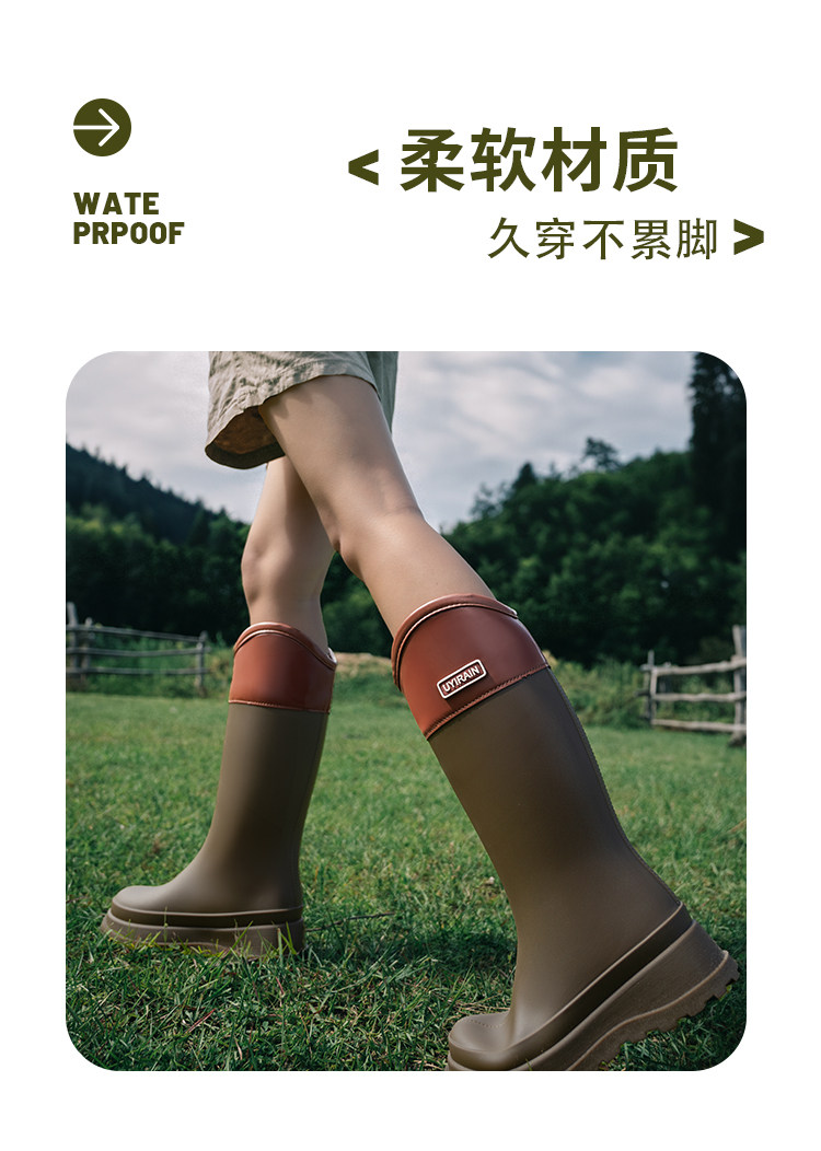 高筒雨鞋女時尚戶外加絨雨靴女款防滑防水鞋露營登山防滑膠鞋女士
