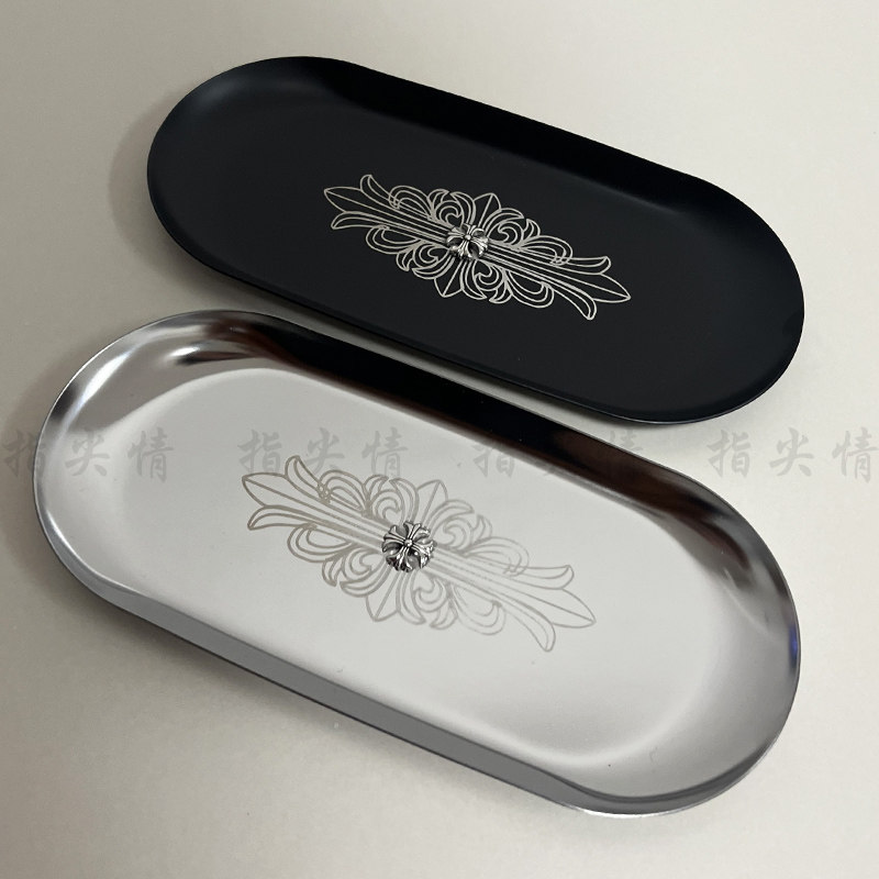 托盤不鏽鋼手卷盤卷菸收納馬口鐵橢圓金屬首飾收納裝飾客廳置物