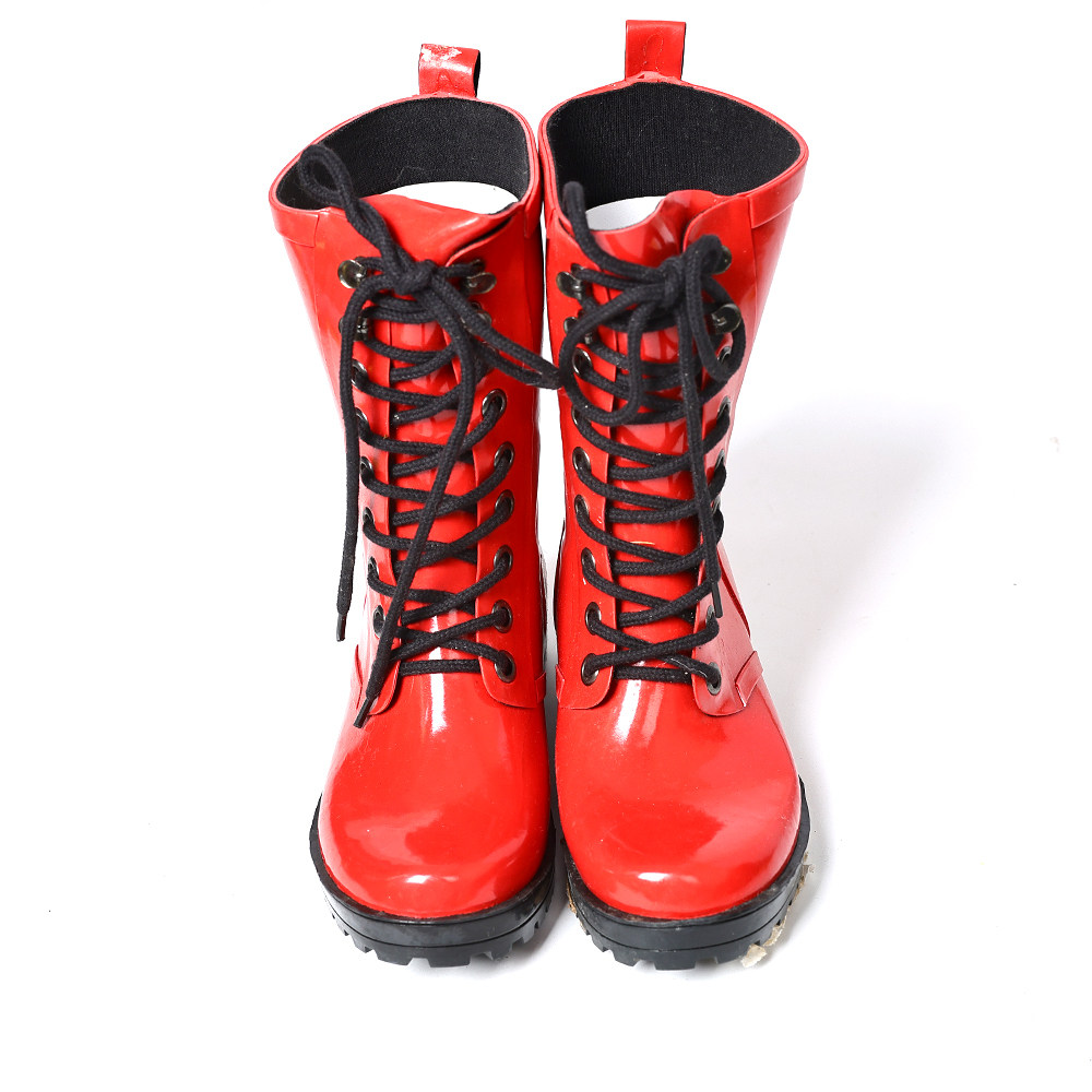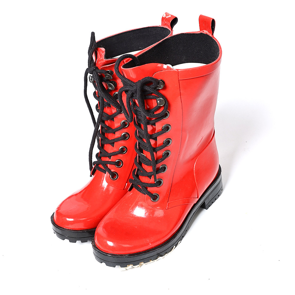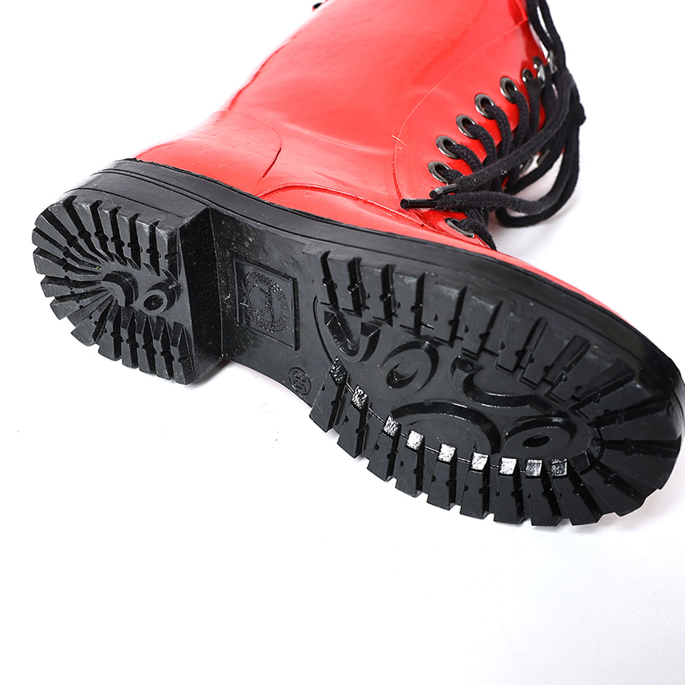時尚英倫風雨靴亮面漆皮9孔個性個性馬丁靴中幫鞋炸街騎士女短靴