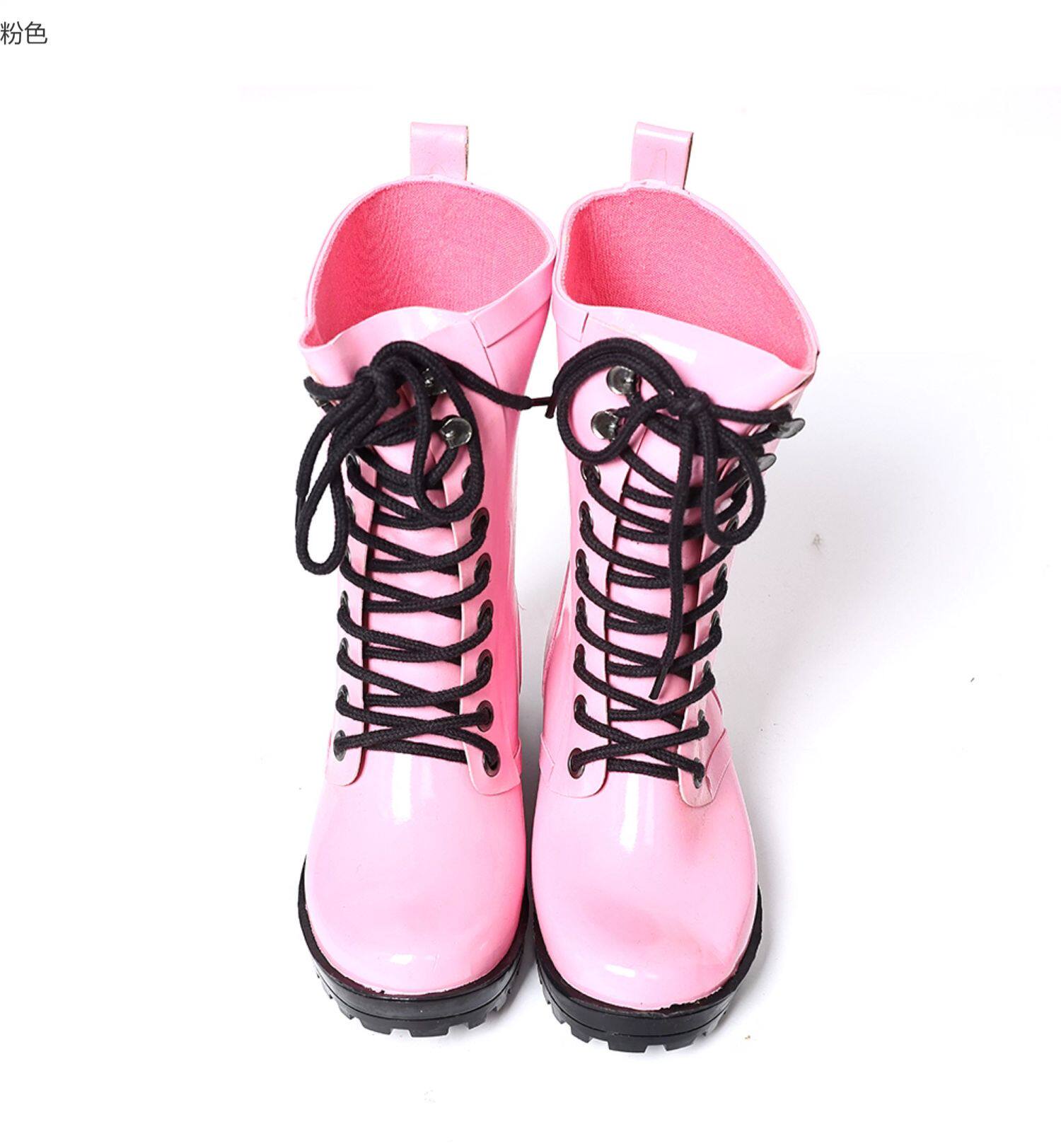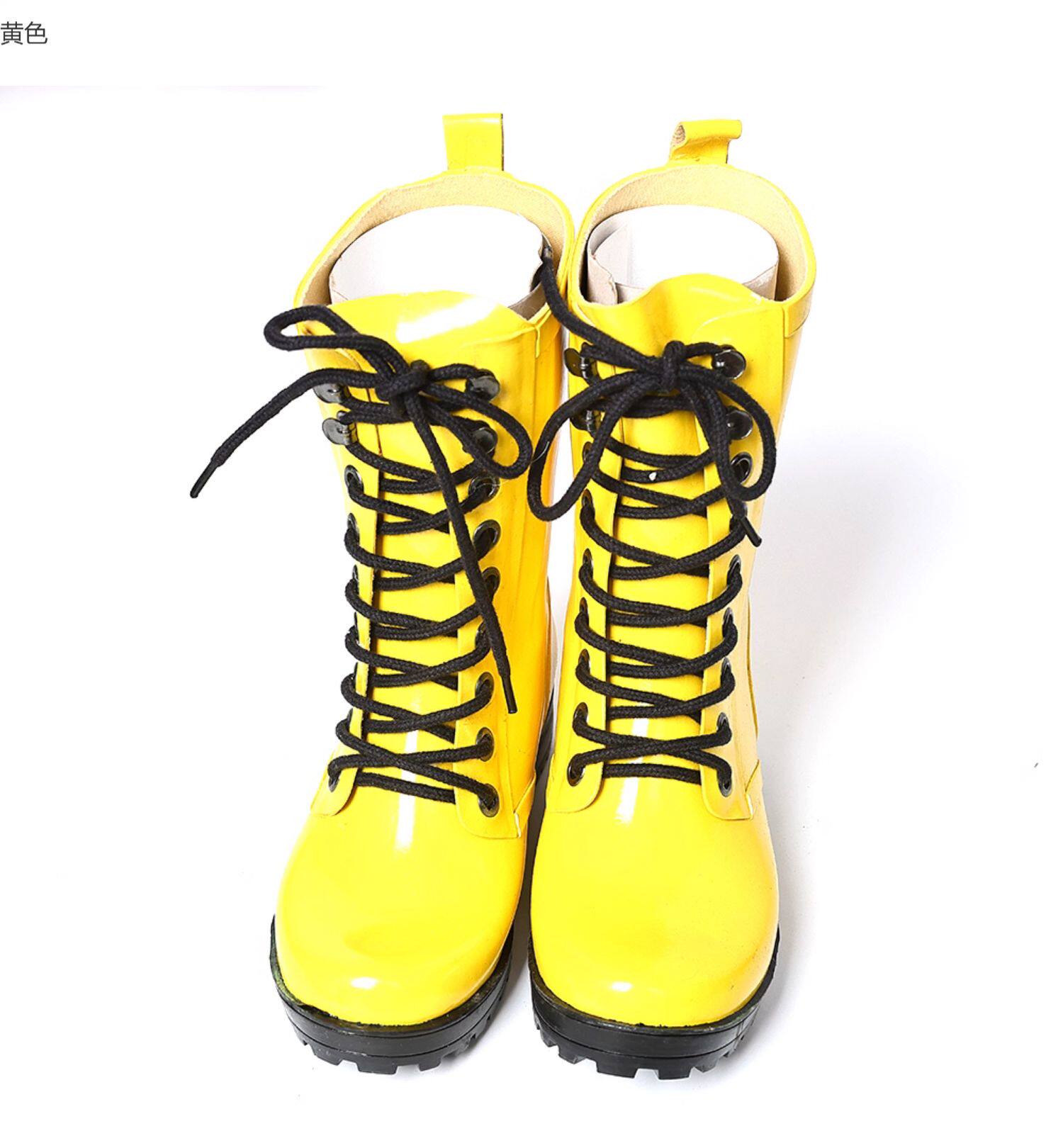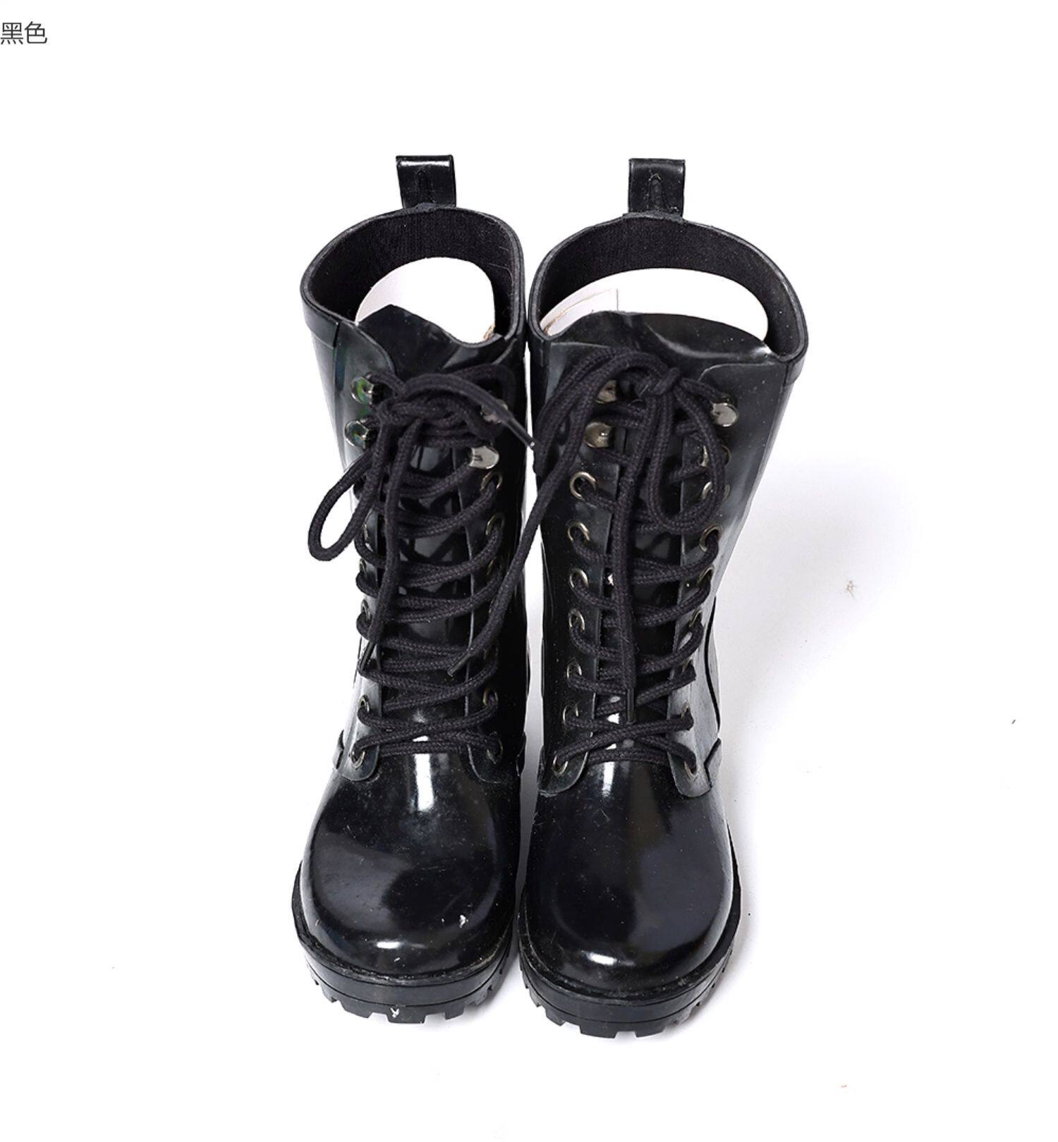 時尚英倫風雨靴亮面漆皮9孔個性個性馬丁靴中幫鞋炸街騎士女短靴
