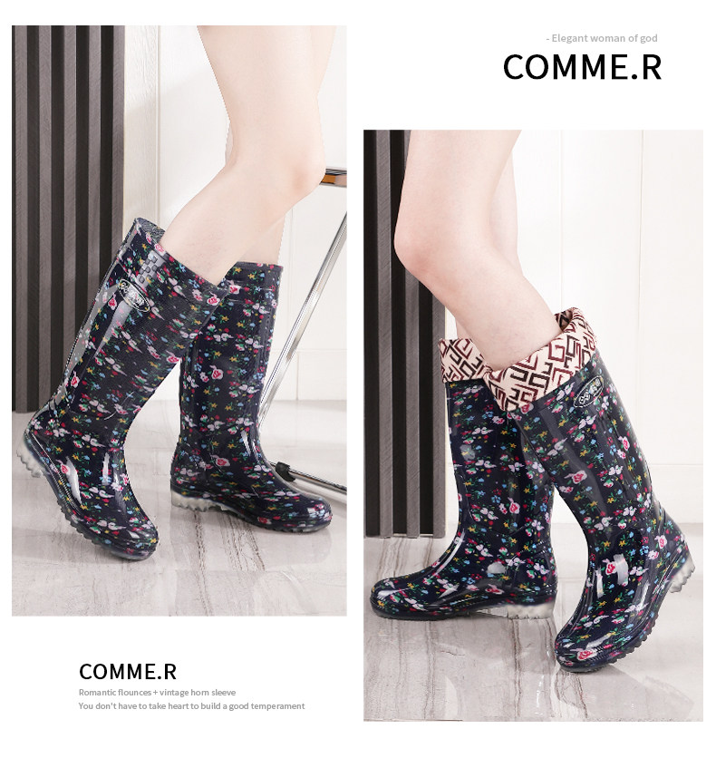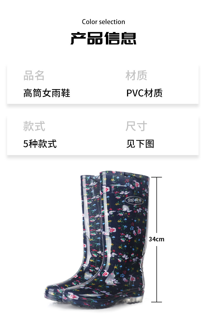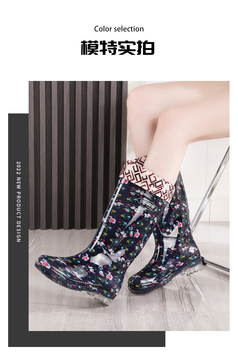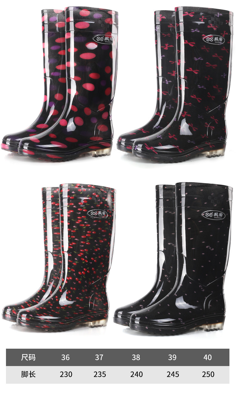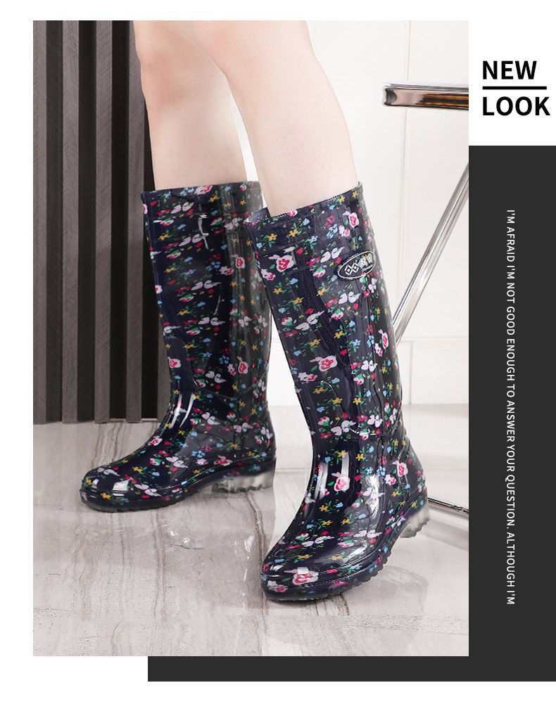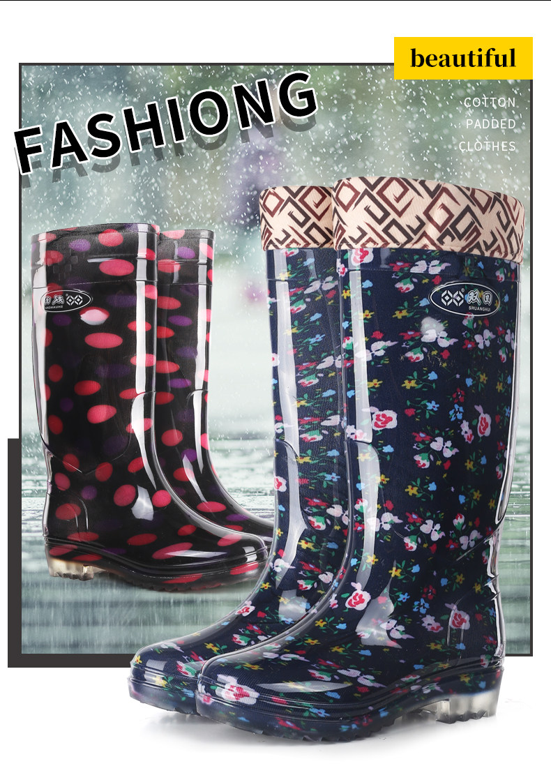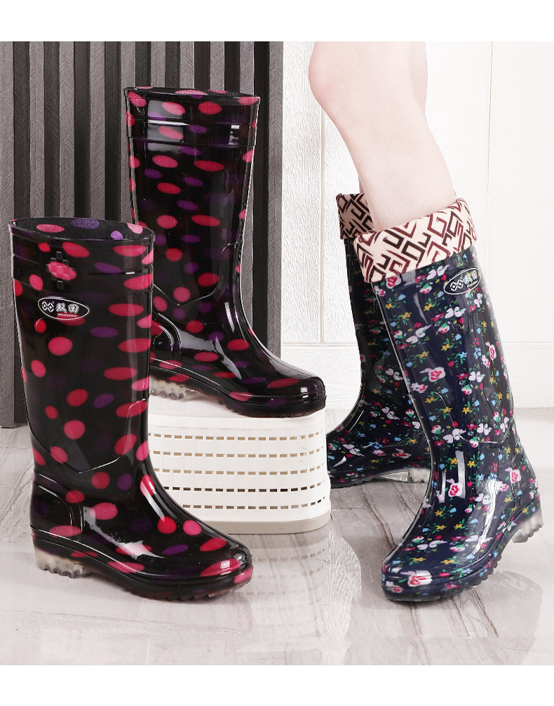 雙廻長筒水晶女雨靴高筒花布媽媽田園水靴廚房防滑防水鞋勞保膠鞋
