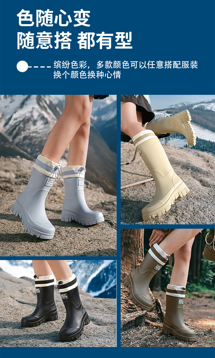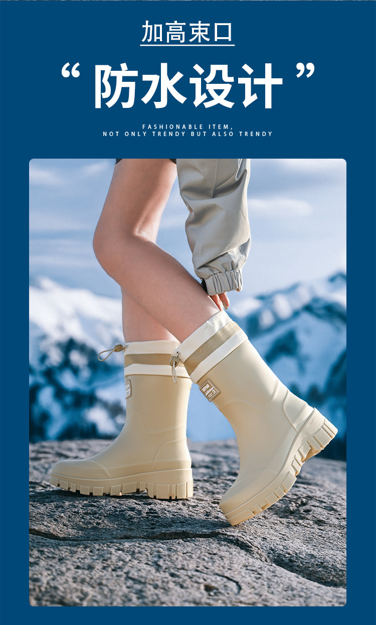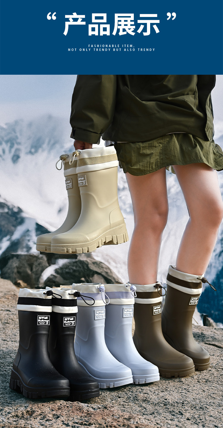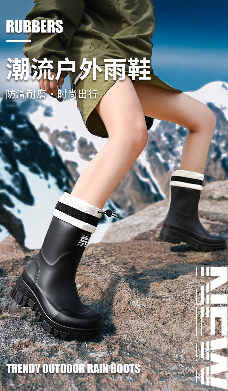 時尚雨鞋女款2025新款中筒雨靴戶外防滑登山徒步厚底膠鞋成人水鞋
