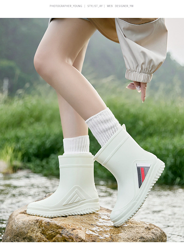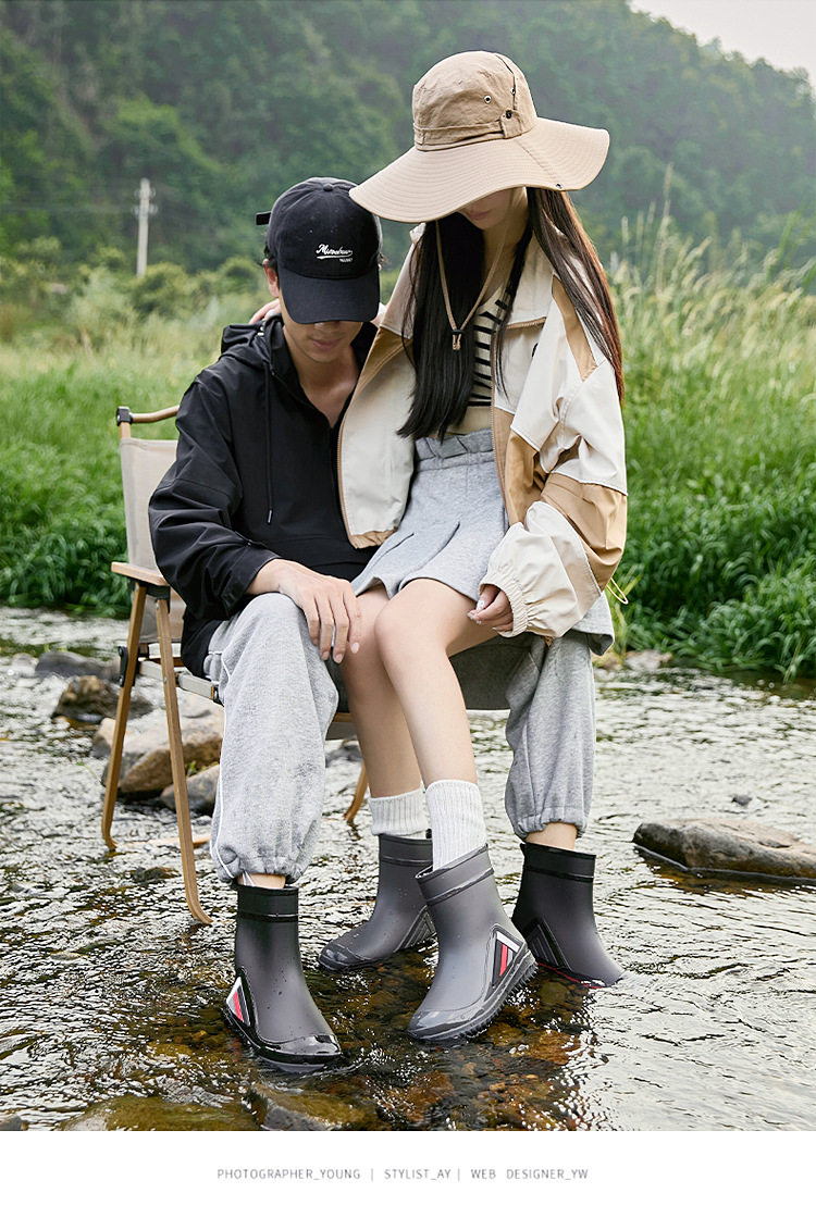 新款男女士中筒水鞋休閒加厚防滑束口保暖雨鞋釣魚廚房洗車男膠鞋