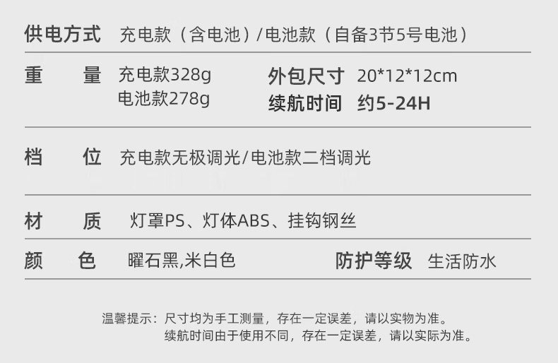 | 連續照明時間 | 2-24小時 |