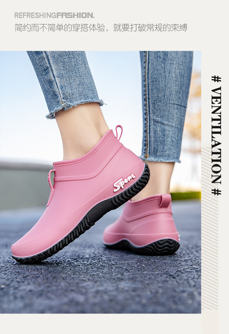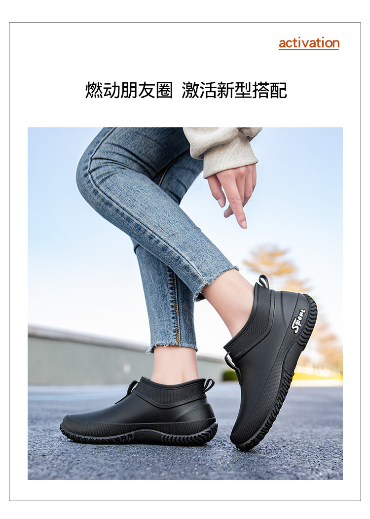 短筒防水防滑耐磨拼色低筒雨鞋女款潮流厚底時尚輕便女士防水膠鞋