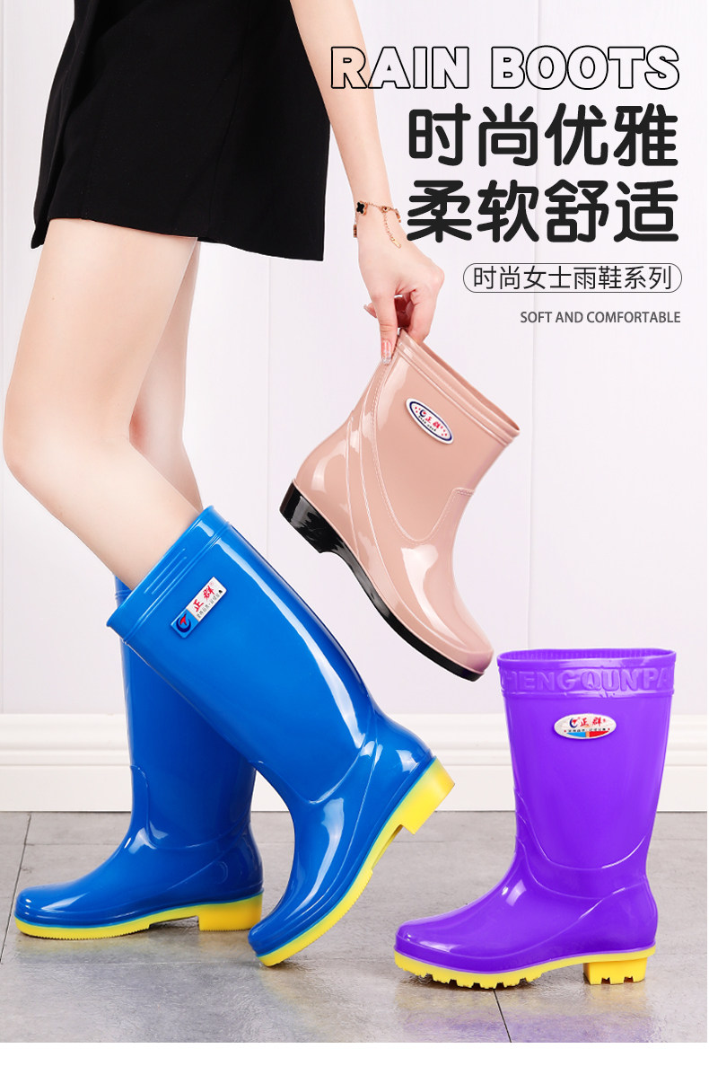 正群高筒時尚女雨靴夏季速乾無網布海邊養殖膠鞋純膠無裡布水鞋女