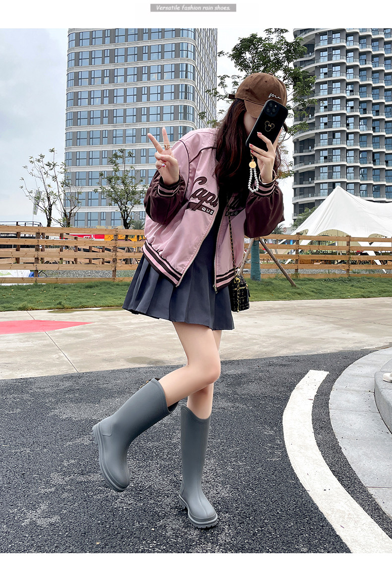 高檔灰色雨鞋女款夏2026新款防滑防水鞋高筒雨靴戶外徒步露營水鞋