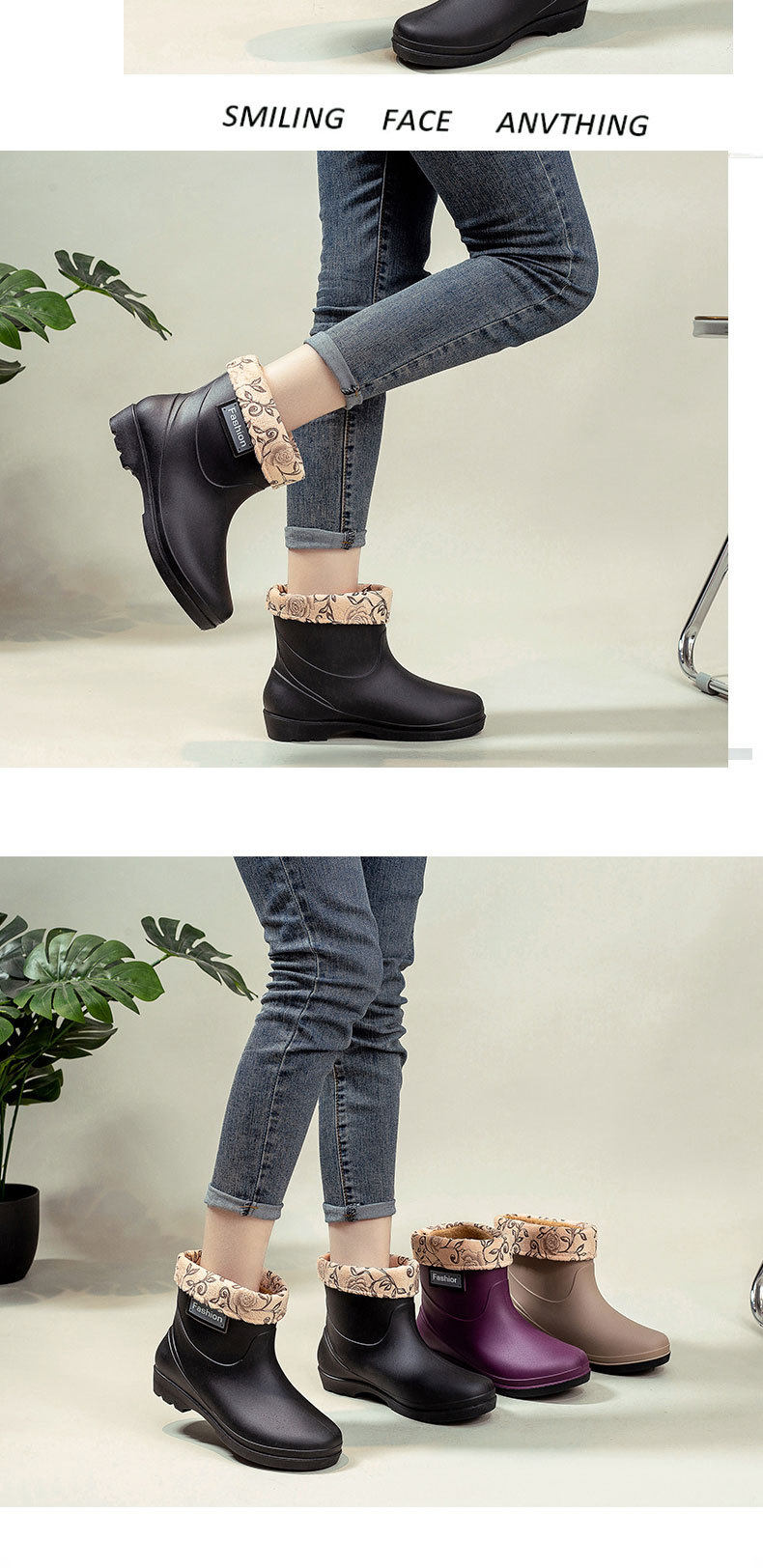 水鞋女秋冬季加絨短筒防水耐磨廚房時尚雨鞋套鞋防滑膠鞋踩水雨靴