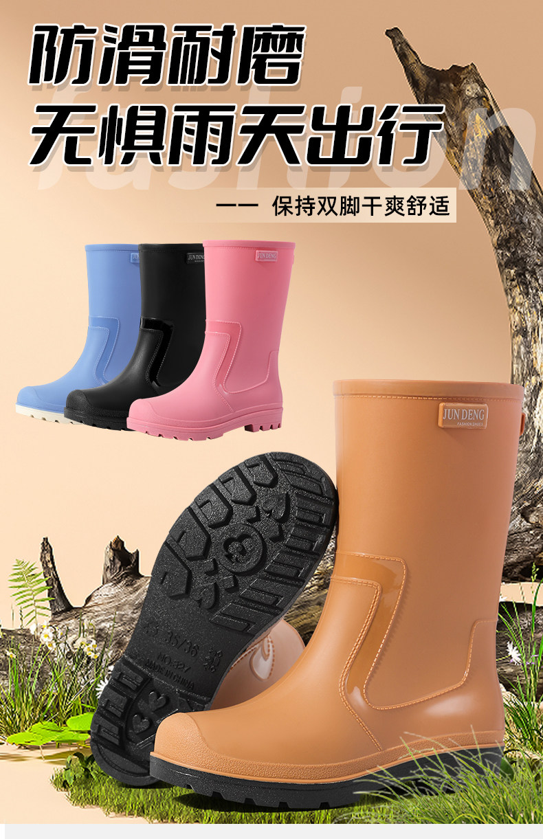 軍登雨鞋女士時尚水鞋廚房矽膠防滑防水鞋耐磨水靴中筒膠鞋雨靴女