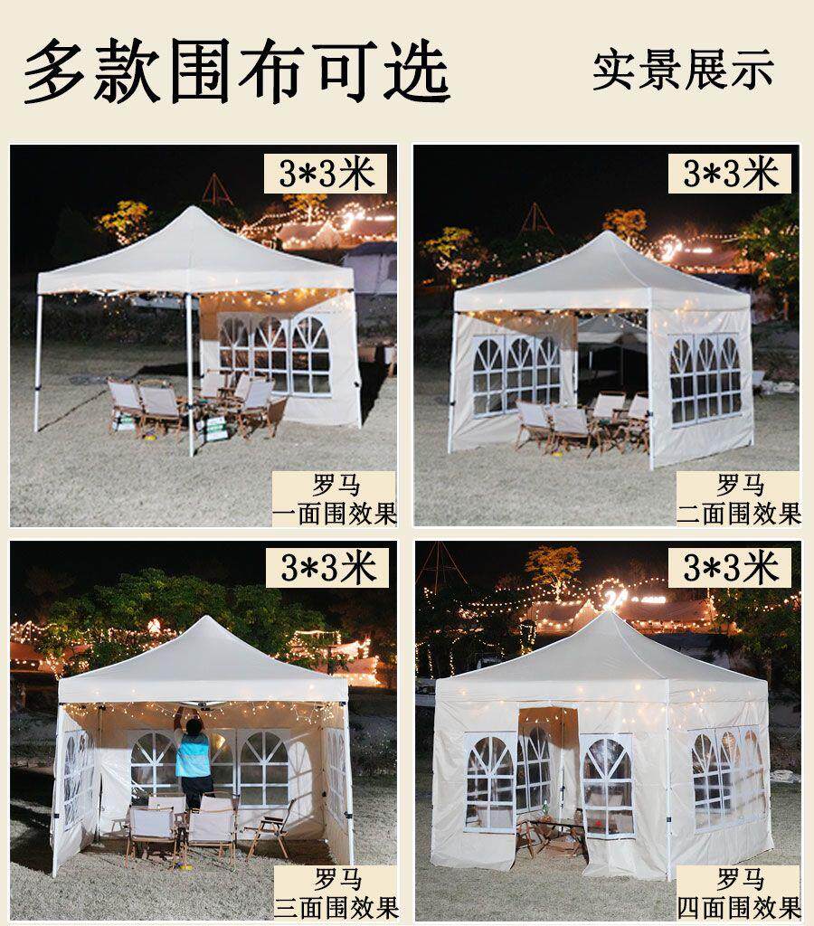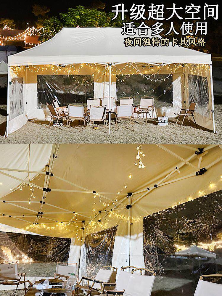 戶外四腳帳篷夜市擺地攤四角大傘透明加厚圍布防曬遮陽雨篷傘卡其
