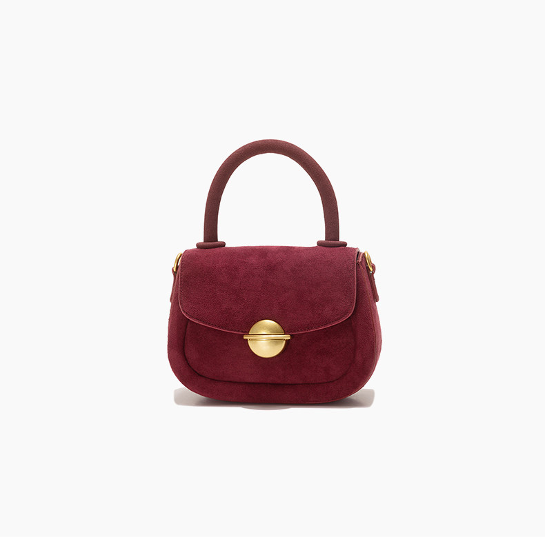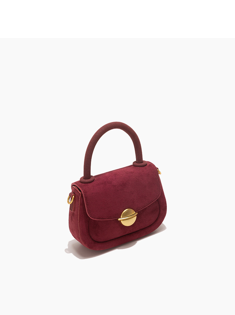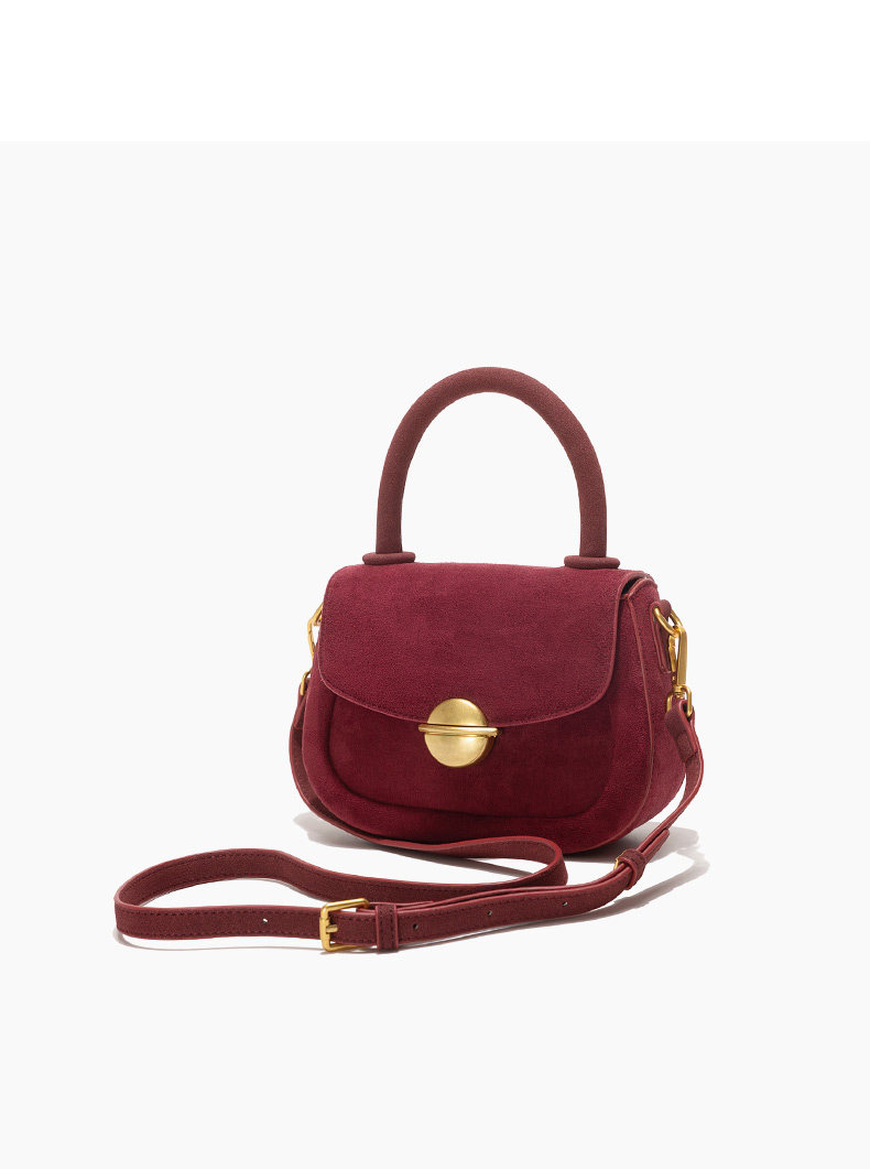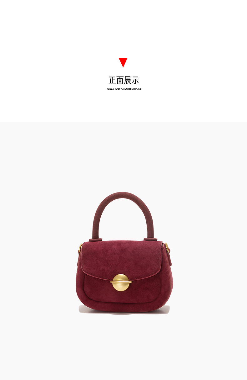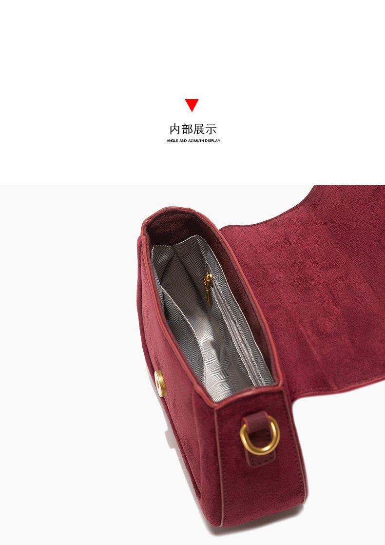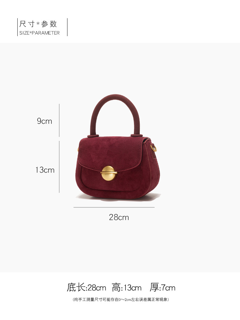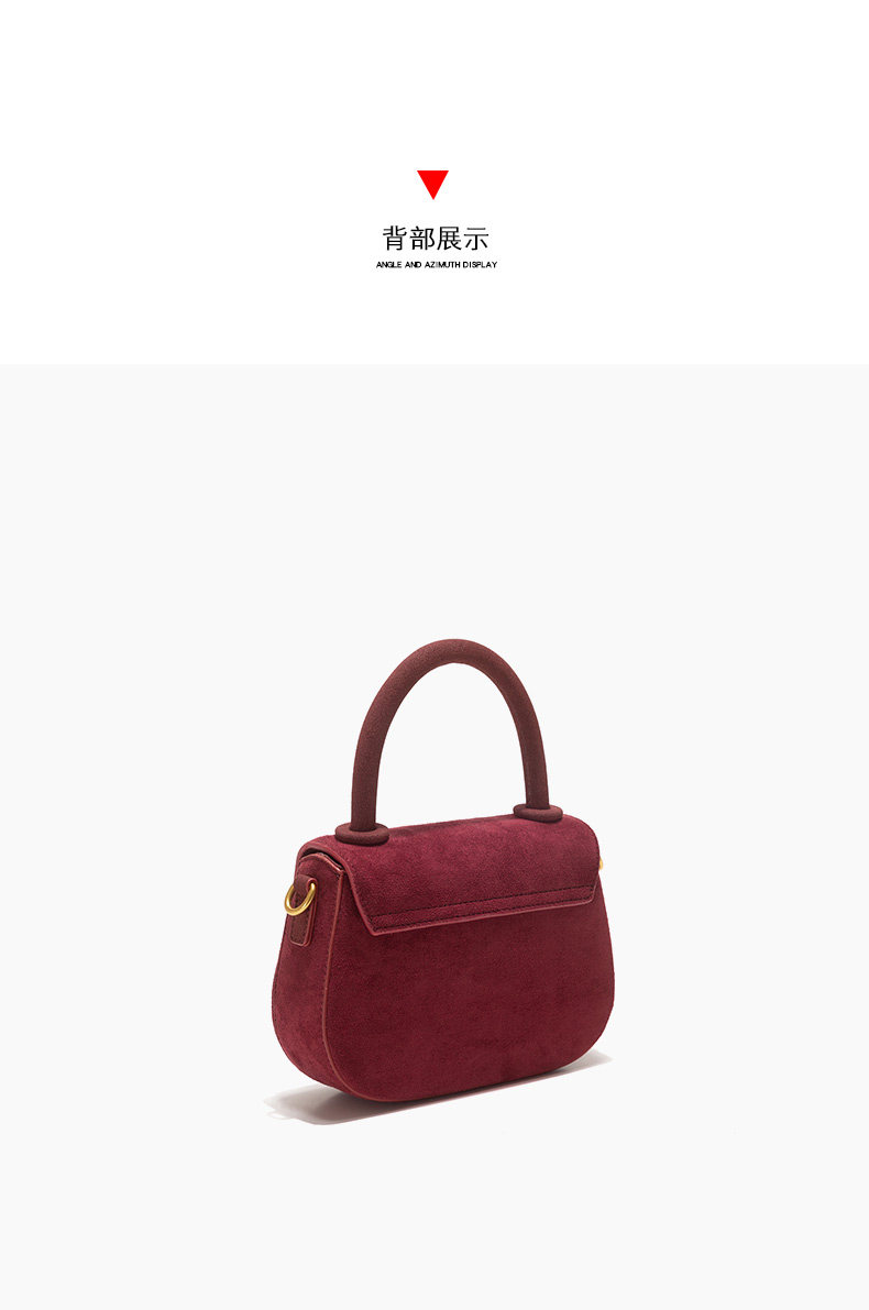 小衆麂皮手提包包女2026春季新款紅色馬鞍包高級感百搭單肩斜後後背包