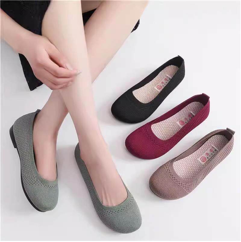 老北京布鞋女夏季飛織網面透氣豆豆鞋軟底軟面媽媽鞋淺口鏤空涼鞋