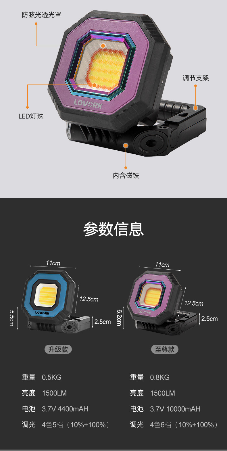 LOVORK樂沃可小瓦力led戶外露營燈應急營地照明充電投光燈探照野