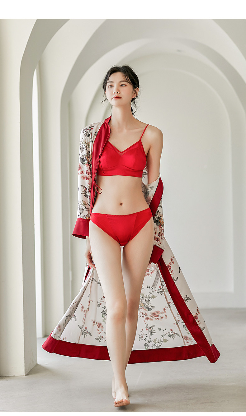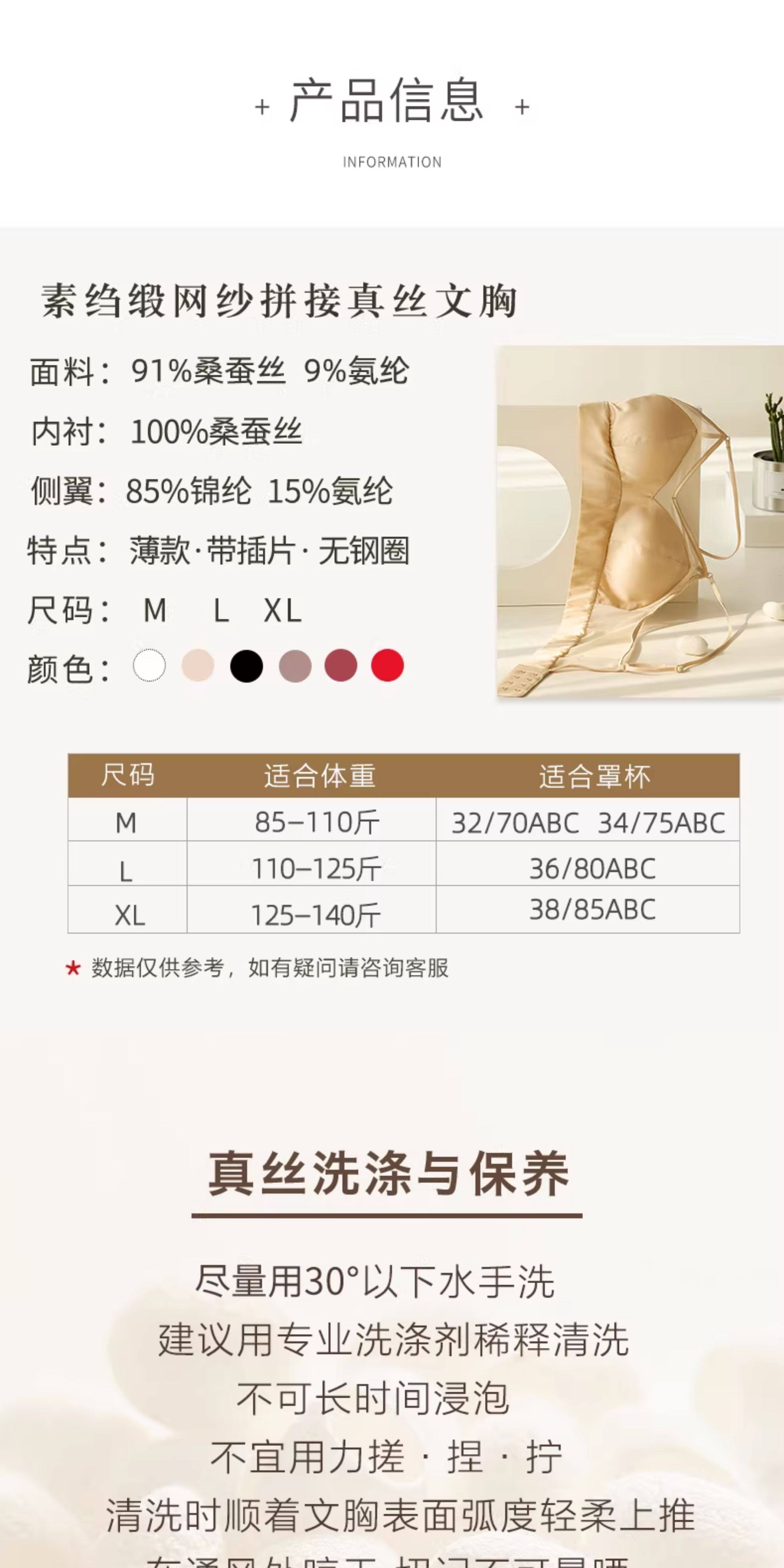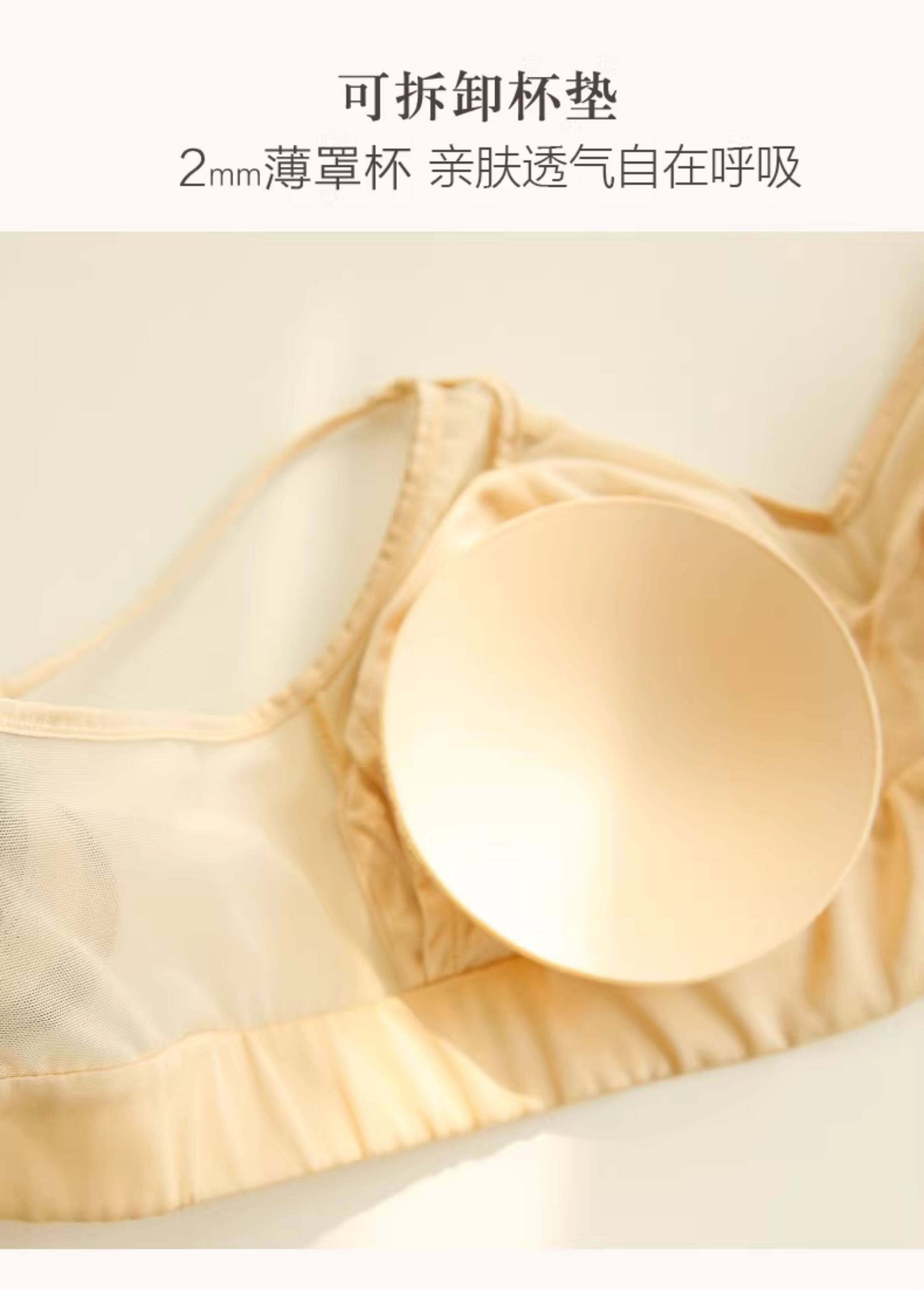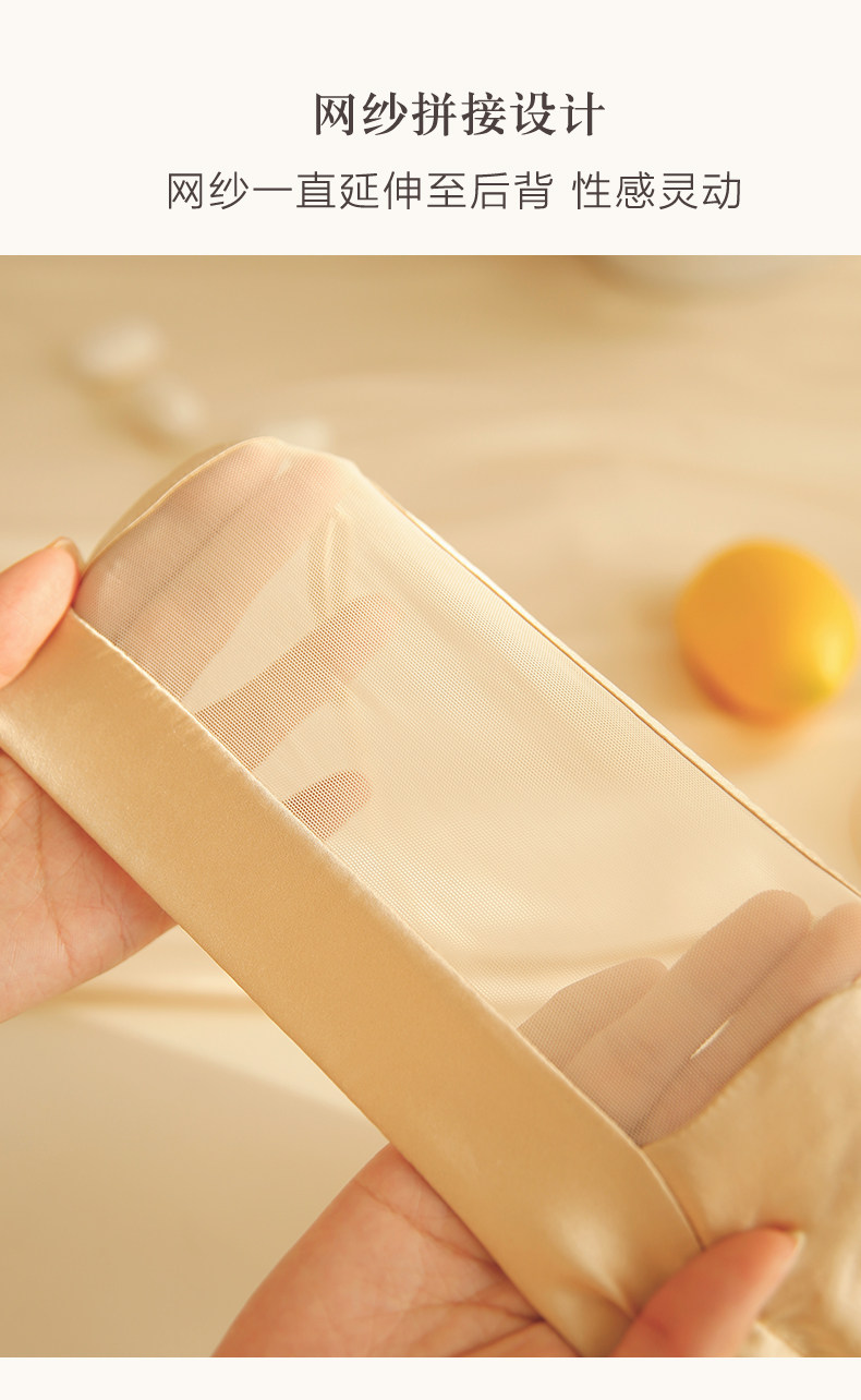 Fimage/有致雙面真絲內衣女緞面無鋼圈法式美背細肩帶桑蠶絲文胸