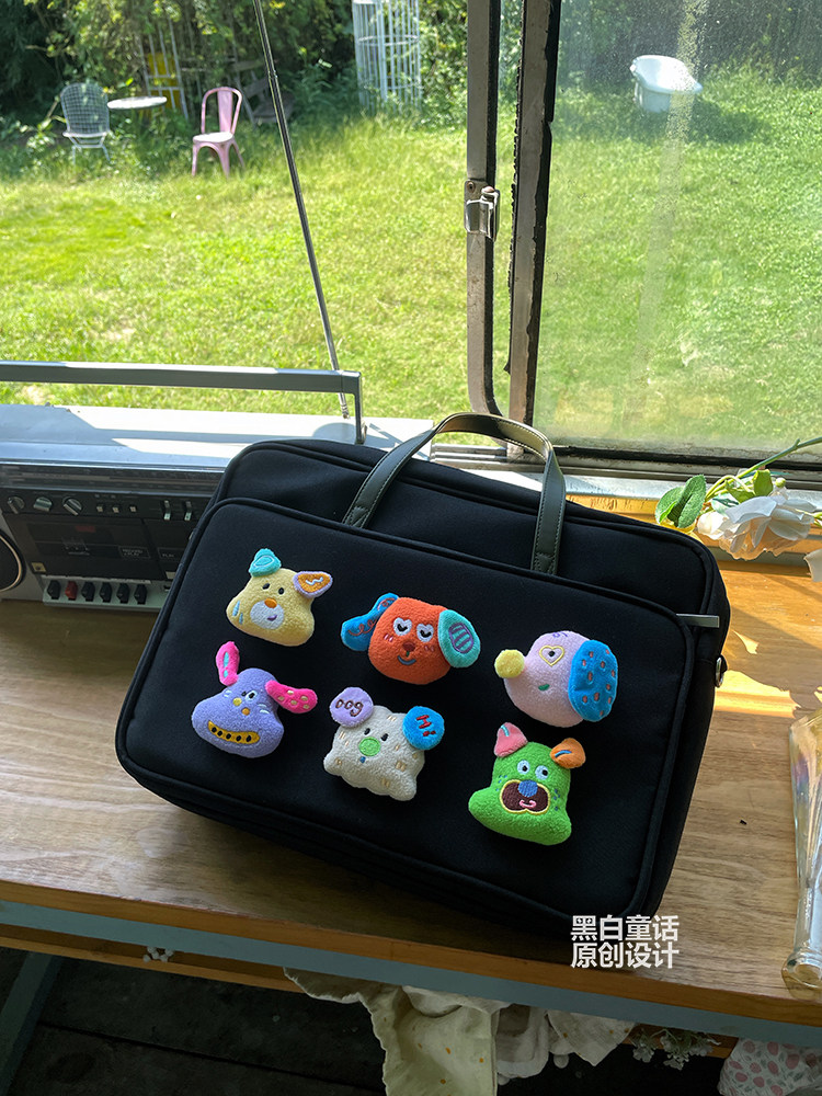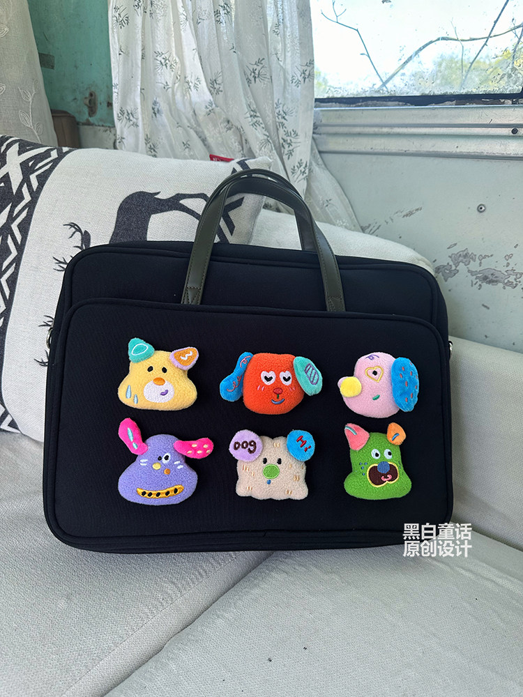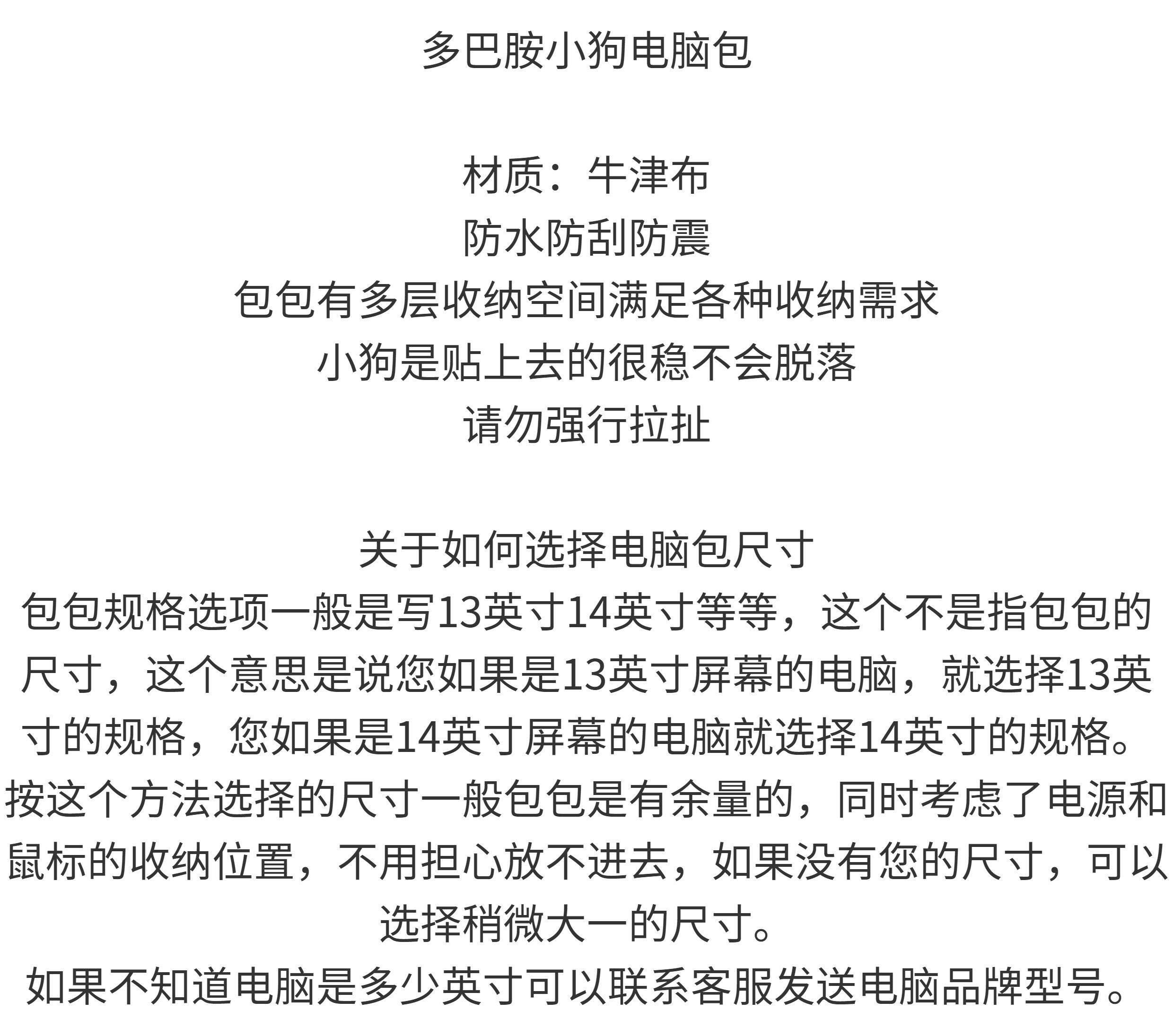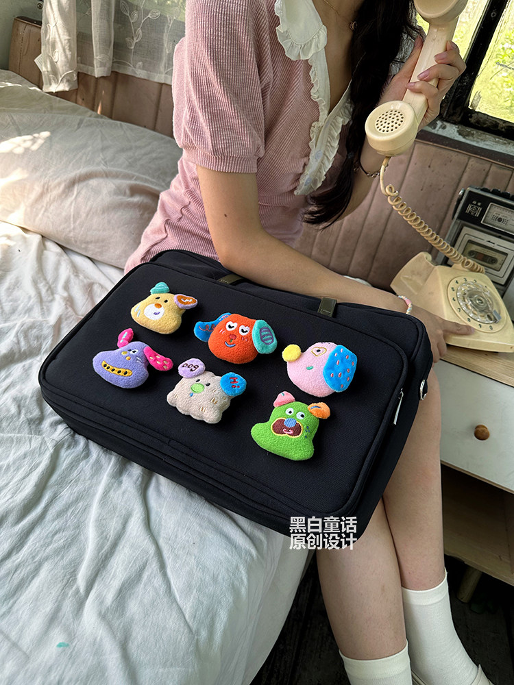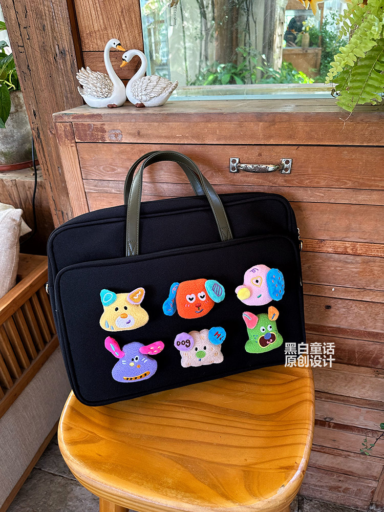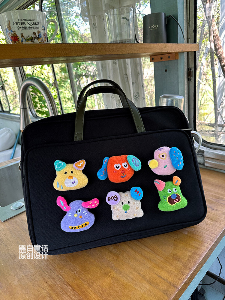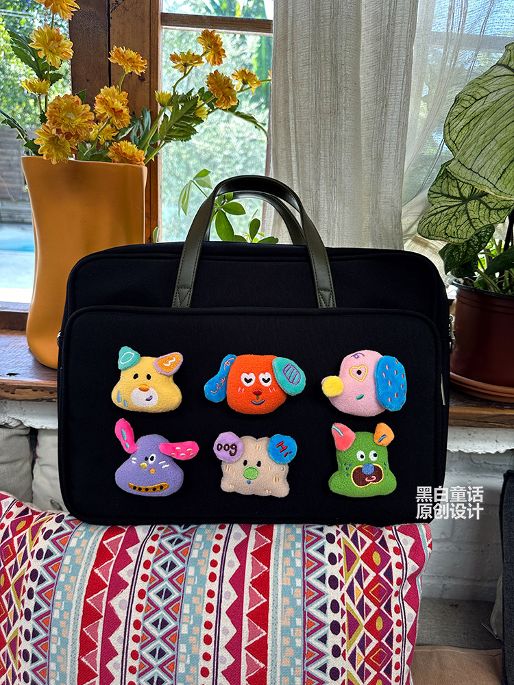 可愛風高顔值多巴胺卡通小狗公仔貼布筆電斜背電腦包女16英寸小衆設計收納包大容量適用聯想拯救者R7000
