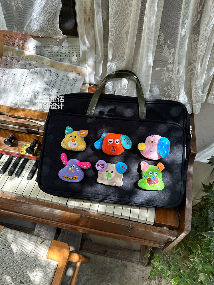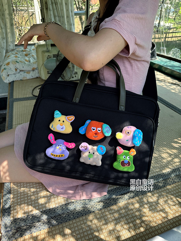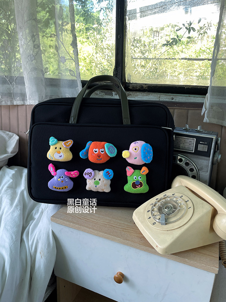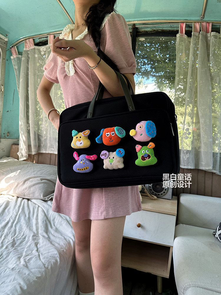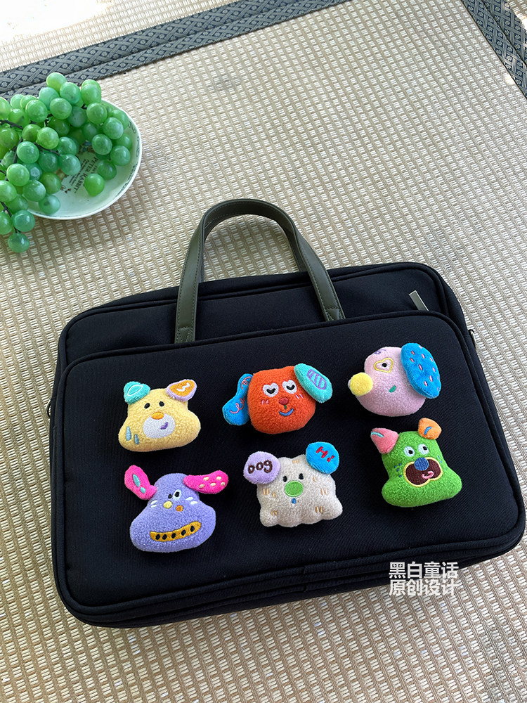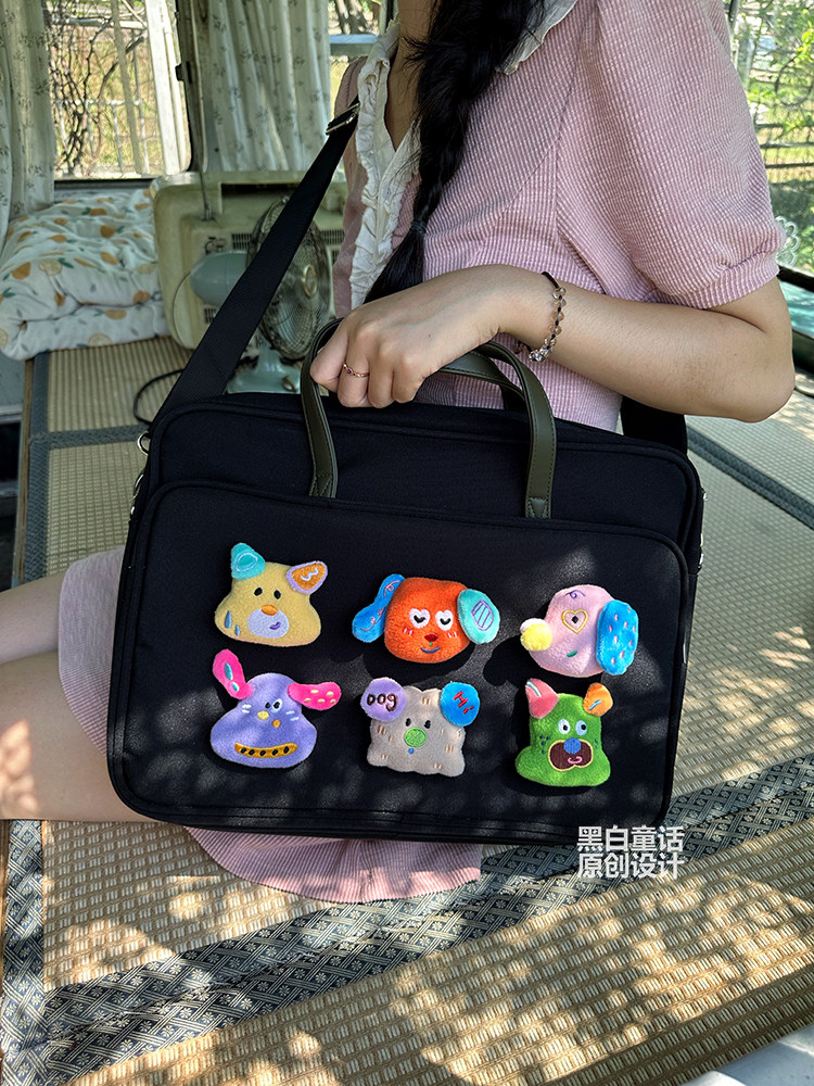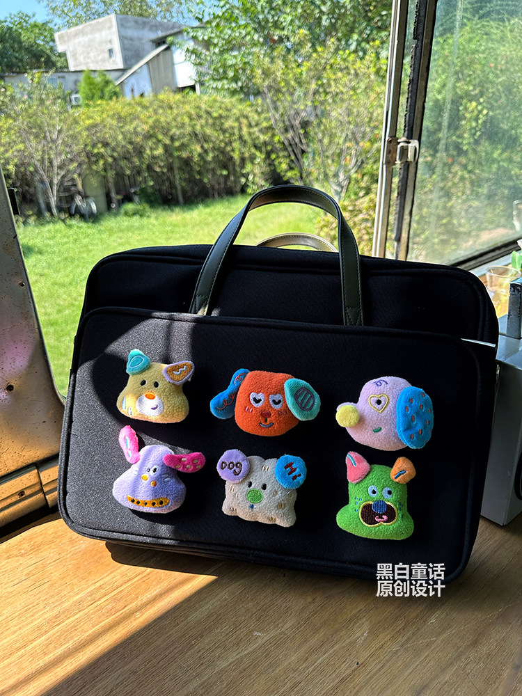 可愛風高顔值多巴胺卡通小狗公仔貼布筆電斜背電腦包女16英寸小衆設計收納包大容量適用聯想拯救者R7000