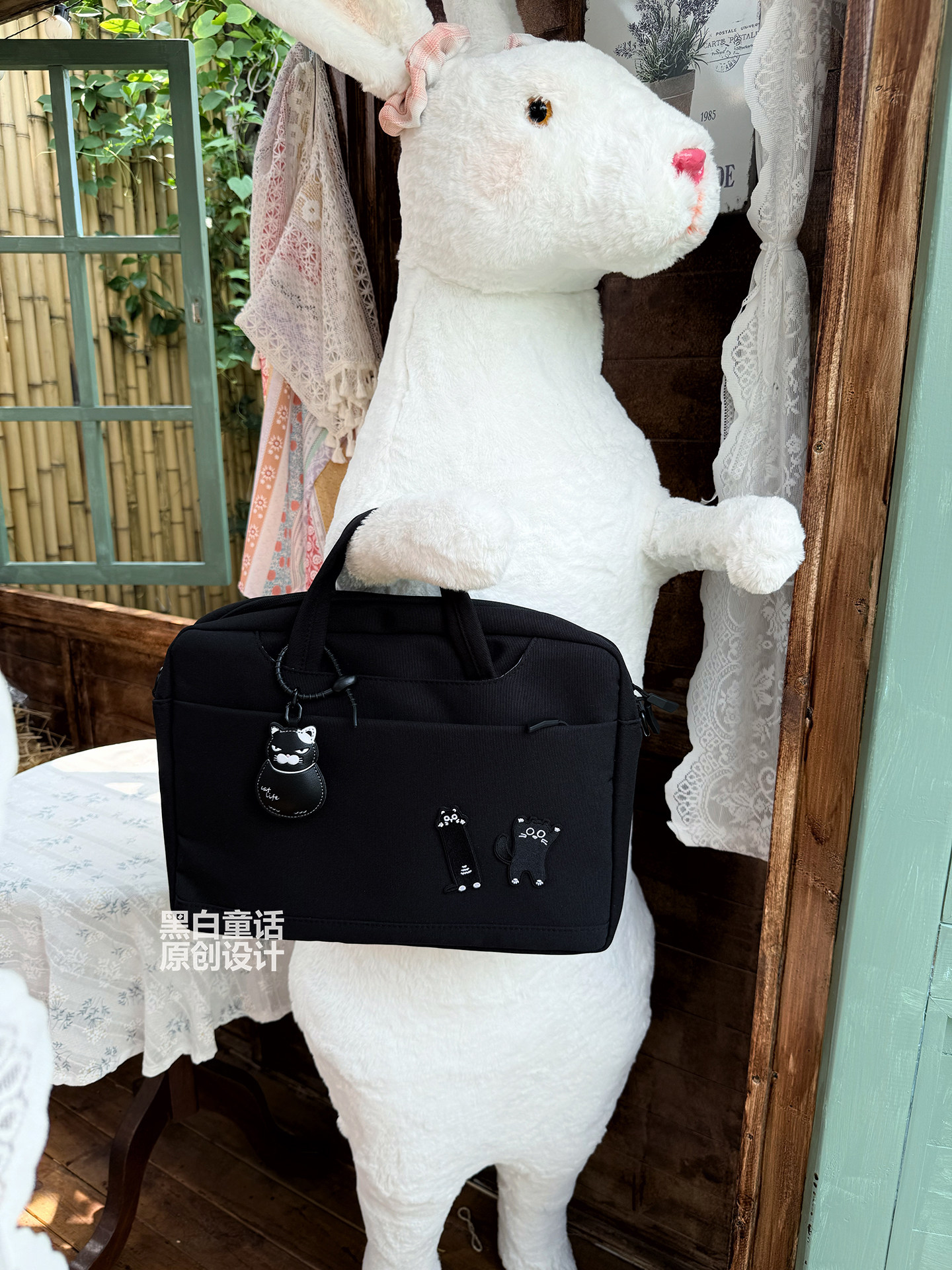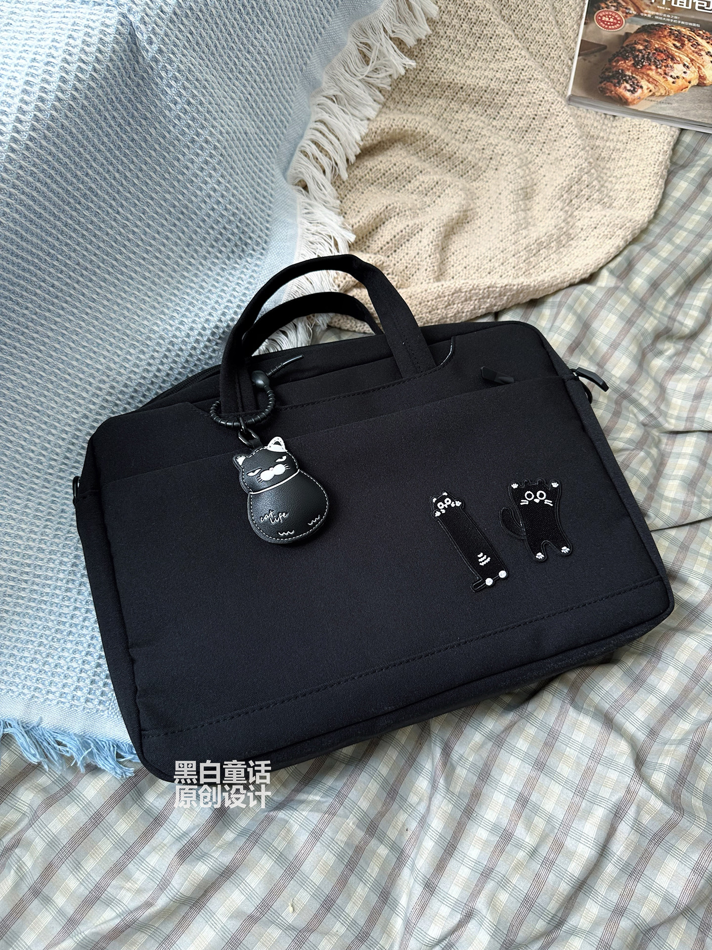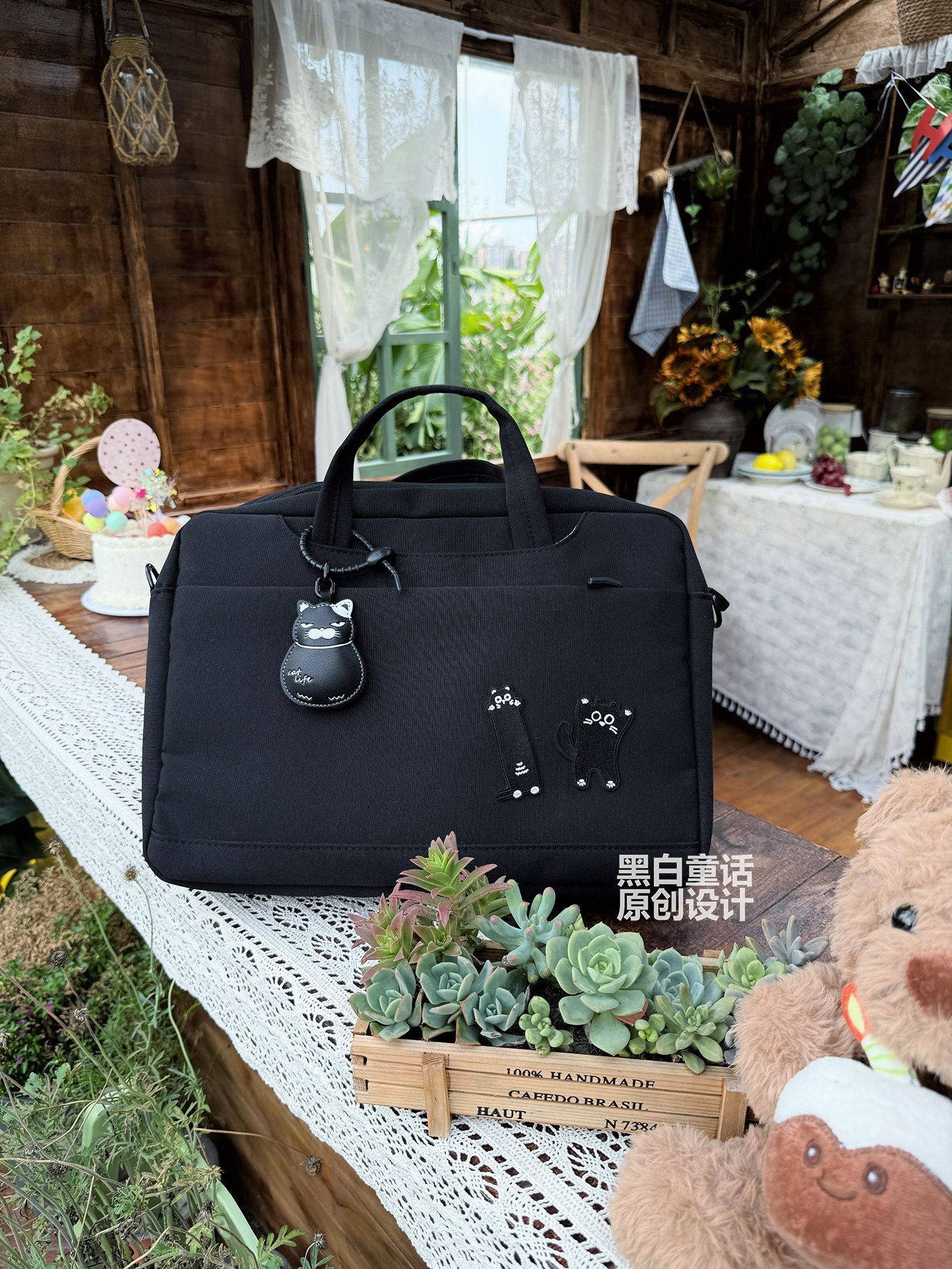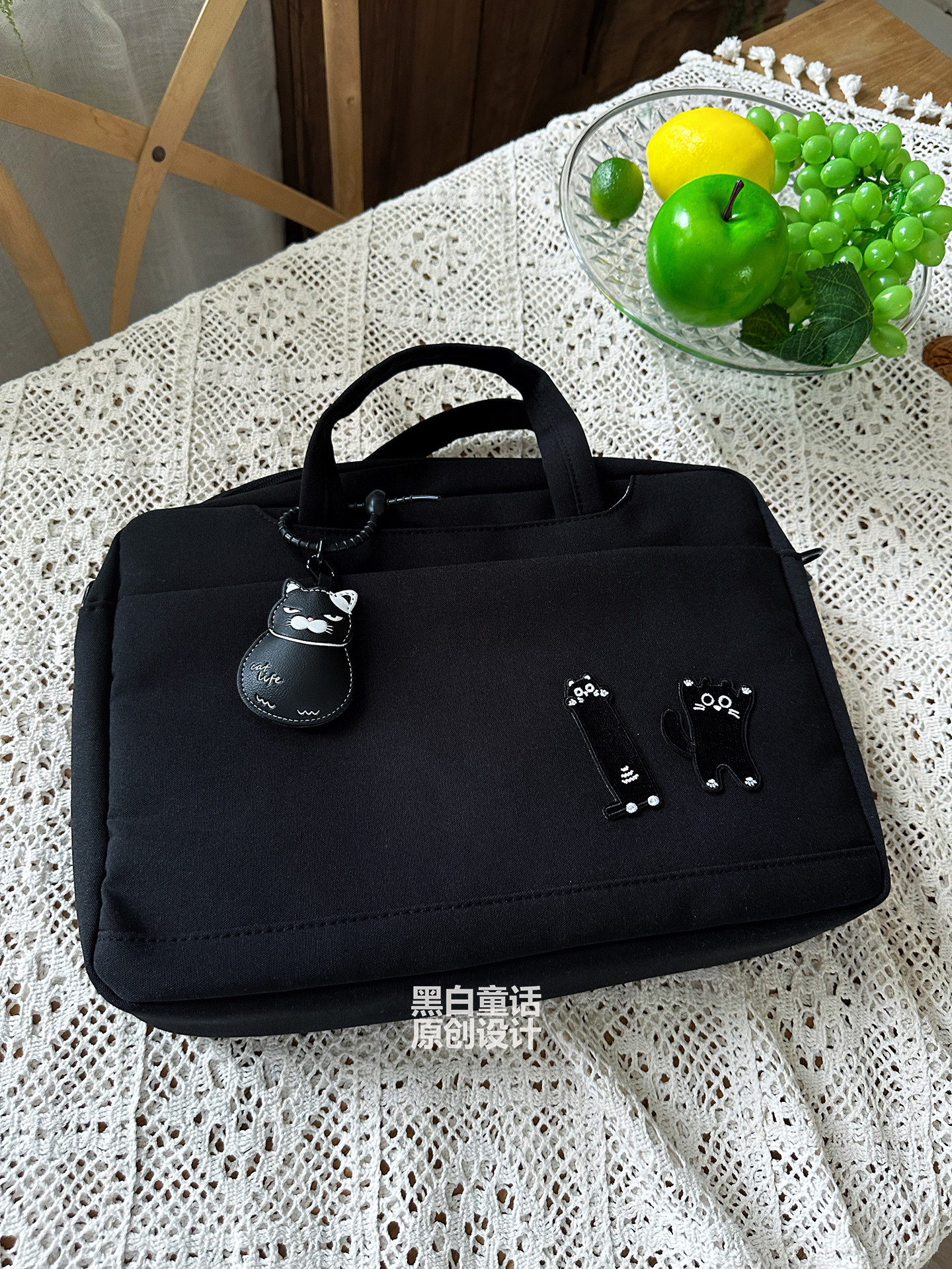 高顔值卡通小胖貓掛件貼布筆電手提電腦包女16英寸可愛風氣囊遊戯本收納包適用聯想拯救者y9000pMac13.3寸