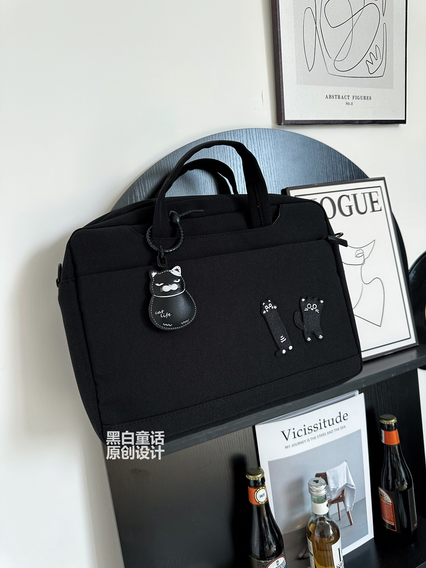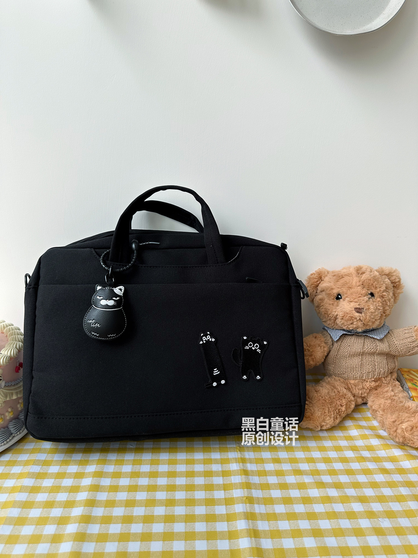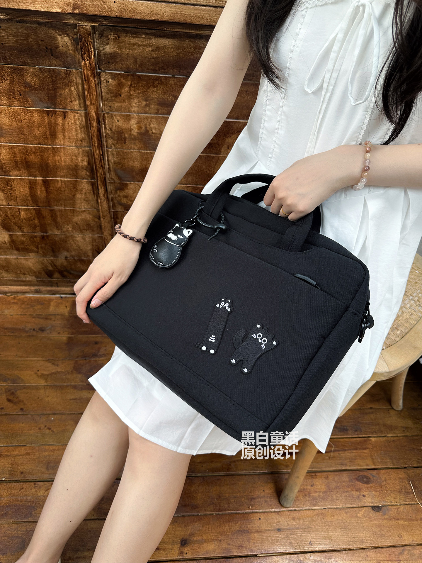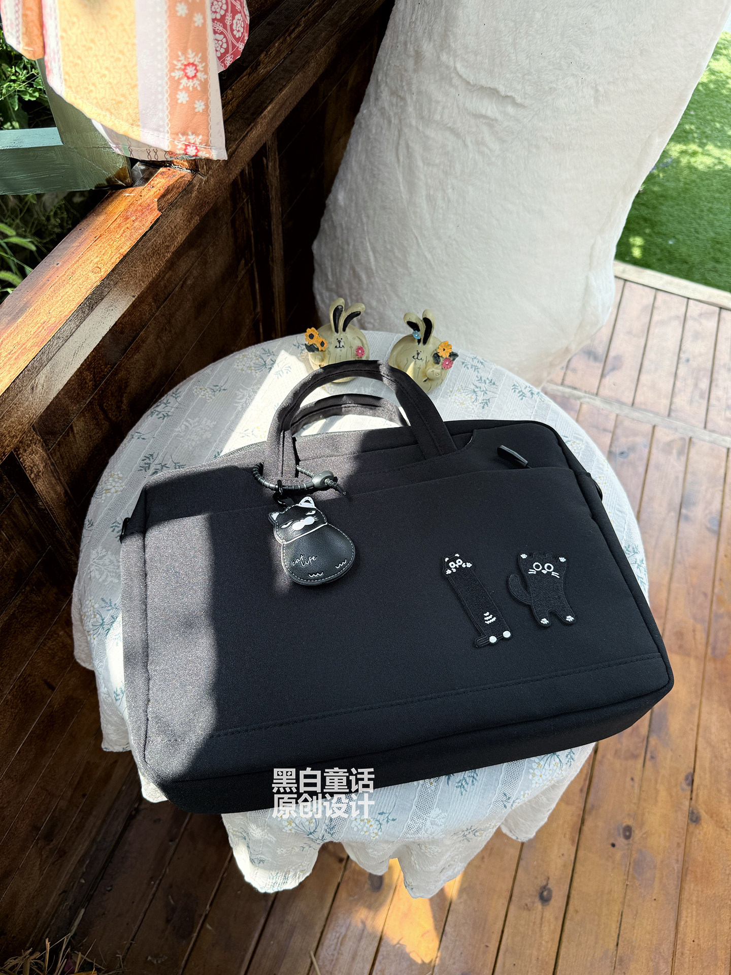 高顔值卡通小胖貓掛件貼布筆電手提電腦包女16英寸可愛風氣囊遊戯本收納包適用聯想拯救者y9000pMac13.3寸