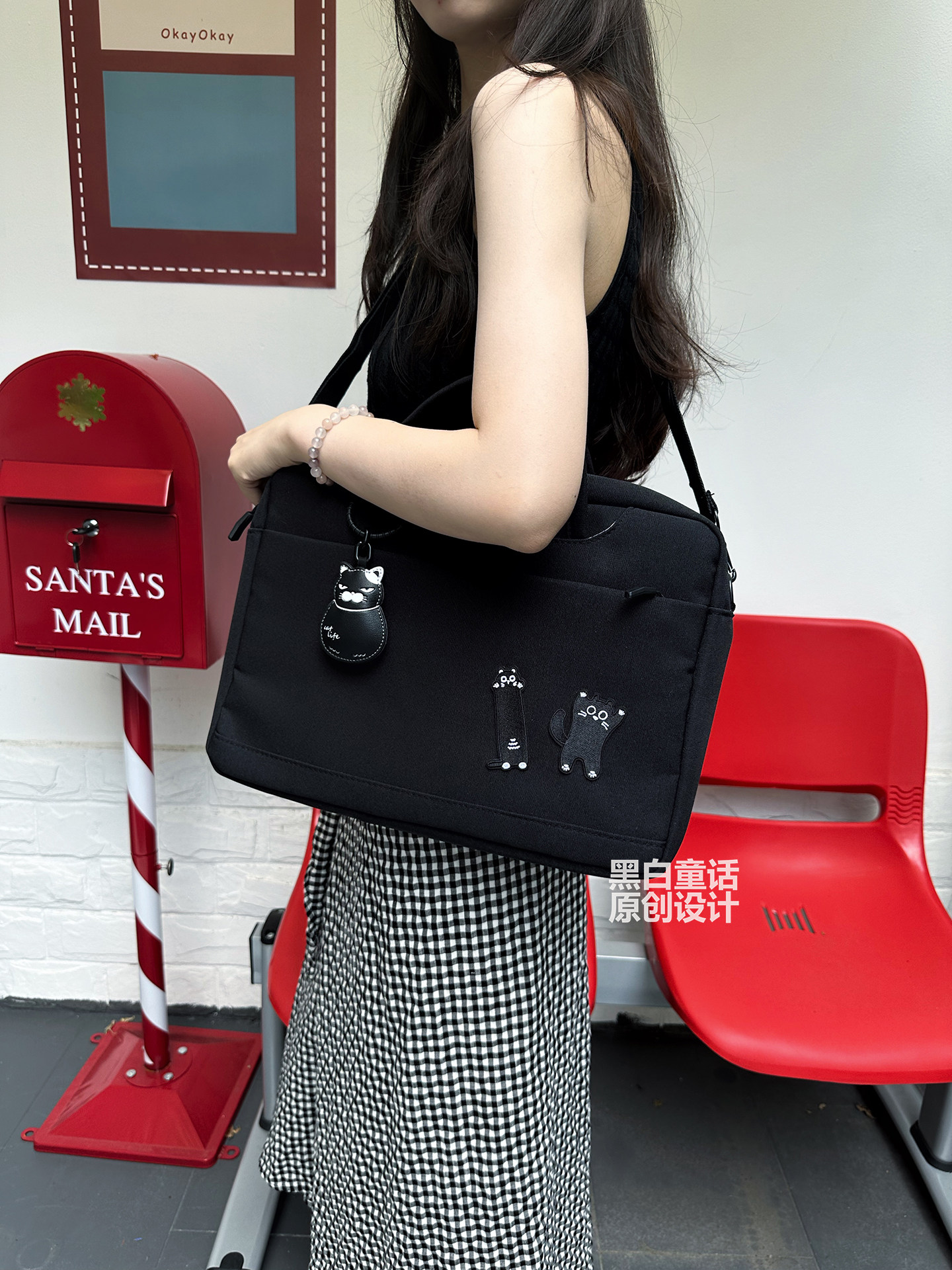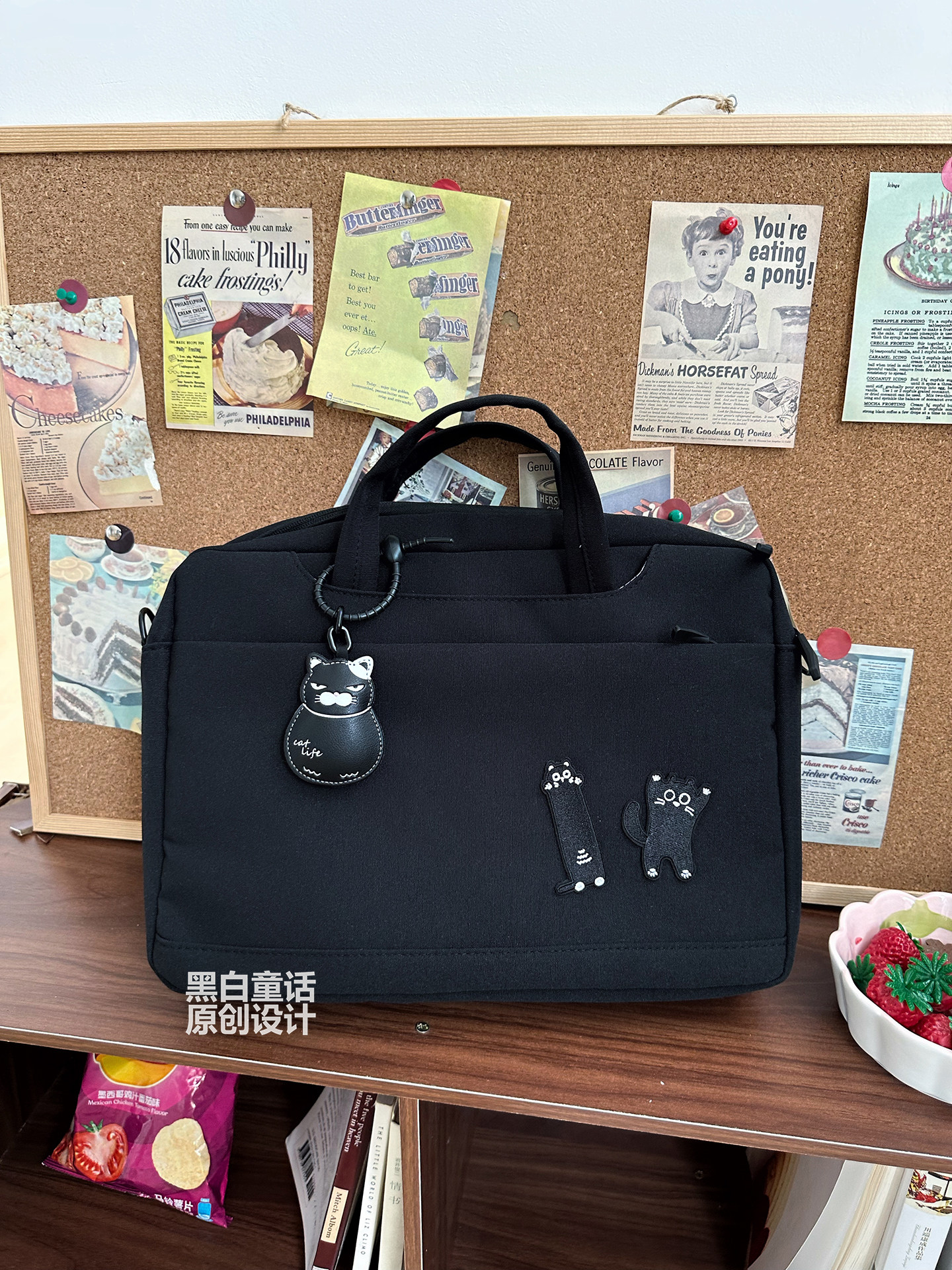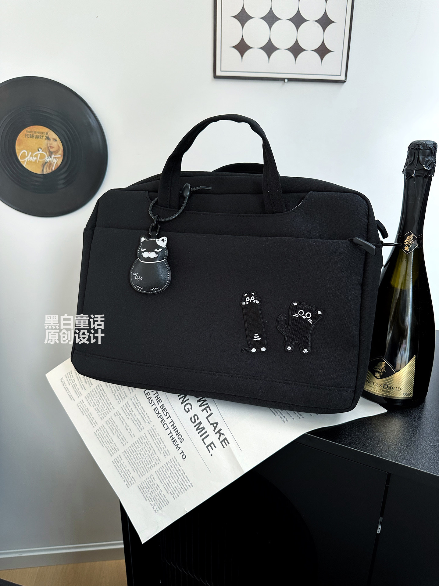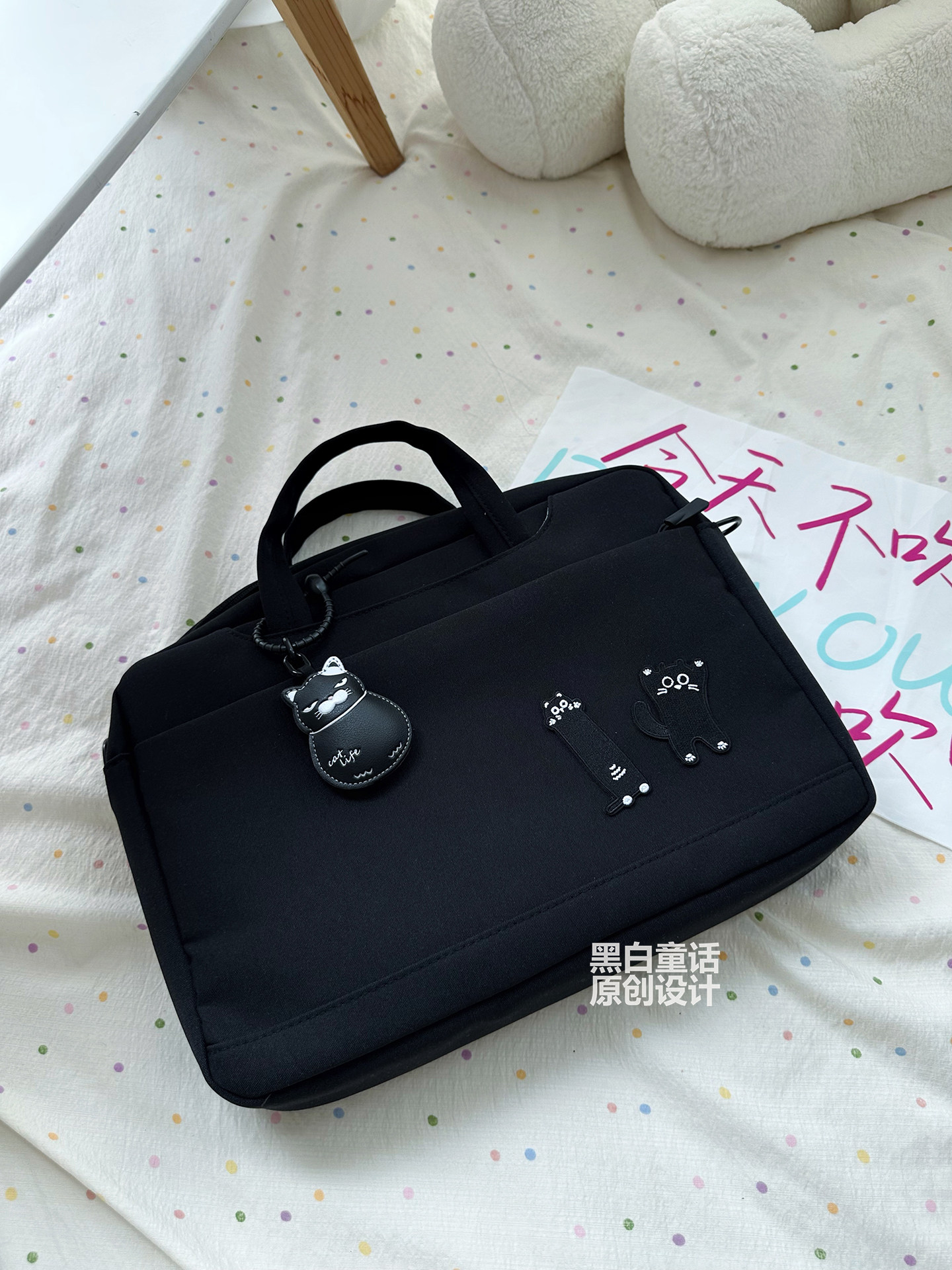 高顔值卡通小胖貓掛件貼布筆電手提電腦包女16英寸可愛風氣囊遊戯本收納包適用聯想拯救者y9000pMac13.3寸
