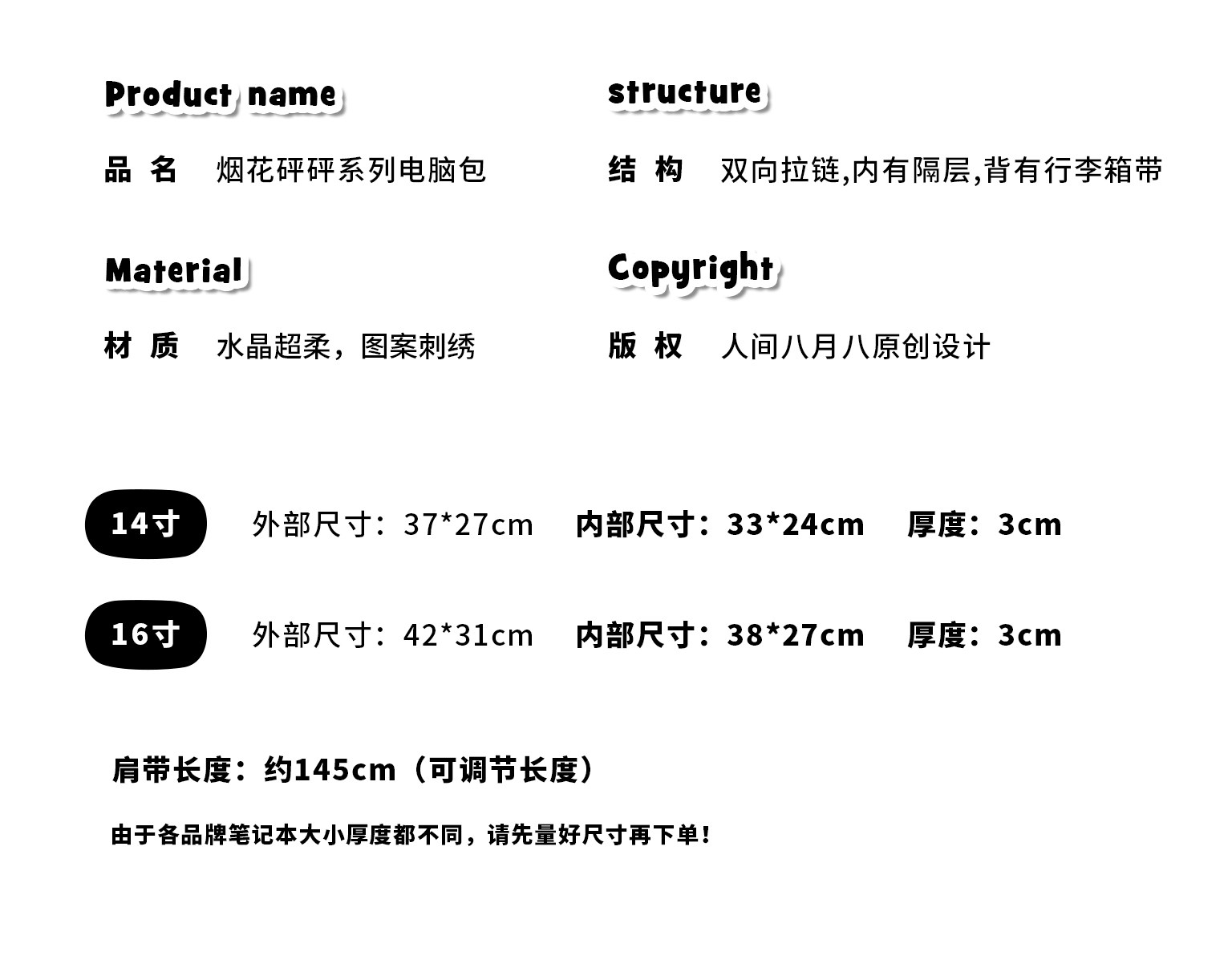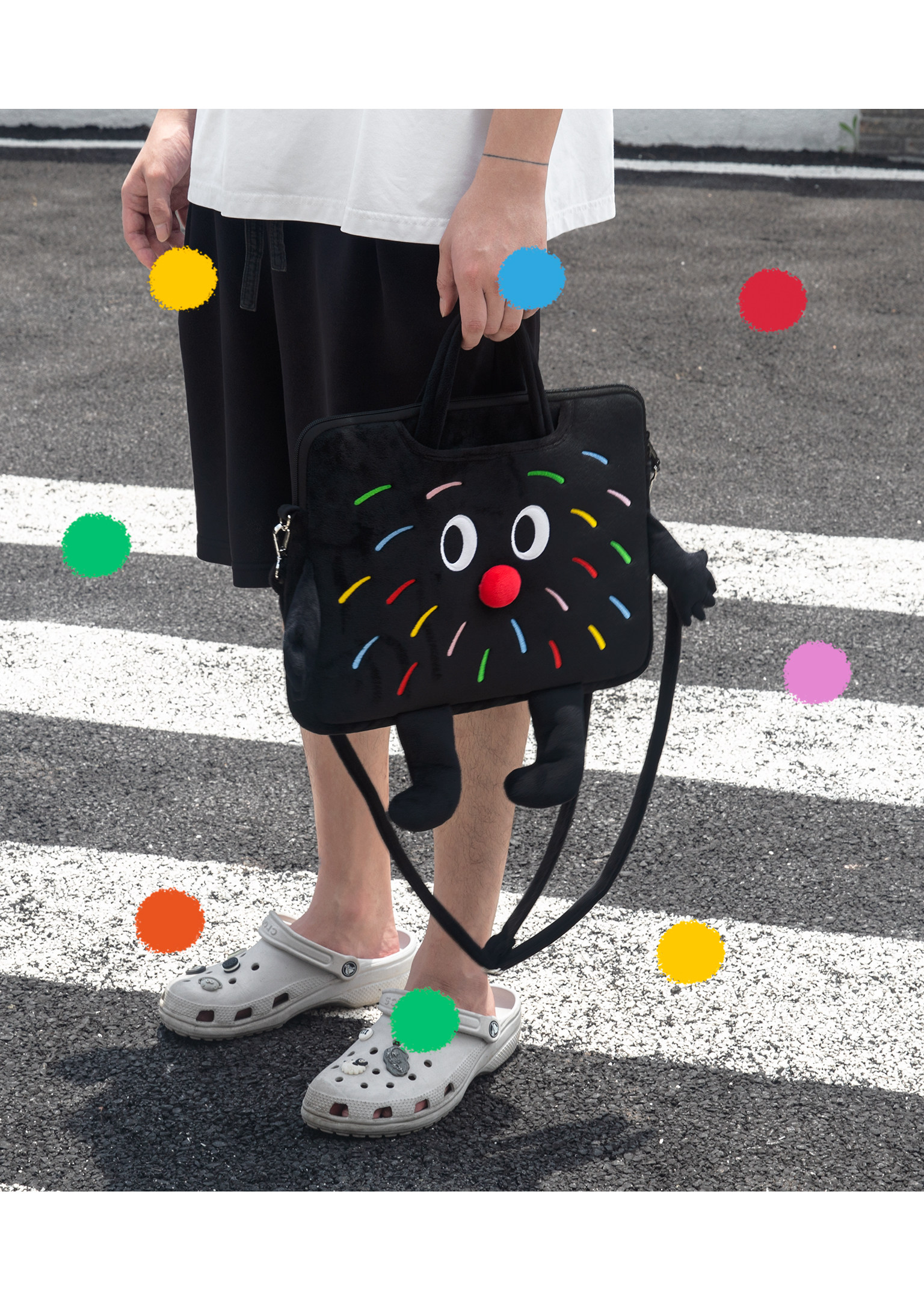 人間八月八丨原創砰砰筆記型電腦包女可愛卡通單肩斜背手提包MacBookPRO14寸蘋果air16寸華爲matebook行李箱