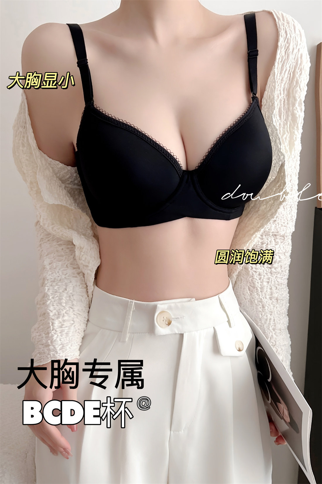 黑提維C!大胸顯小內衣女無痕聚攏防垂調整型軟鋼圈大碼文胸罩薄