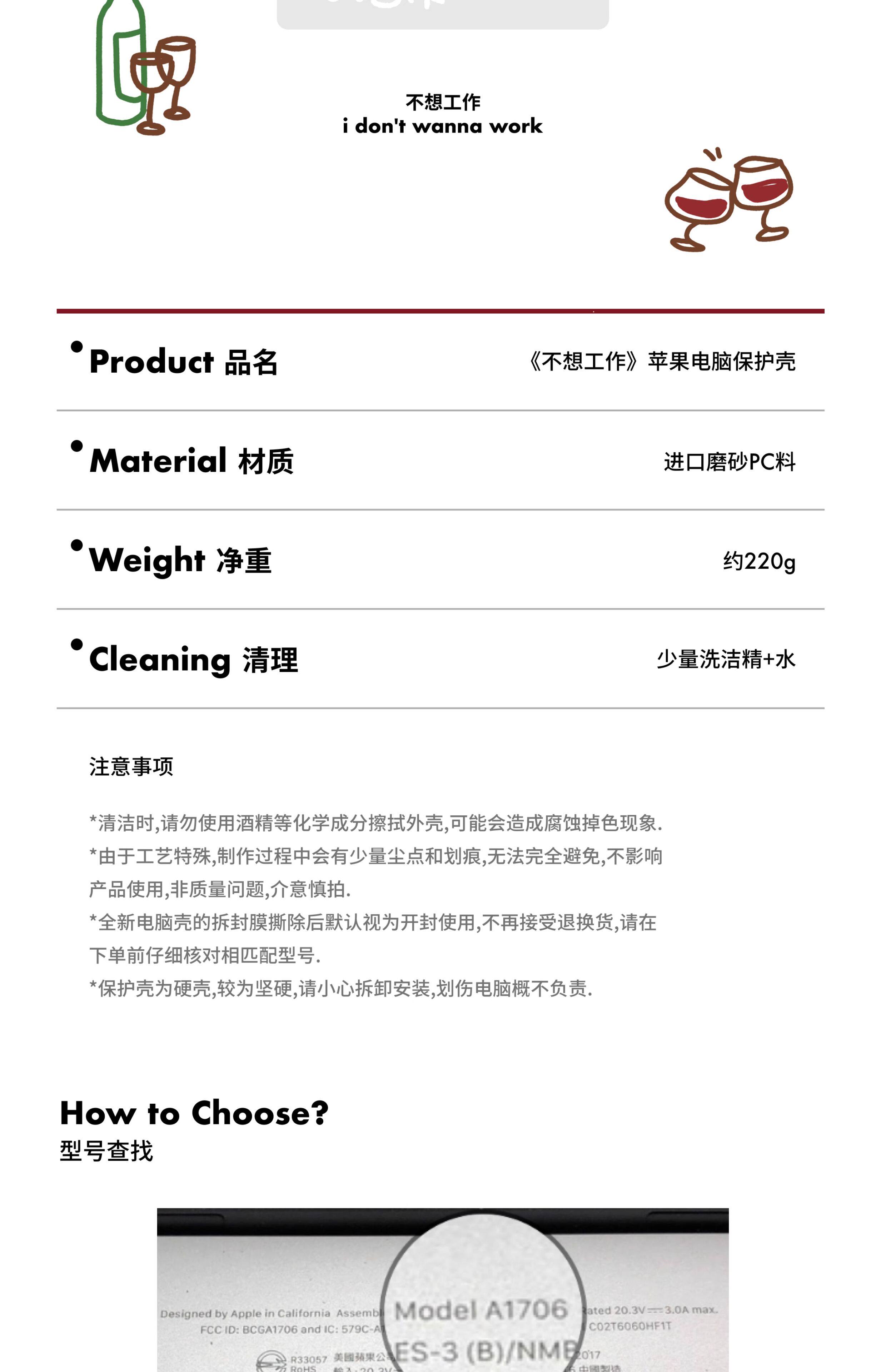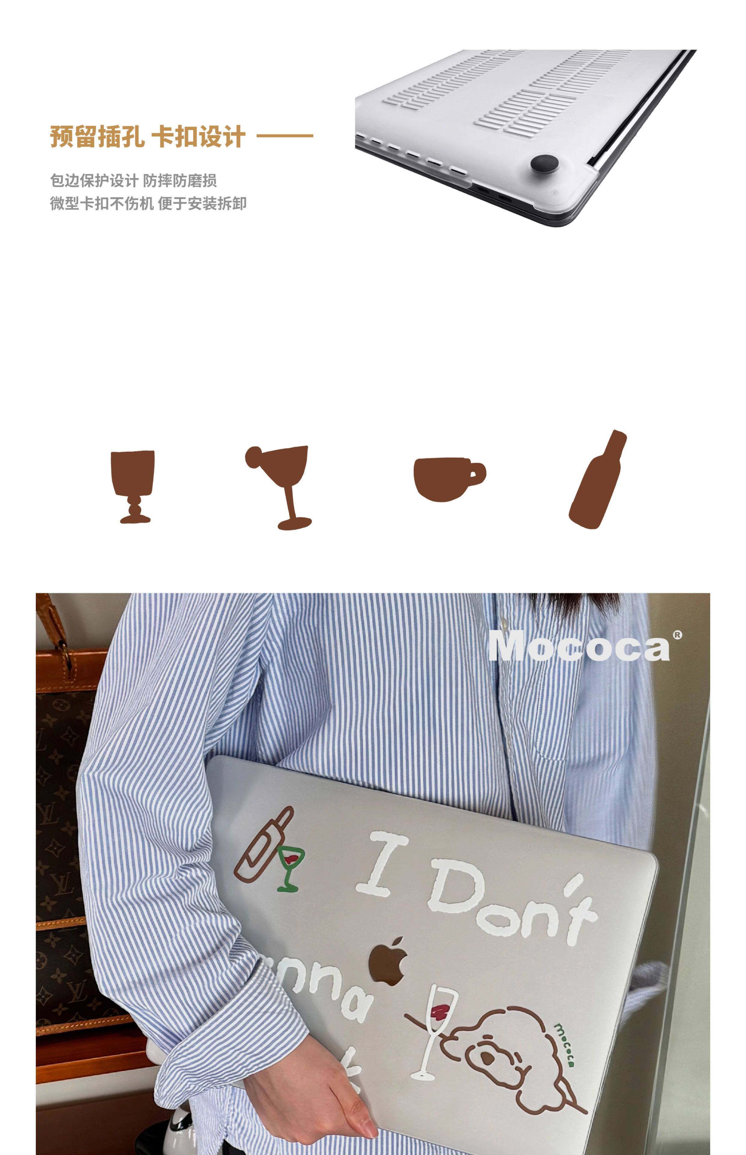 MOCOCA《不想工作》原創插畫酒杯印花進口pc透明磨砂硬殼防磕碰適用於Macbook蘋果pro電腦air保護套13寸14寸