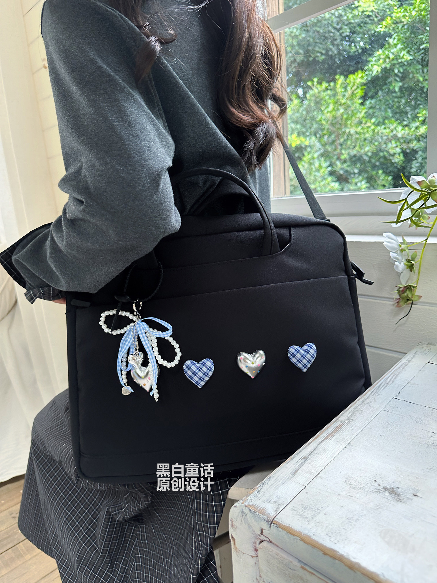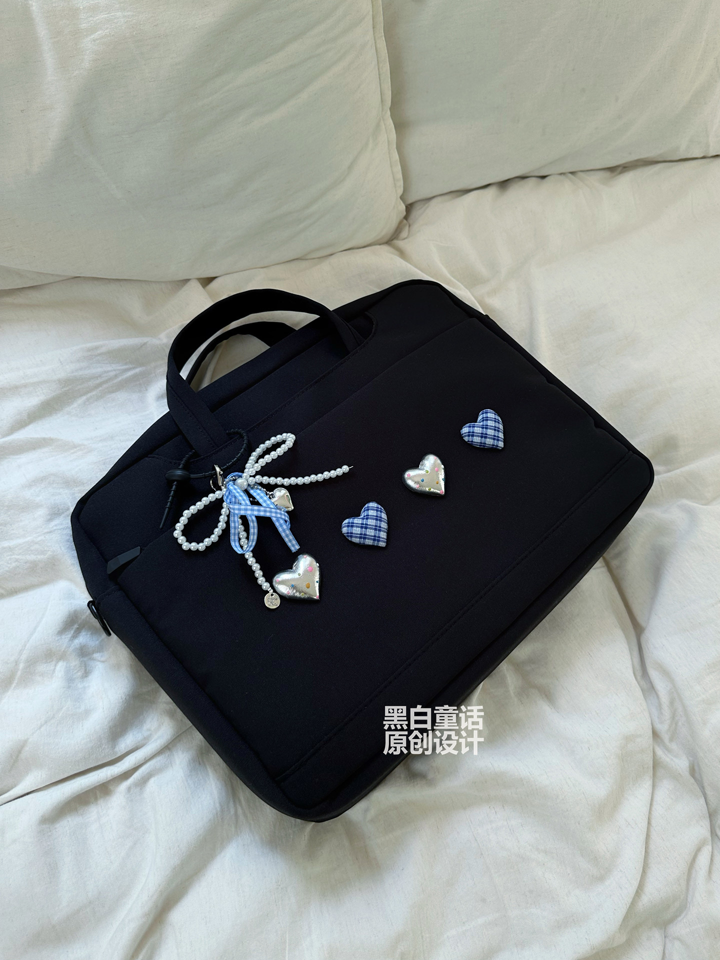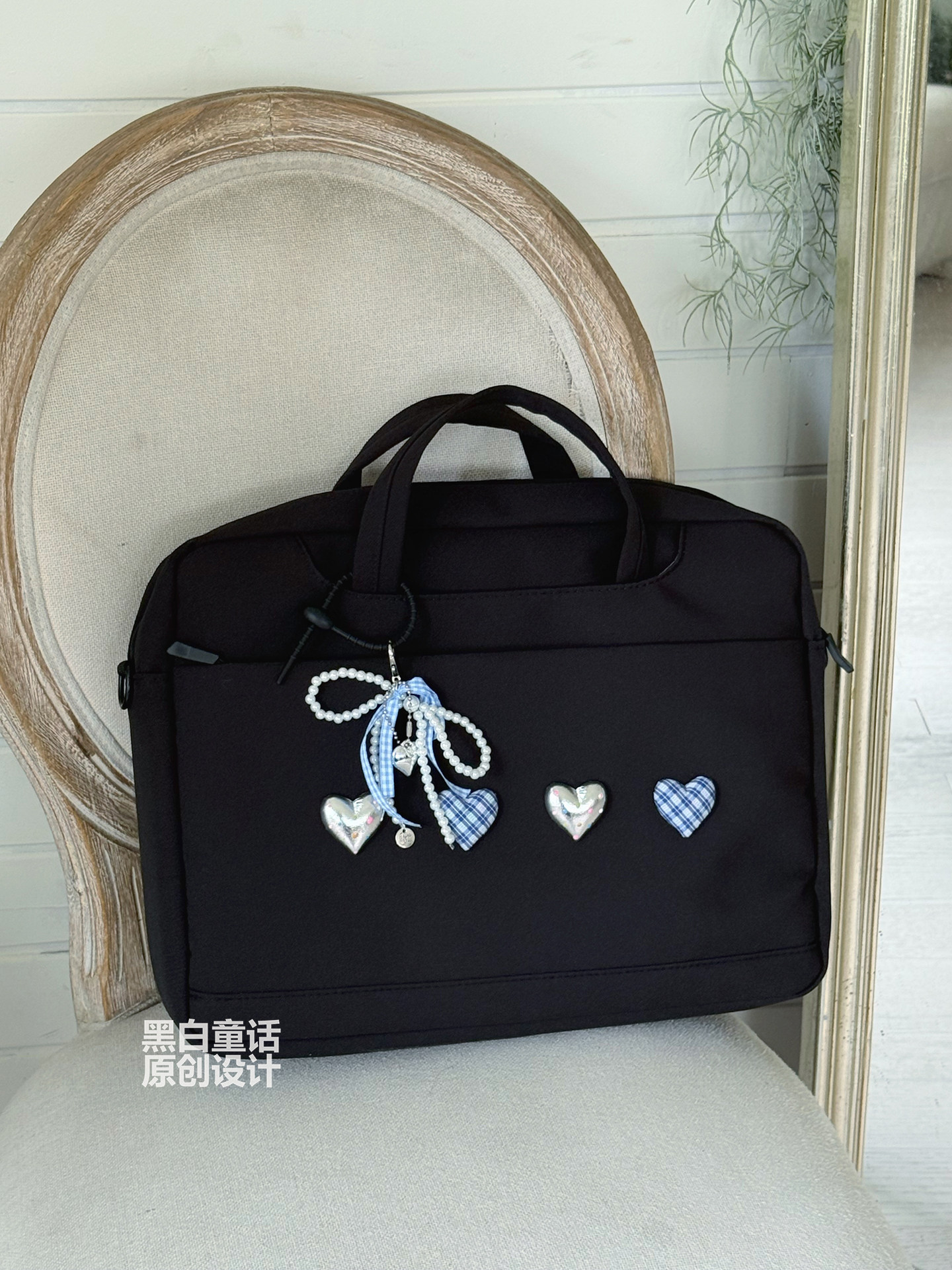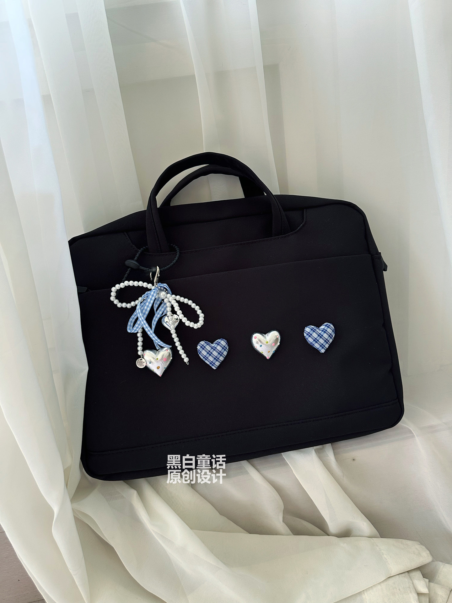小衆高級感愛心蝴蝶結貼布手提筆記型電腦包14英寸高顔值可愛設計大容量收納包適用聯想拯救者r9000p/y7000