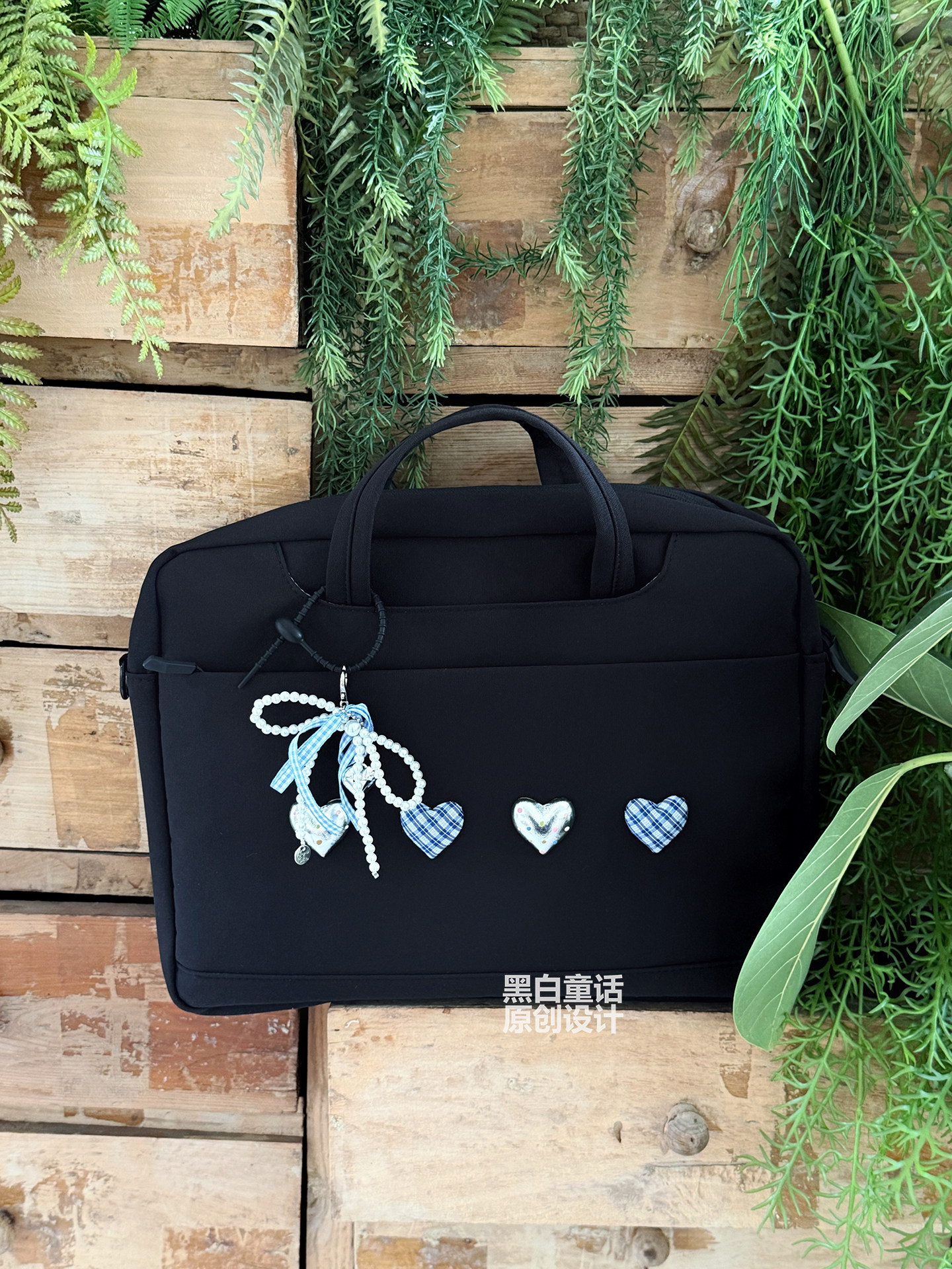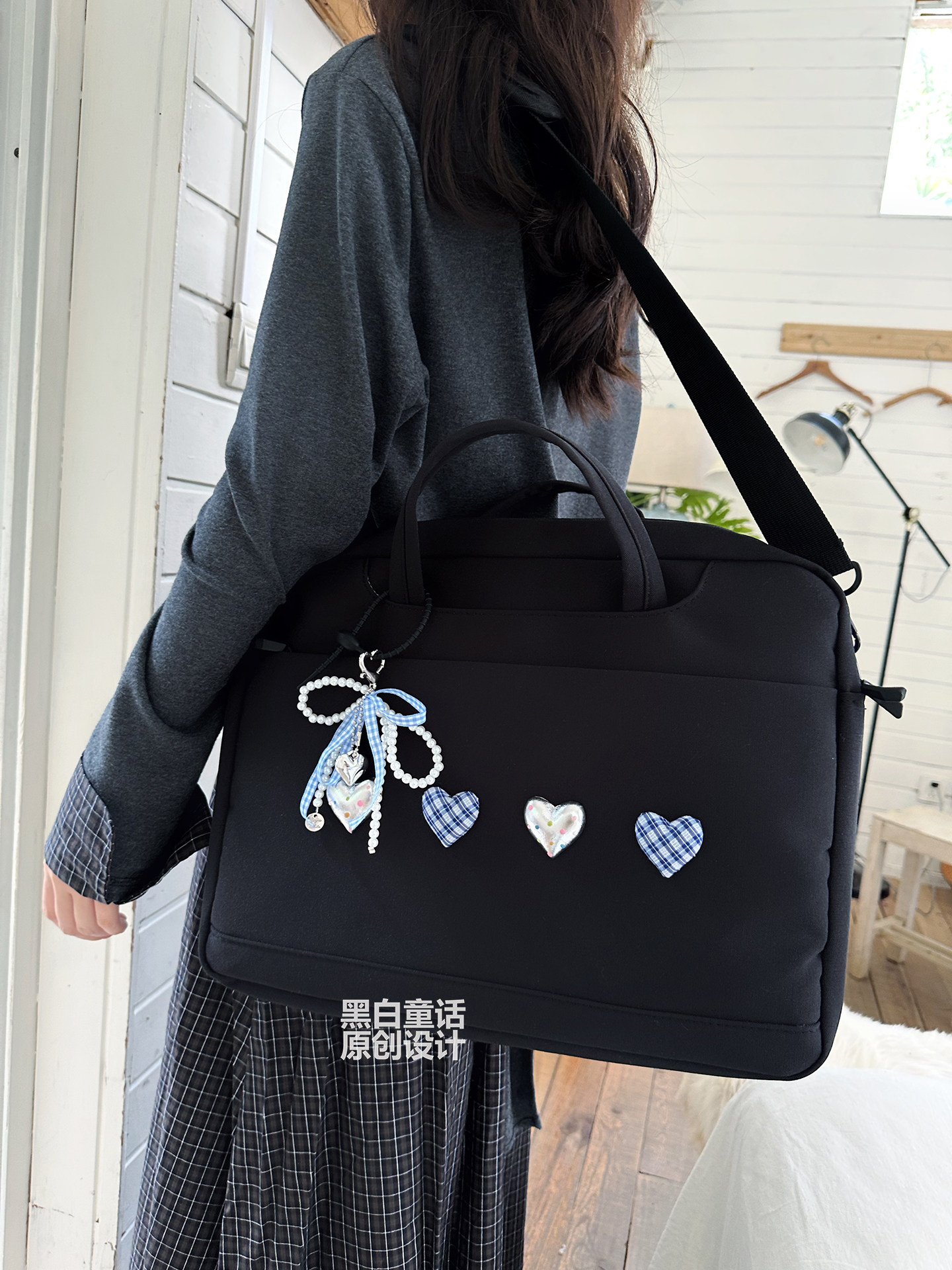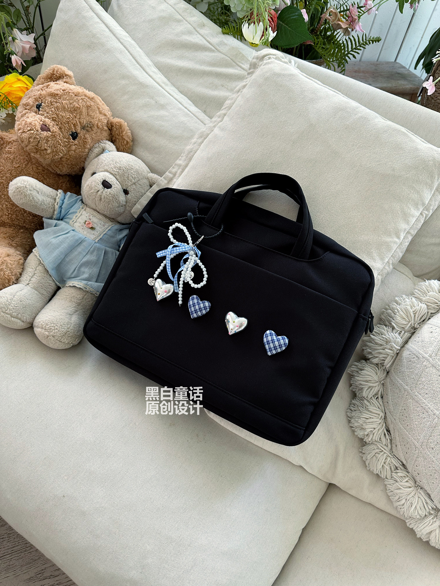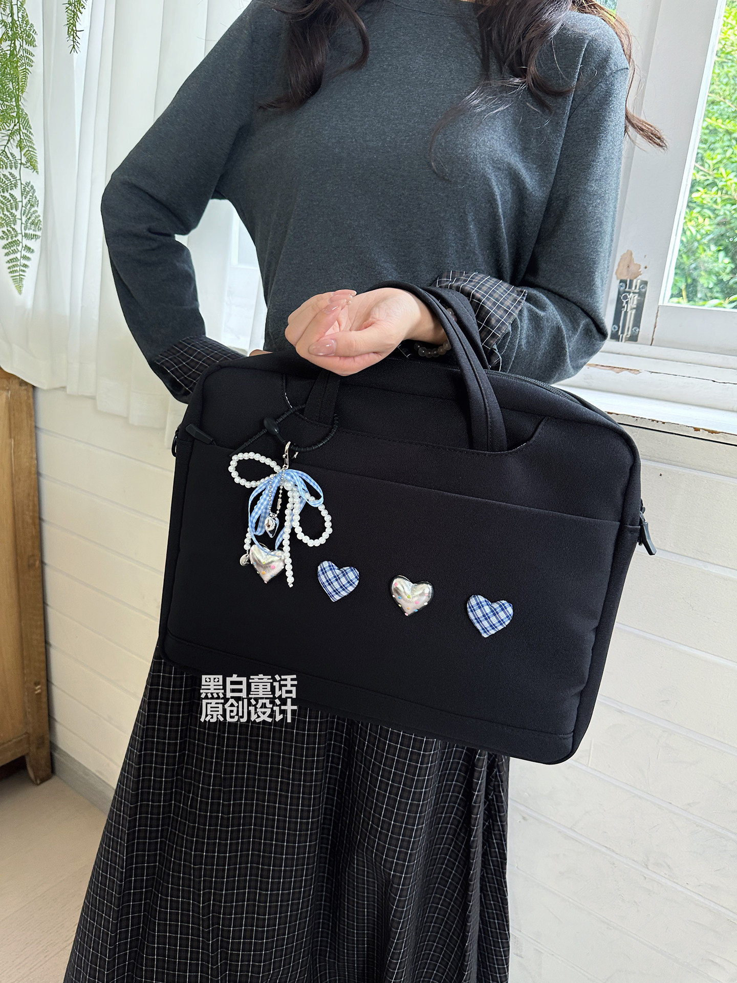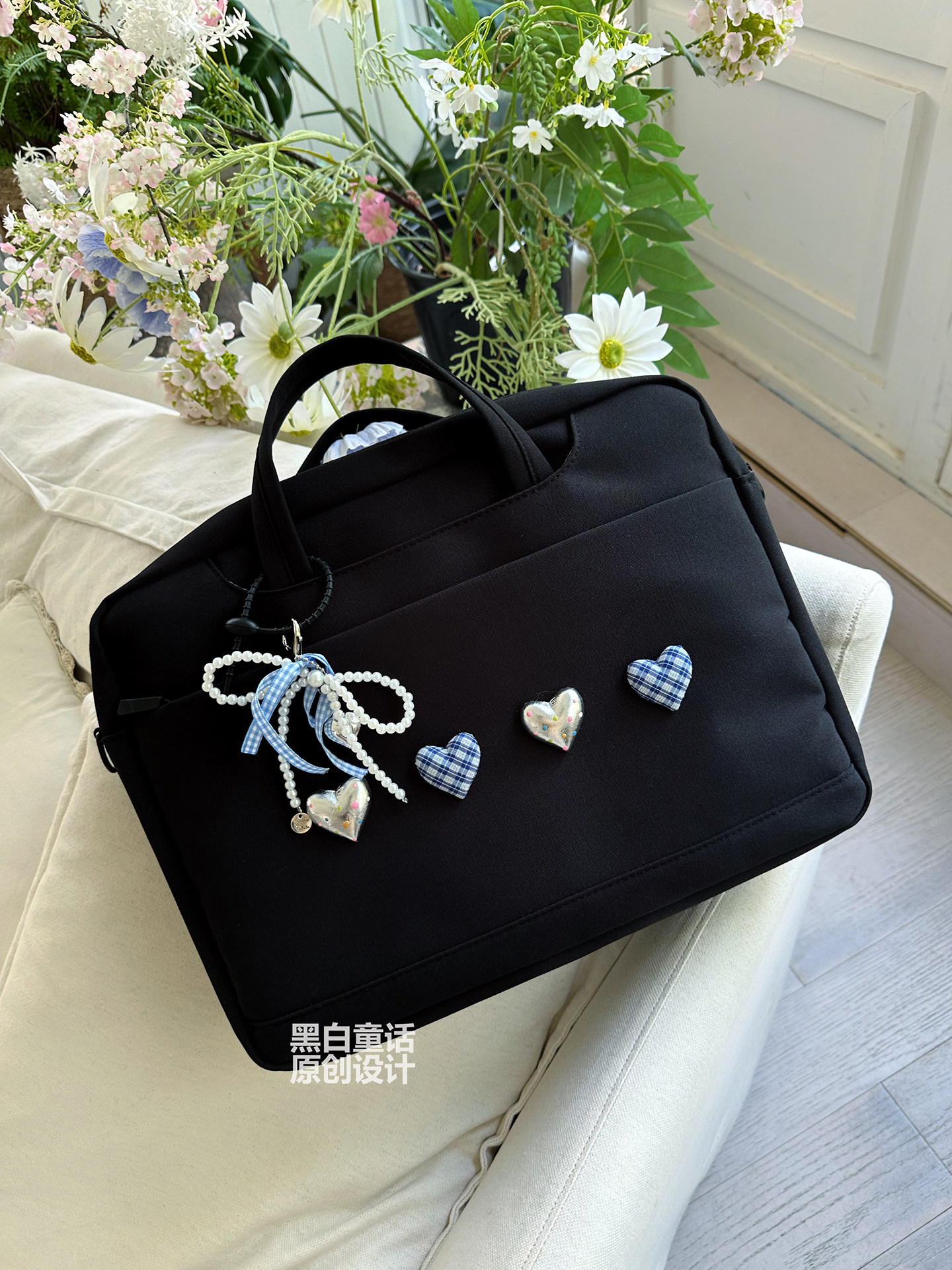 小衆高級感愛心蝴蝶結貼布手提筆記型電腦包14英寸高顔值可愛設計大容量收納包適用聯想拯救者r9000p/y7000