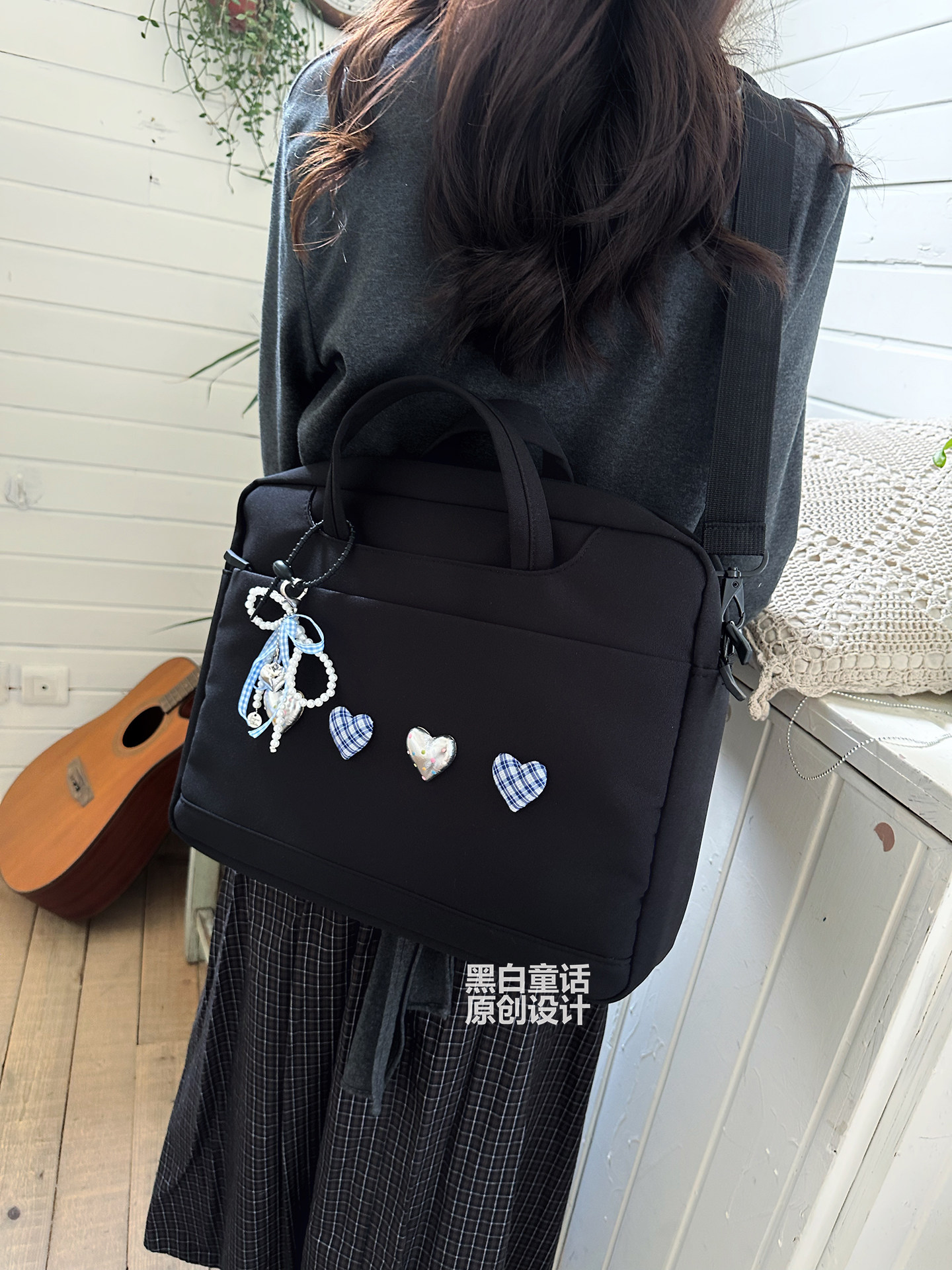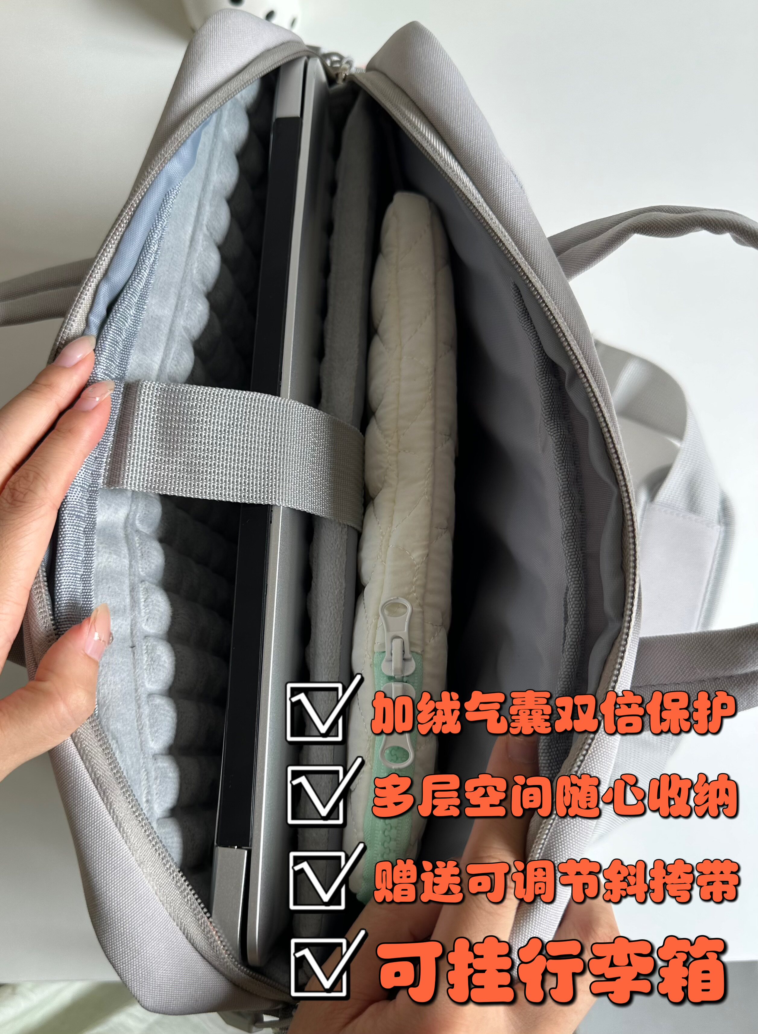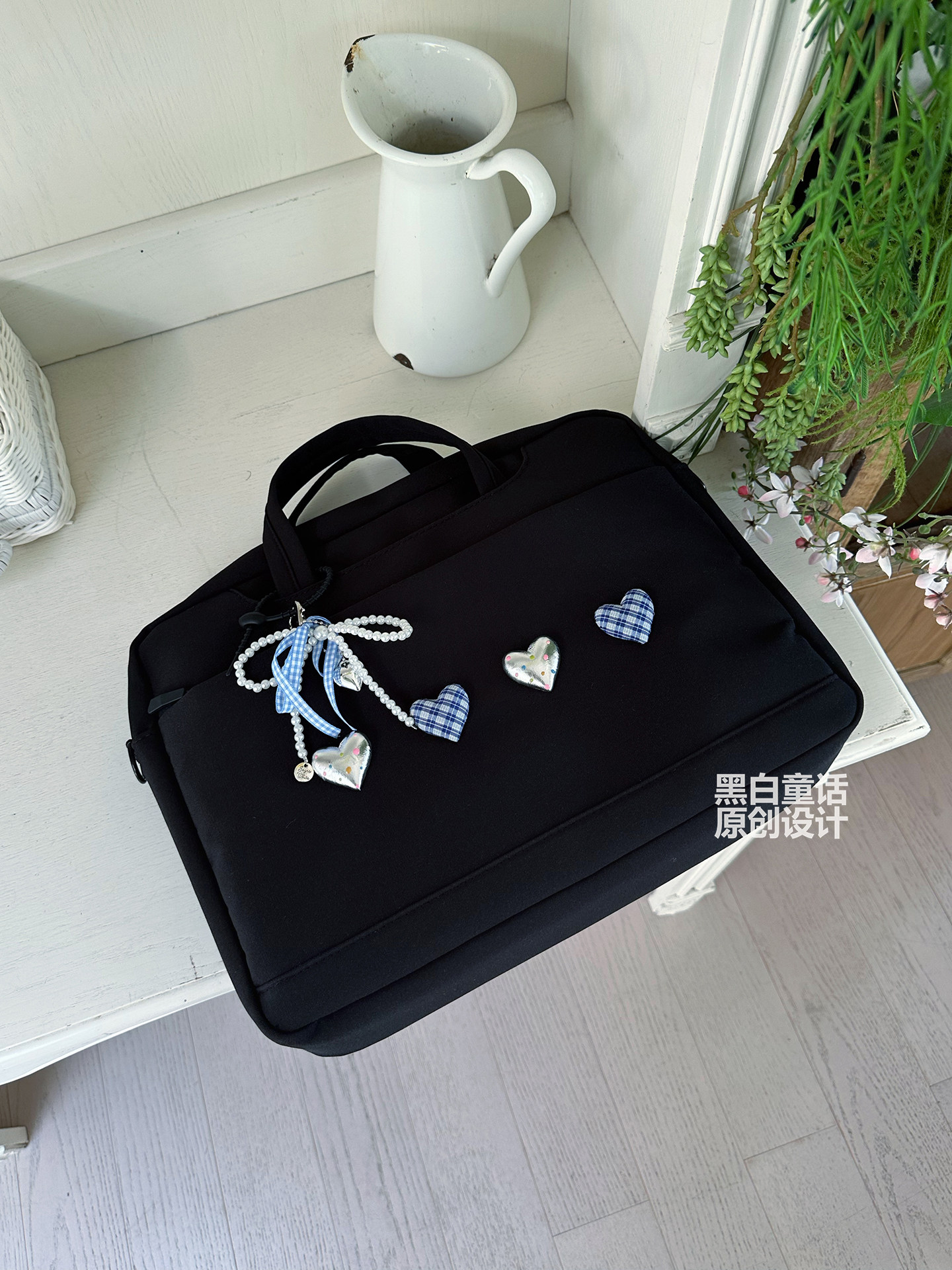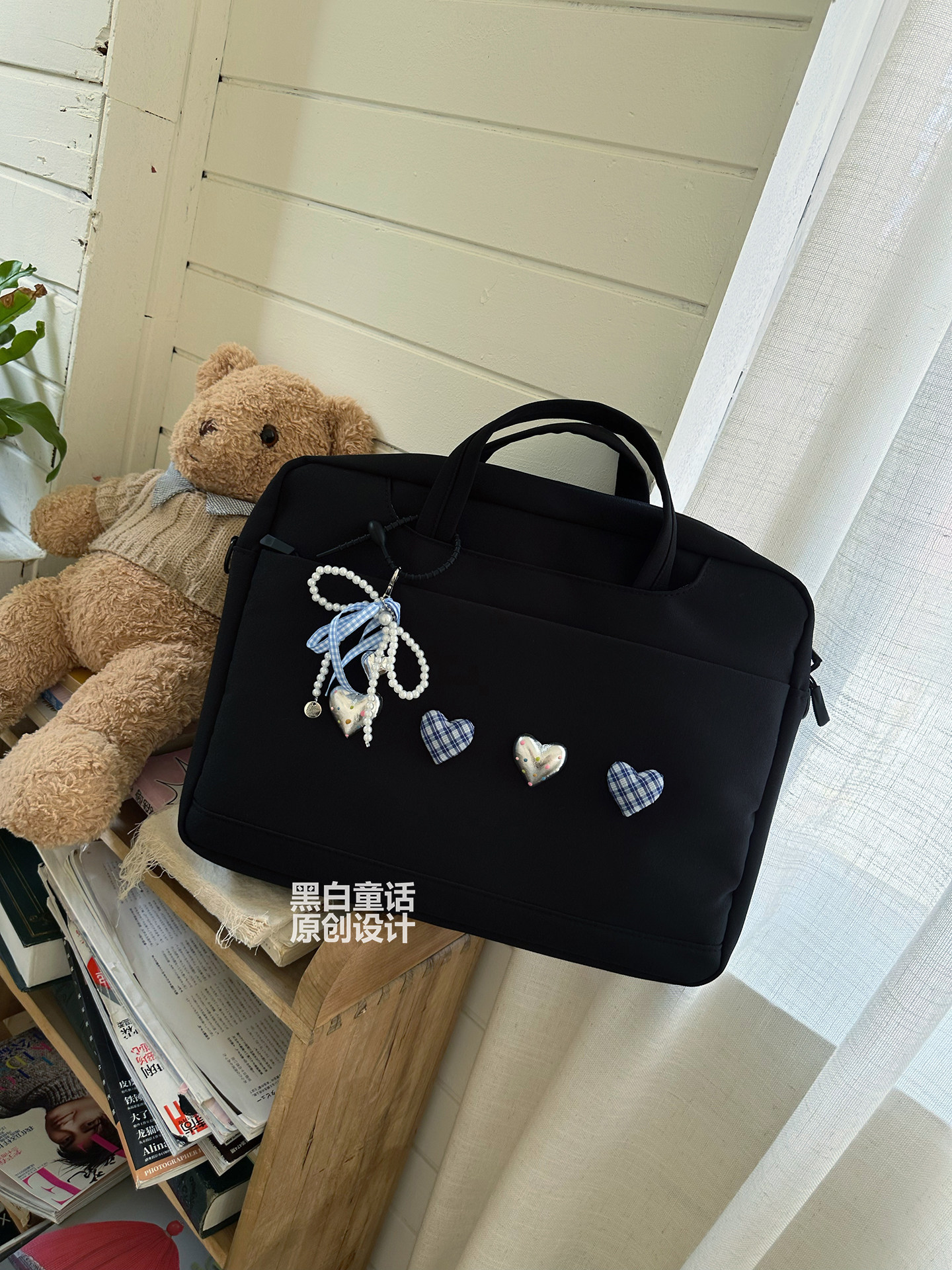 小衆高級感愛心蝴蝶結貼布手提筆記型電腦包14英寸高顔值可愛設計大容量收納包適用聯想拯救者r9000p/y7000