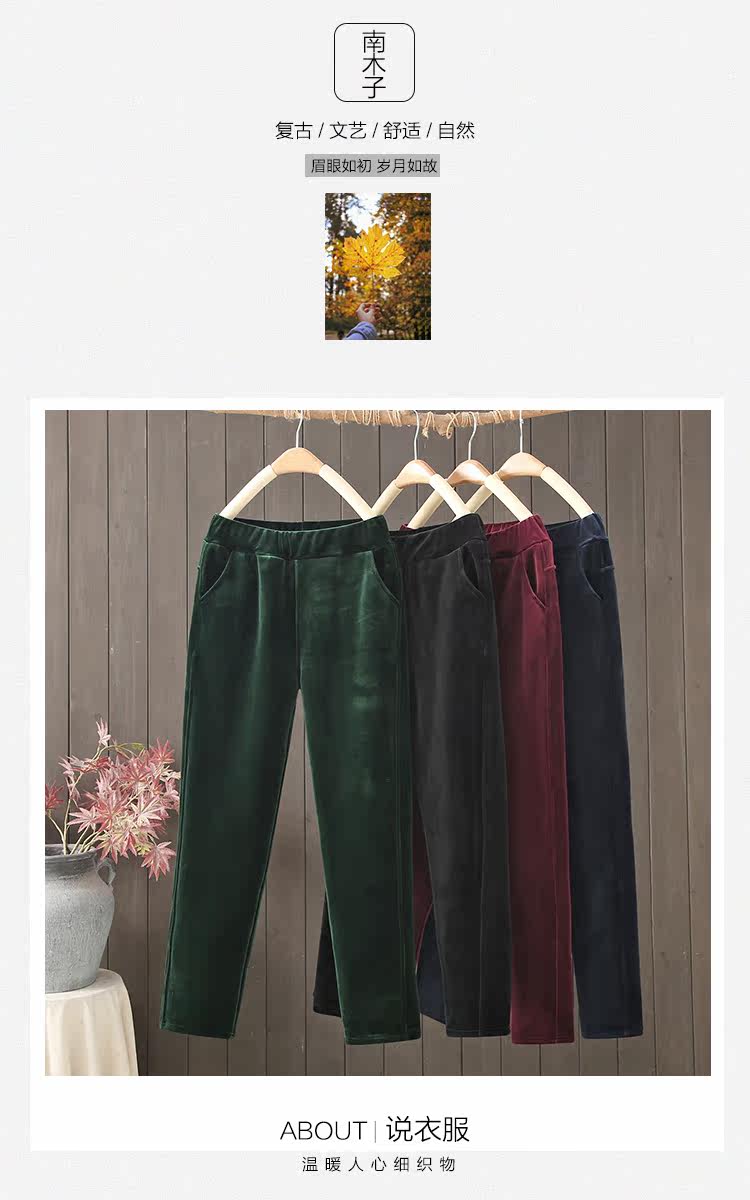 金絲絨媽媽褲子女秋冬加絨加厚休閒小腳褲高腰彈力外穿中老年女褲