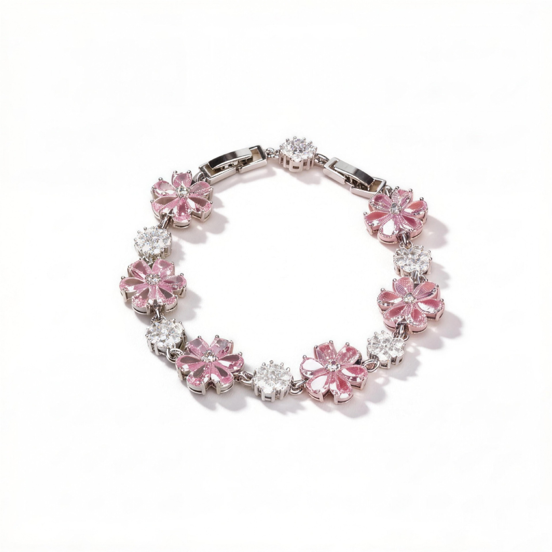 滿鑽彩色花卉鋯石手鏈多色寶石微鑲輕奢花型手飾時尚女款