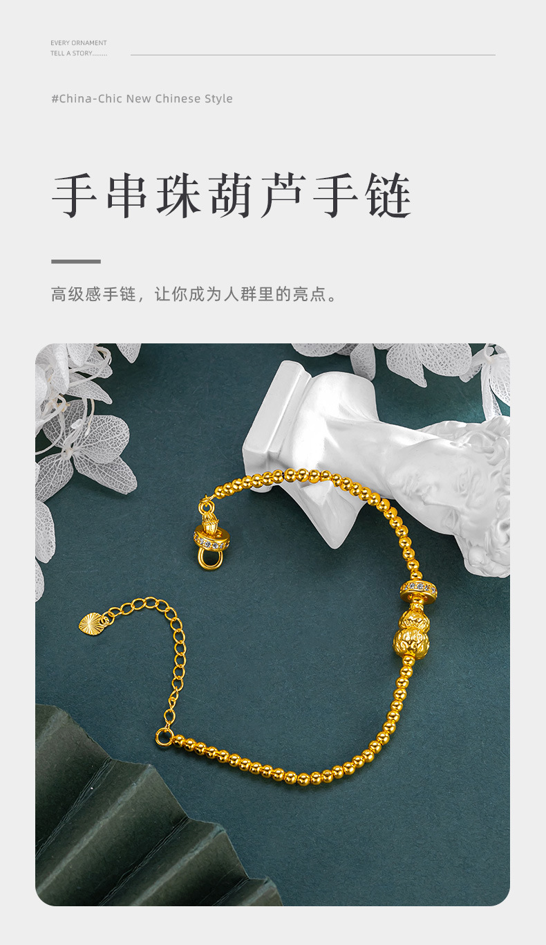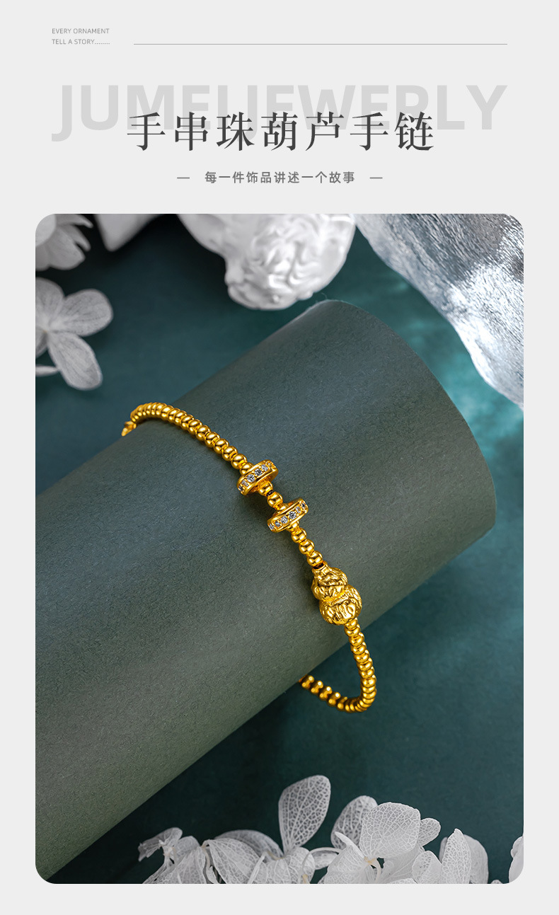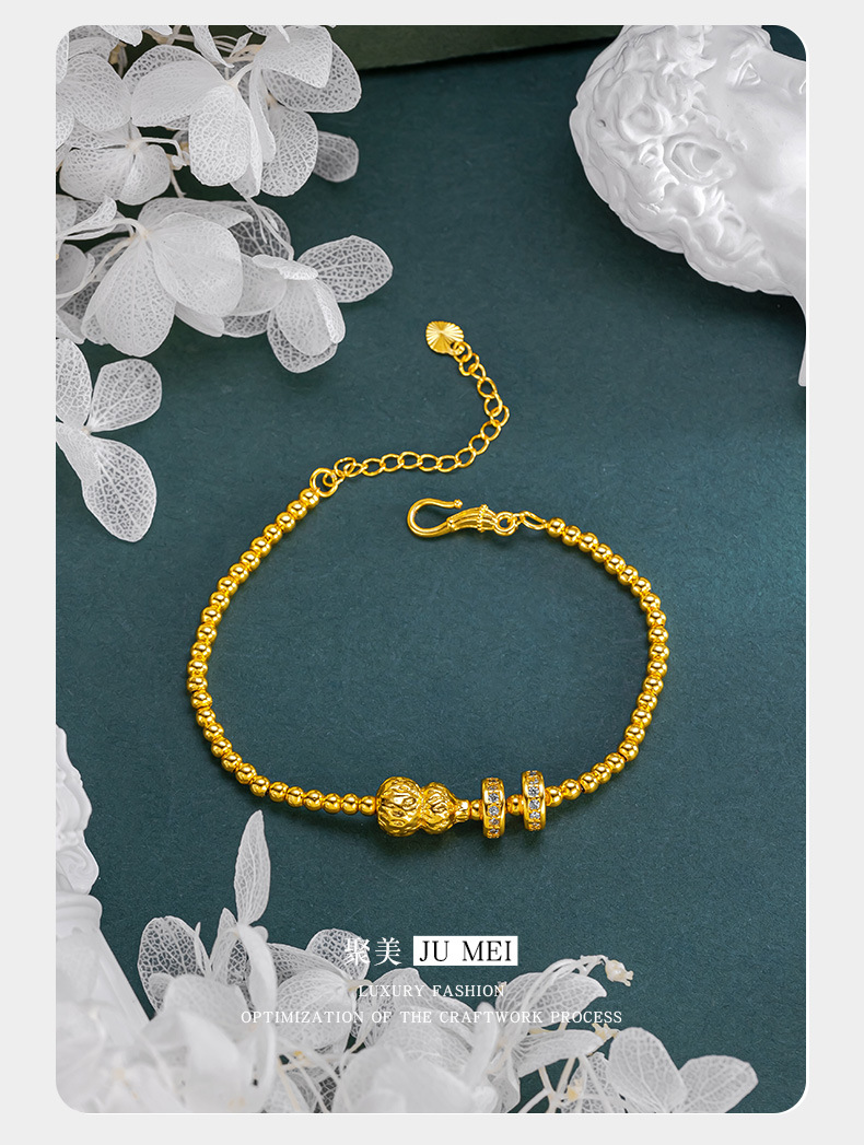 古法黃金色手串珠葫蘆手鏈女款沙金莫桑石點鑽轉運珠掛墜手串閨蜜