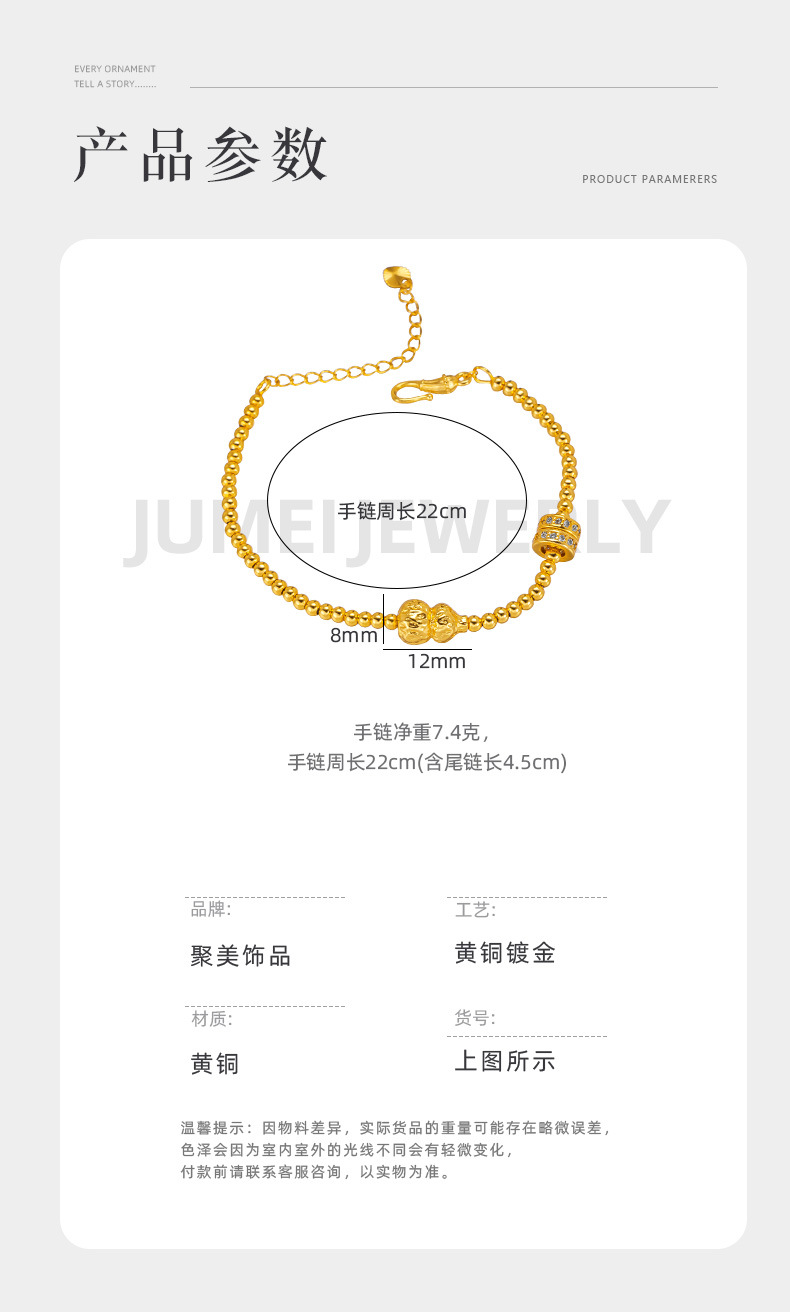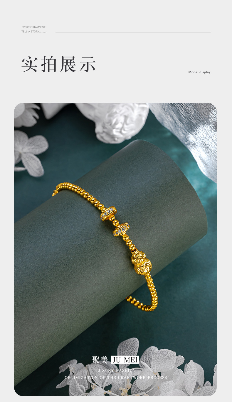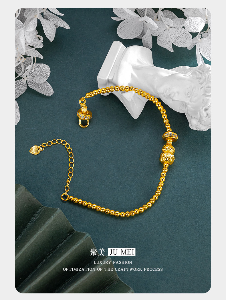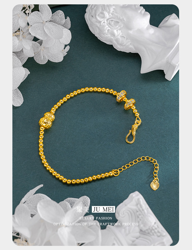 古法黃金色手串珠葫蘆手鏈女款沙金莫桑石點鑽轉運珠掛墜手串閨蜜