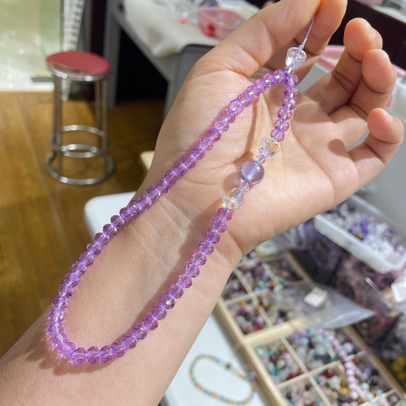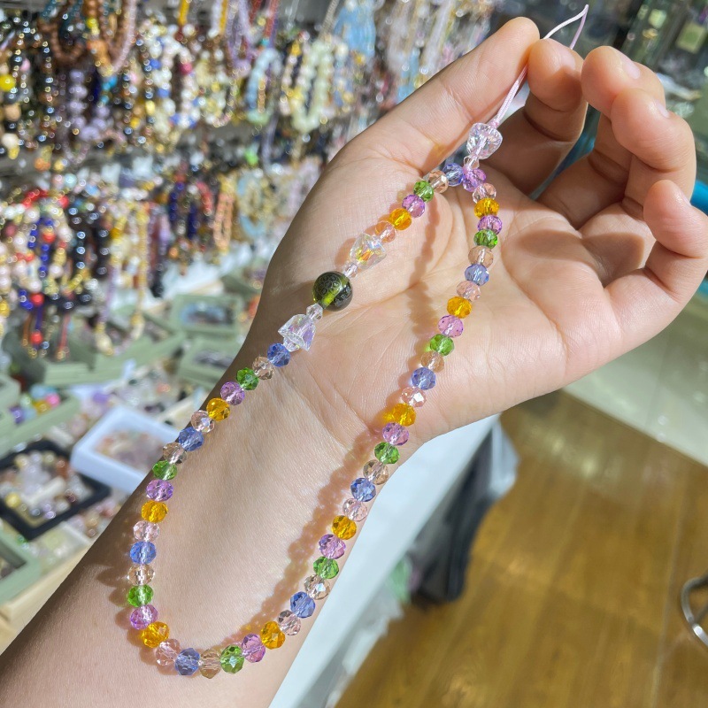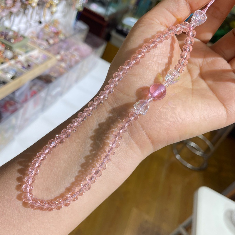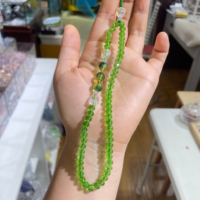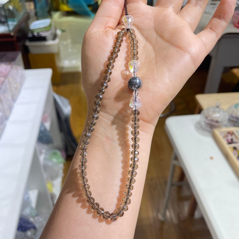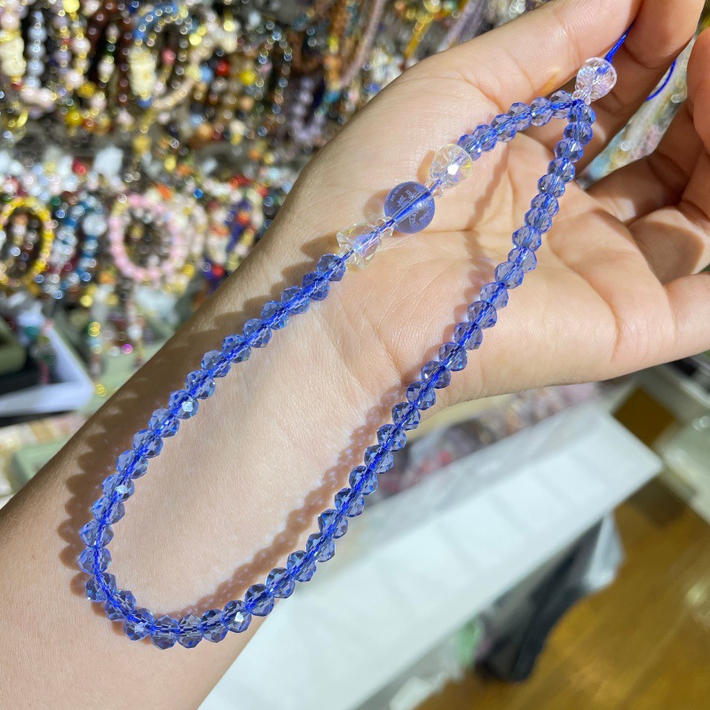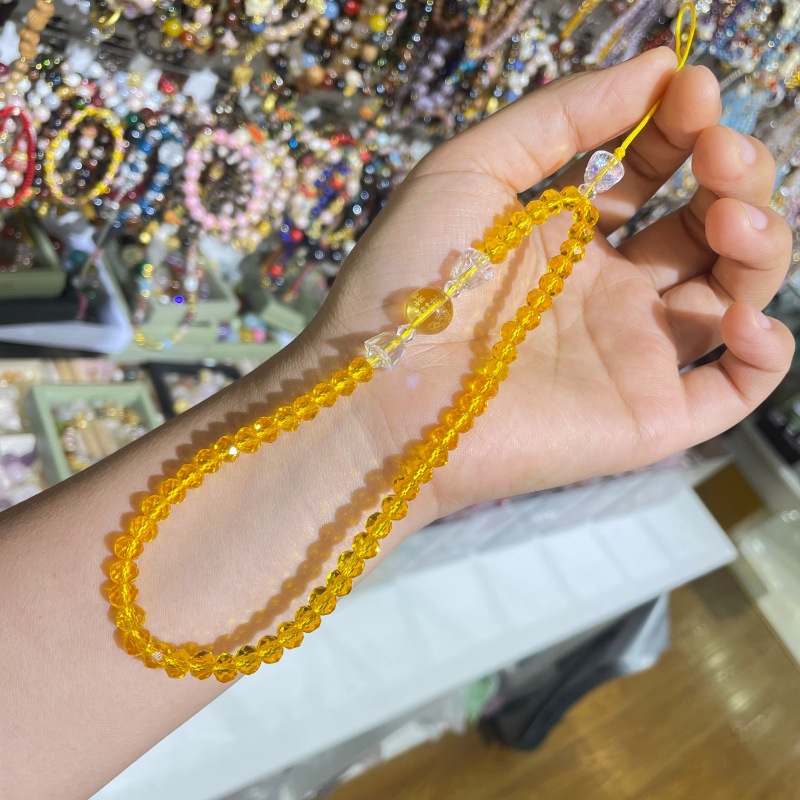 寺廟文創水晶心咒手機鏈彩色琉璃心經藥師黃財神觀音黃色藍色掛鏈