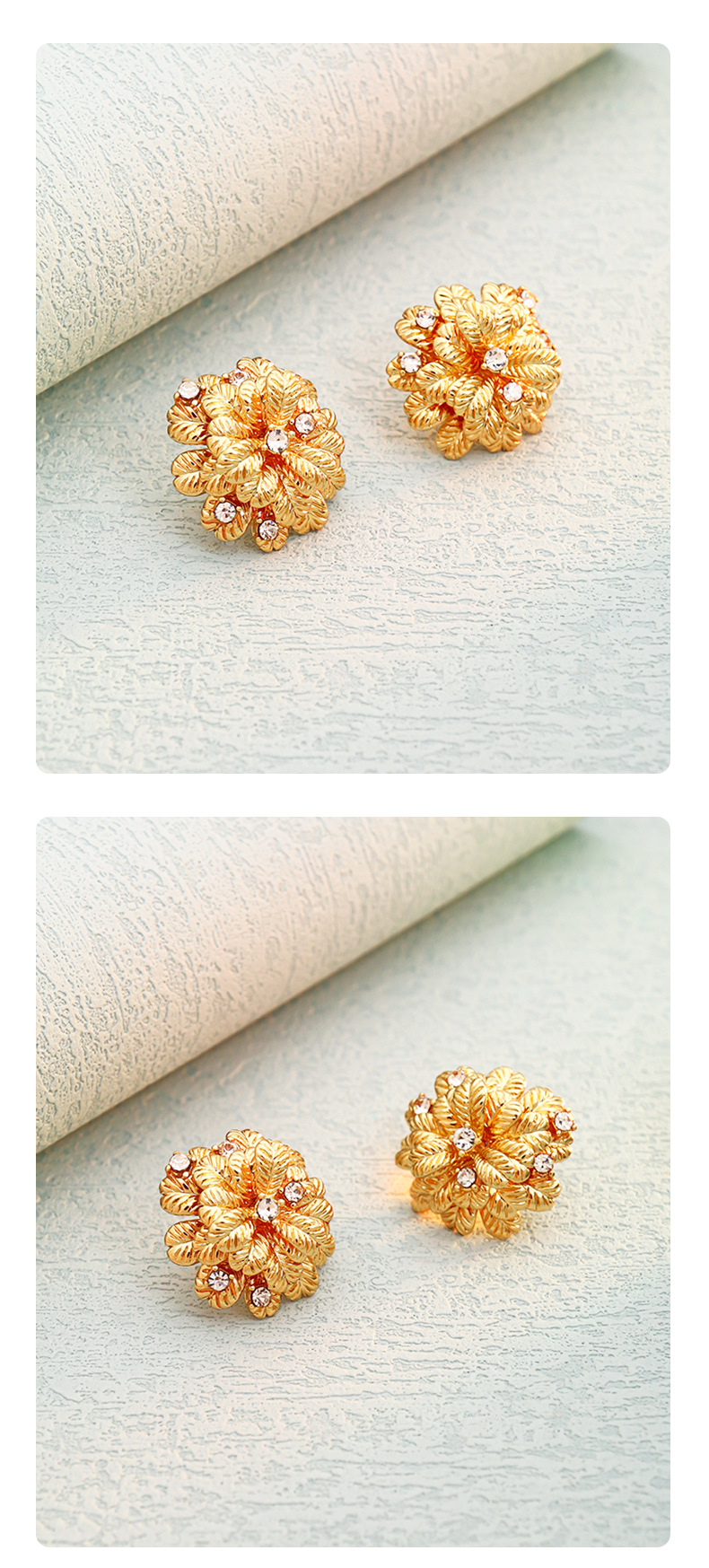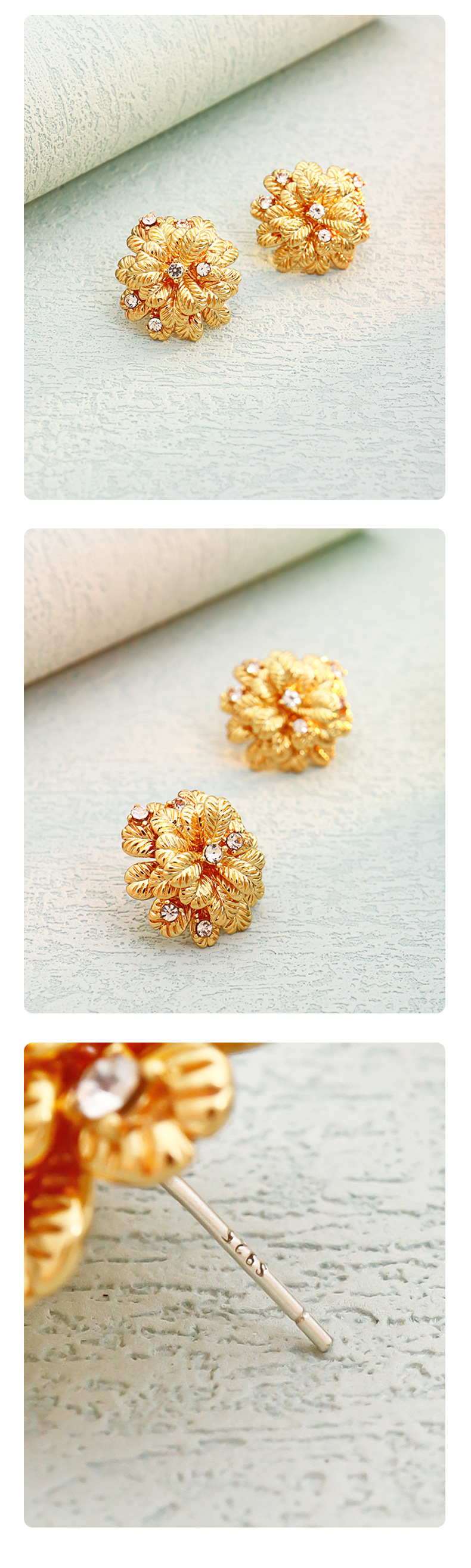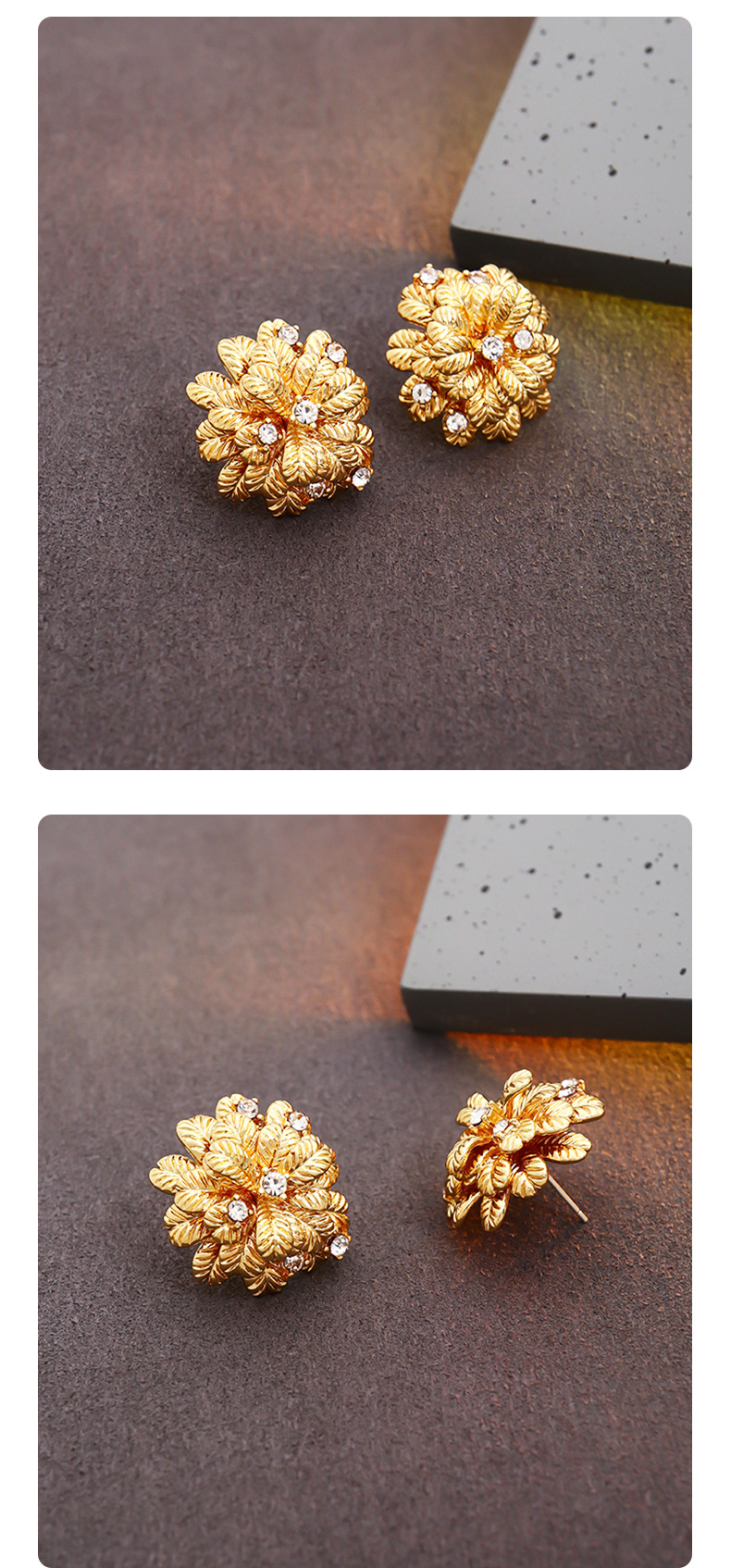 高級金屬感鑲鑽富貴花朵925銀針耳釘高保色18K金電鍍時尚氣質耳環