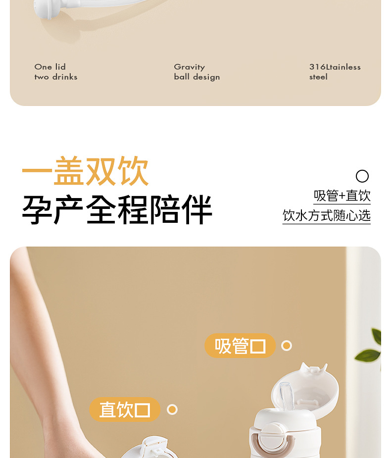 吸琯杯孕婦産婦專用保溫杯帶重力球兒童學生雙飲女月子成人水杯子