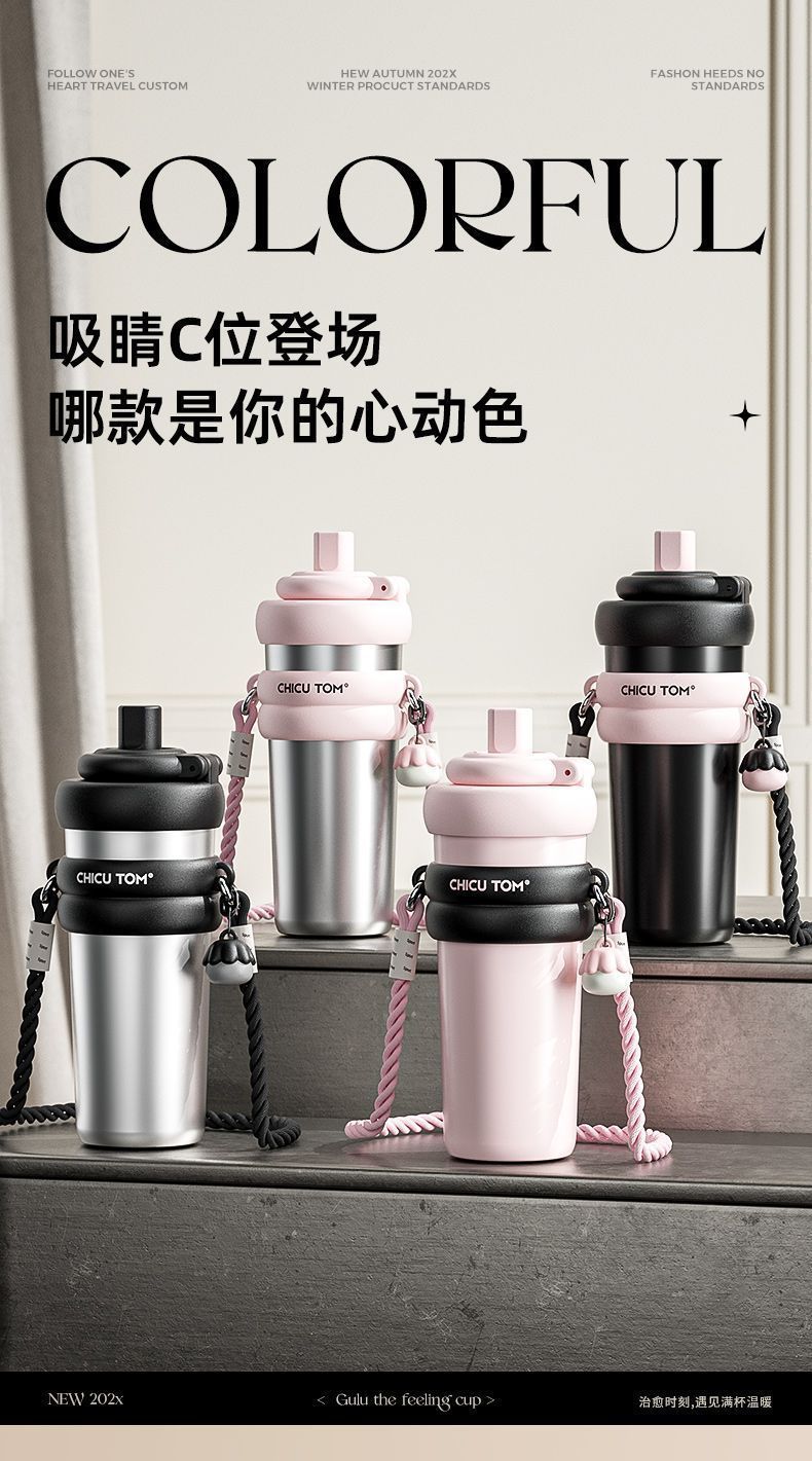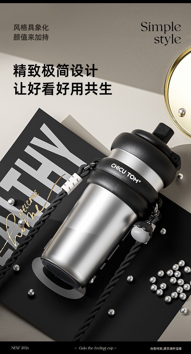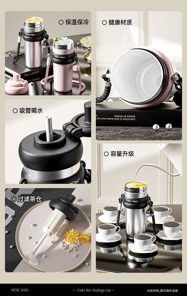 奇古堂吸琯保溫杯大容量女士高顔值車用外出可攜式水杯 2026新款