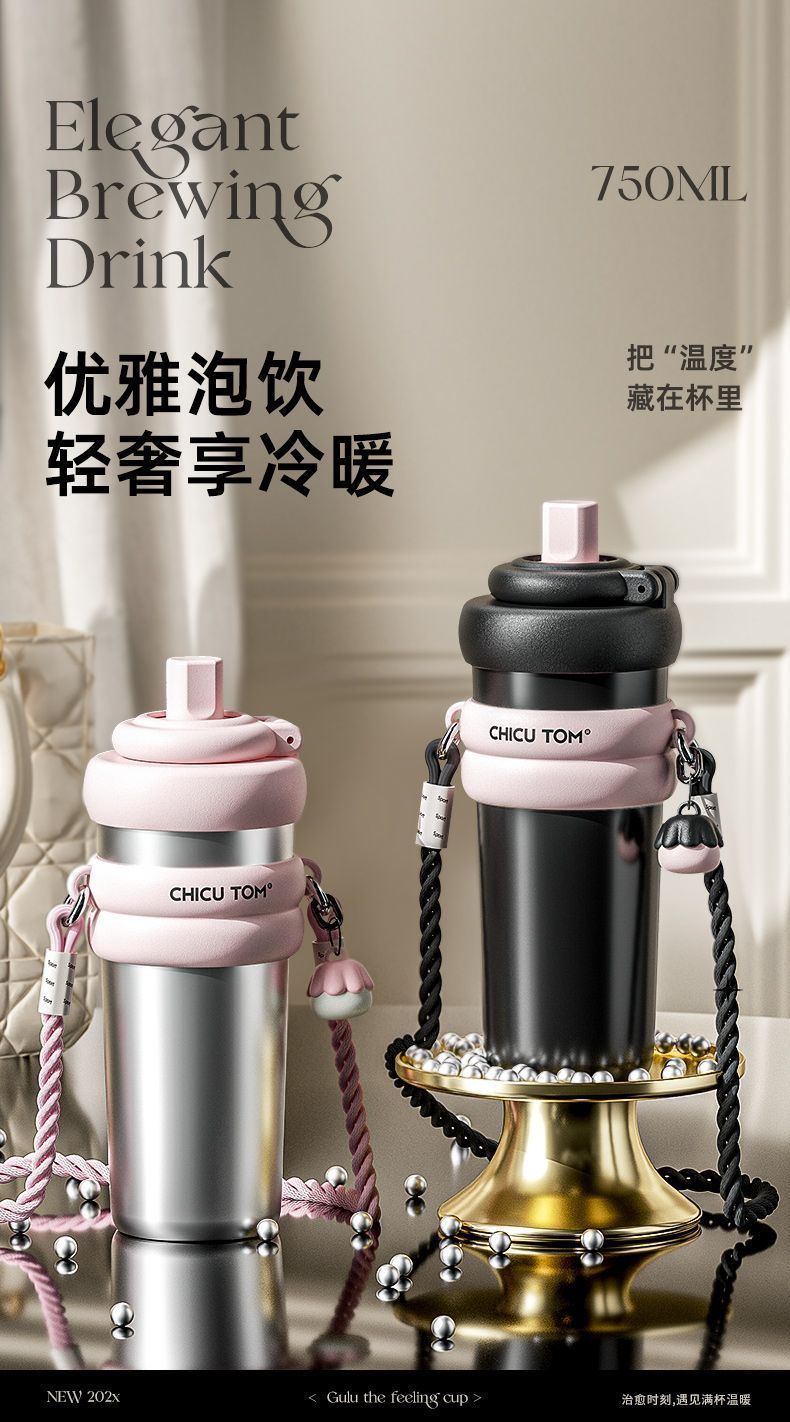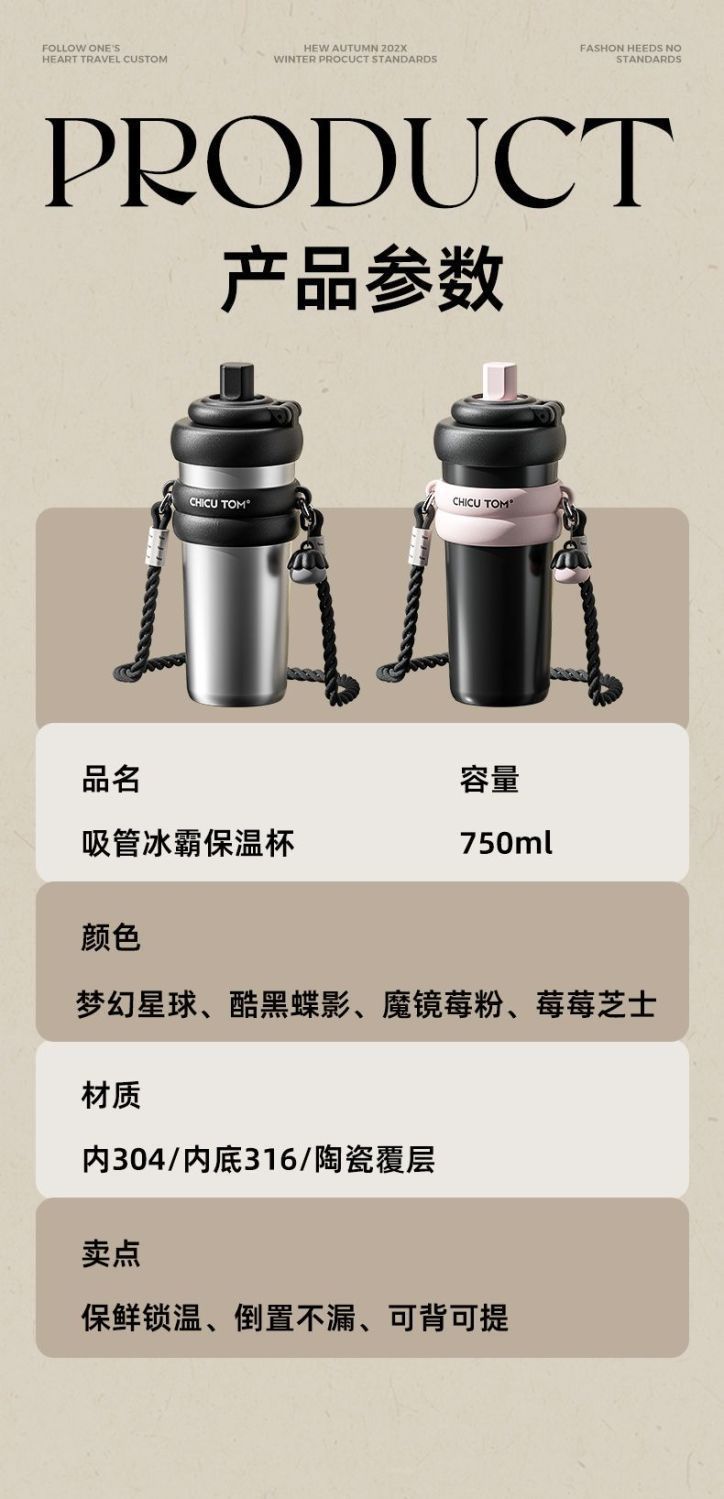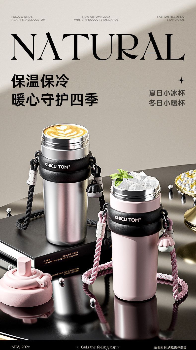 奇古堂吸琯保溫杯大容量女士高顔值車用外出可攜式水杯 2026新款