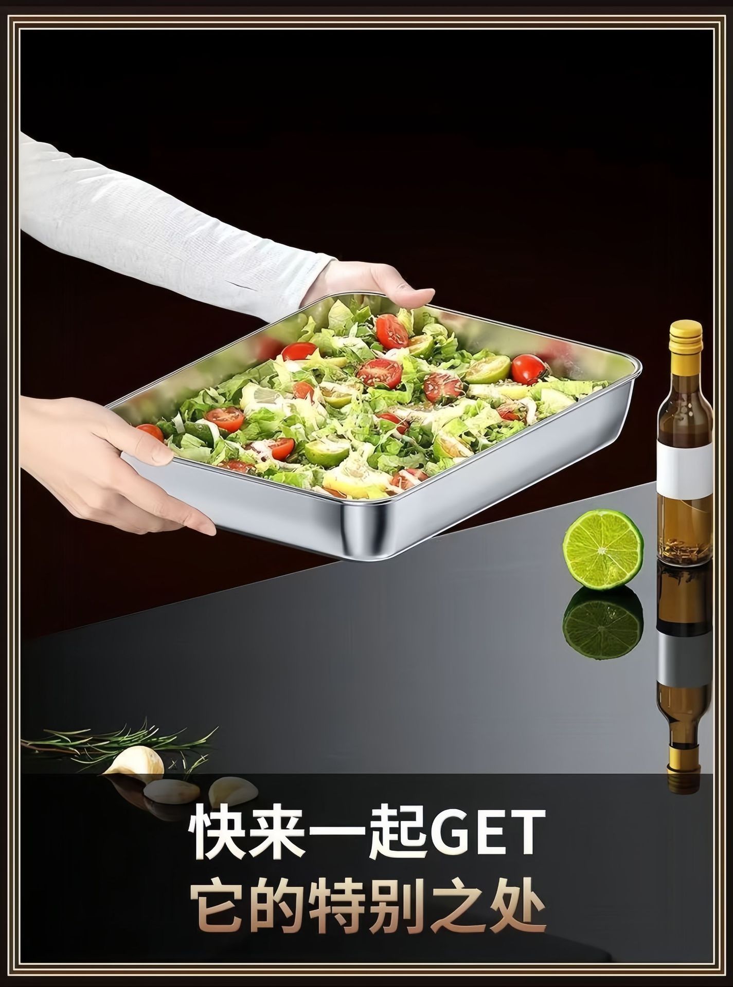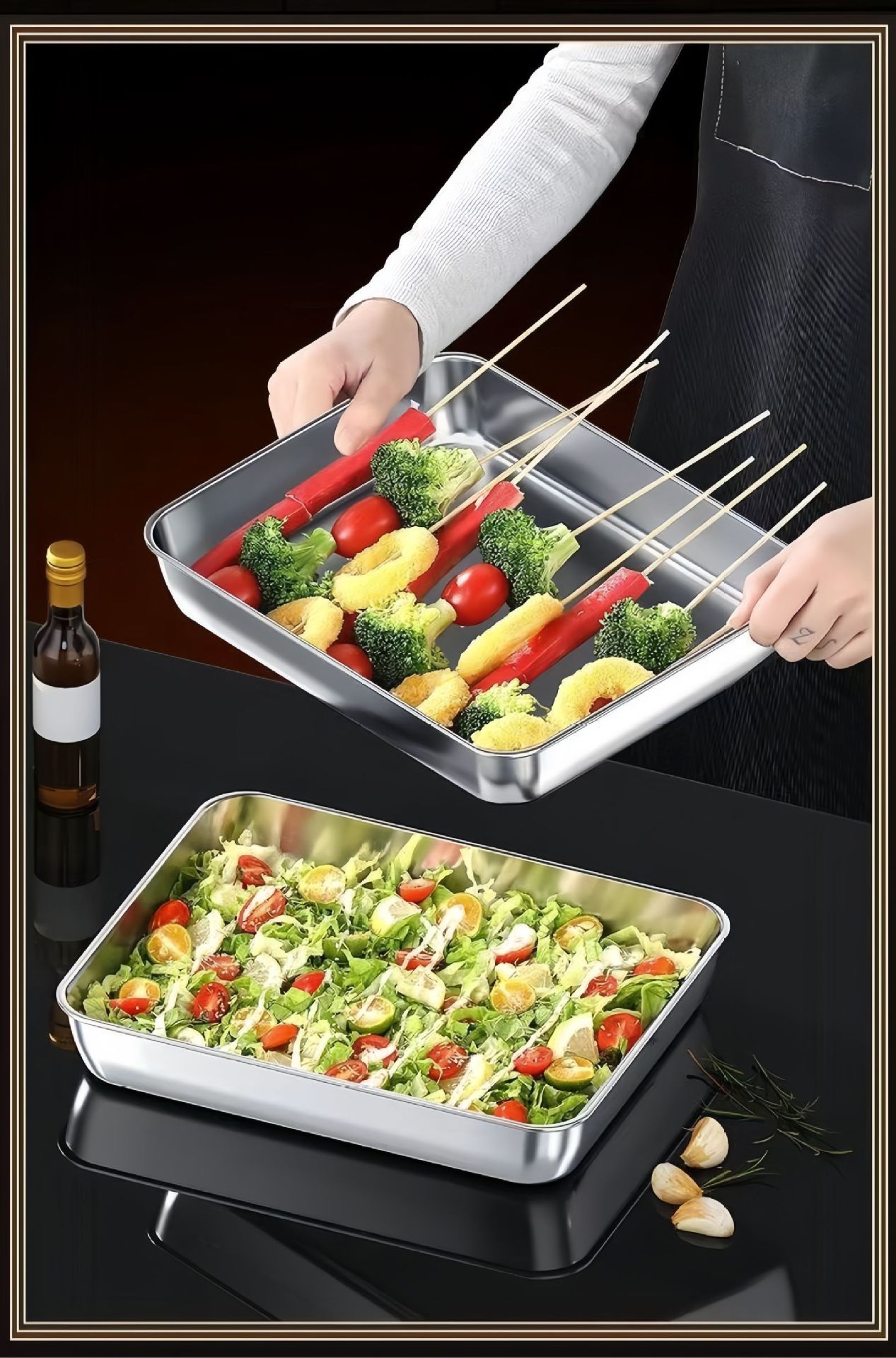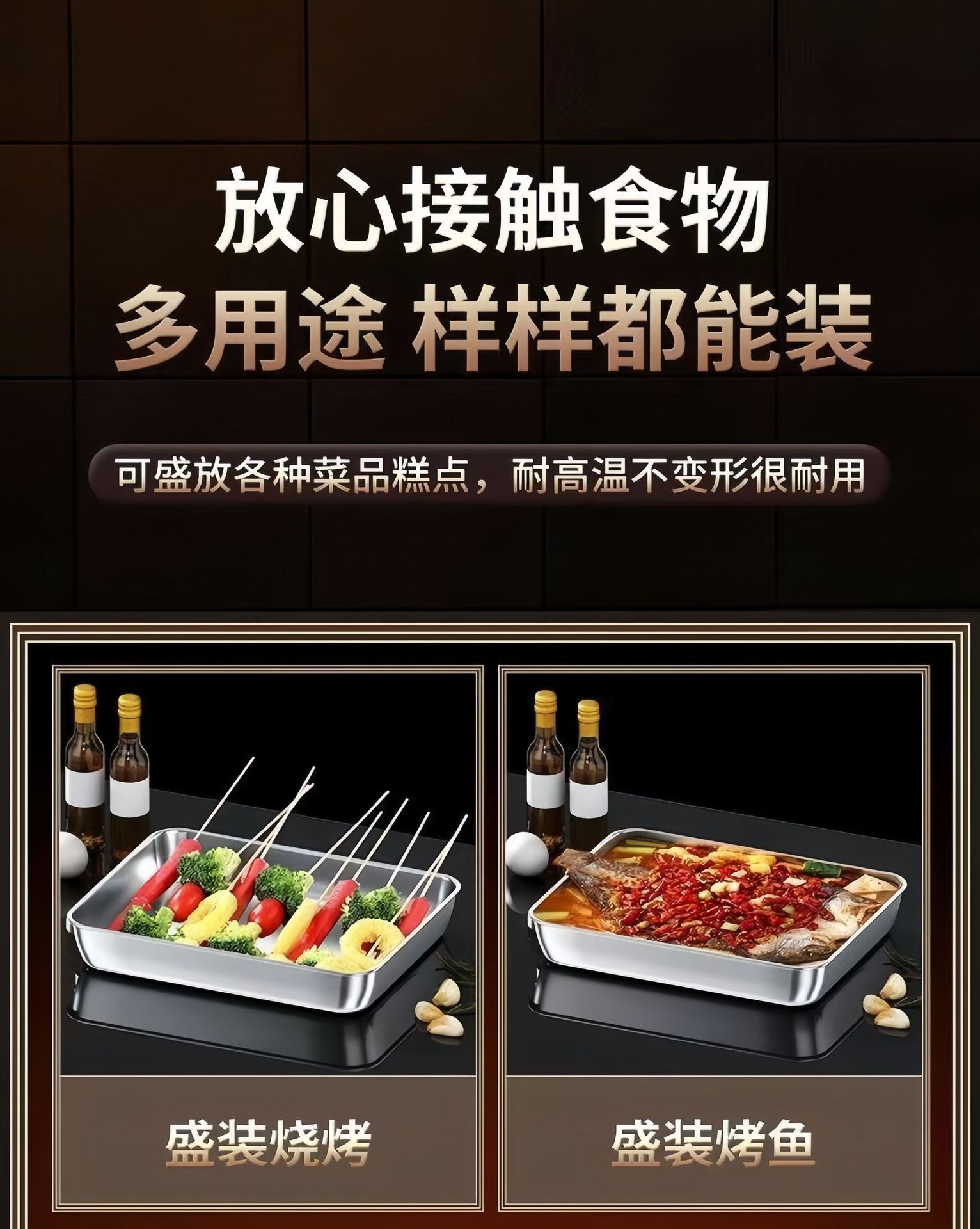 不鏽鋼特厚方盤商用擺攤多用涼菜盤蒸托盤毛巾盤平底加厚蒸盤
