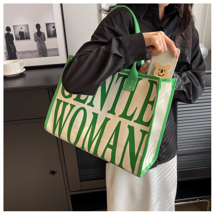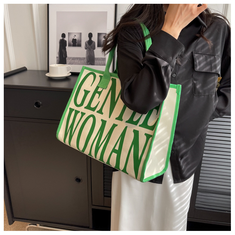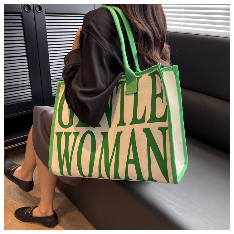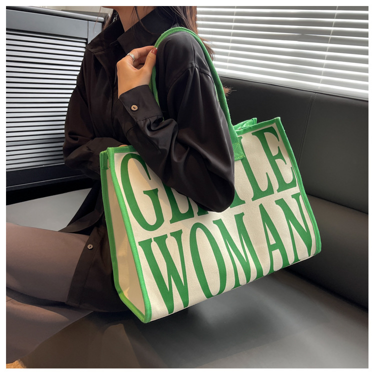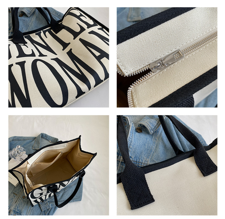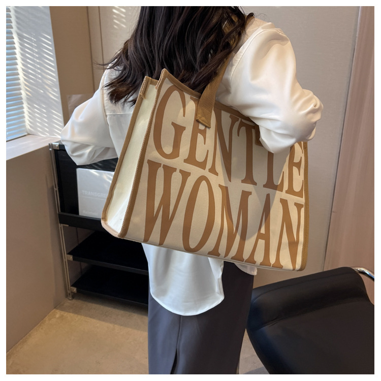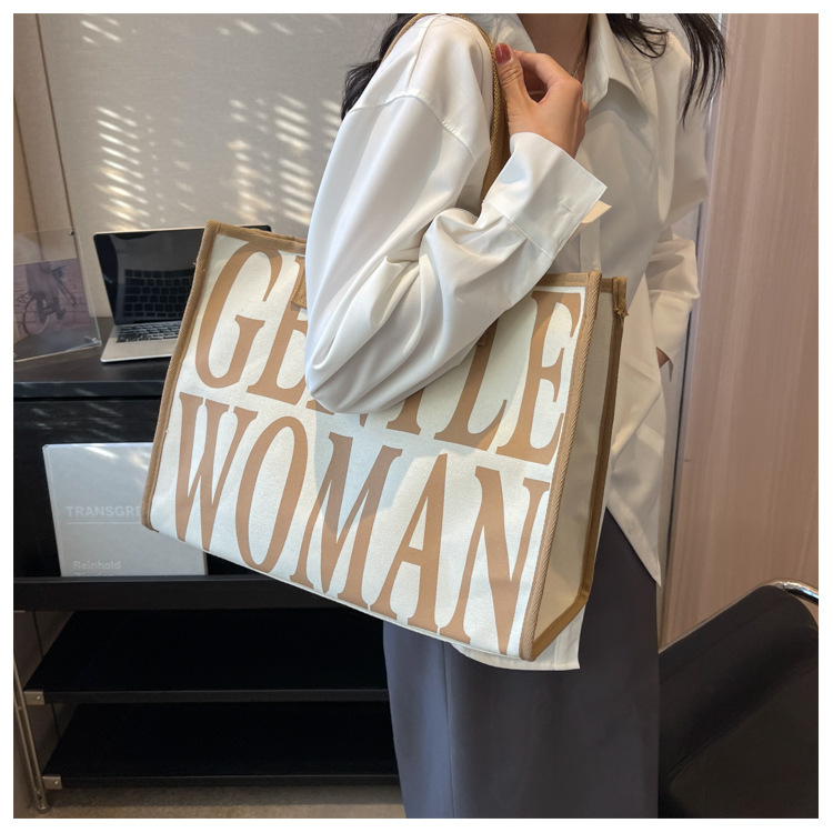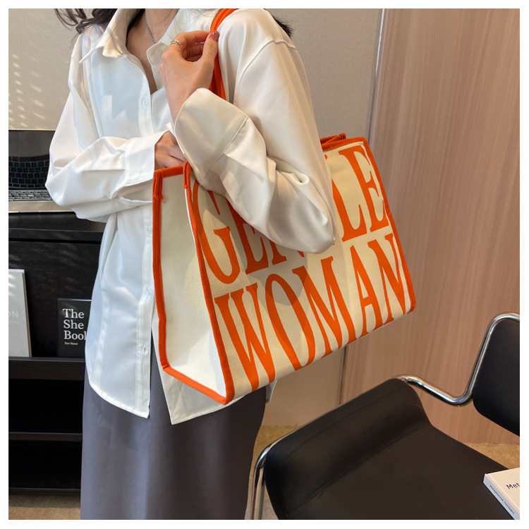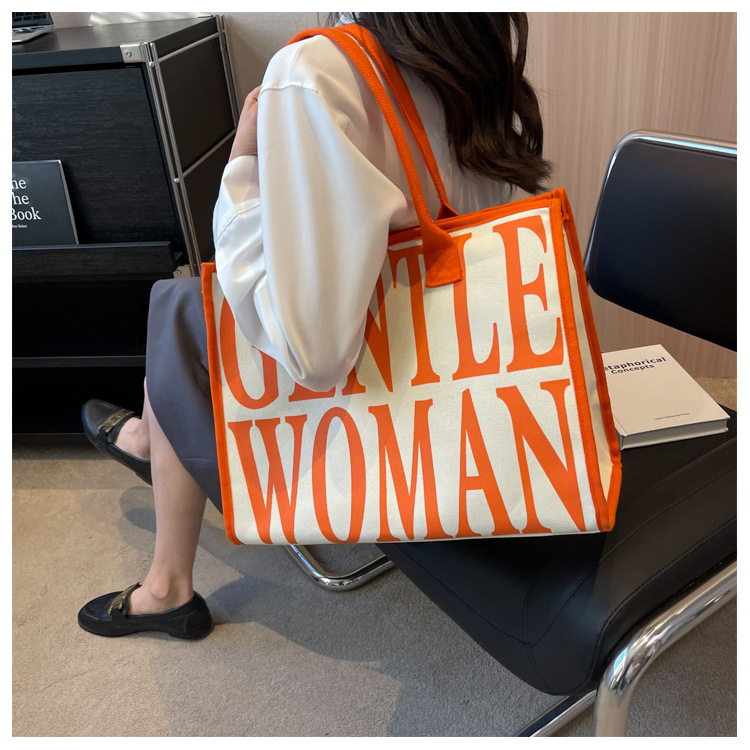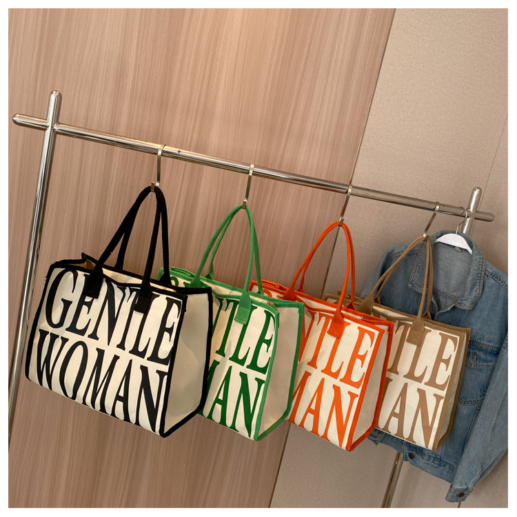 春夏新款泰國款英文字母單肩帆布包包女文藝簡約大容量旅行包
