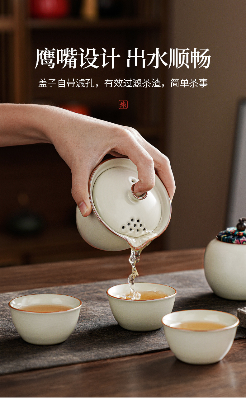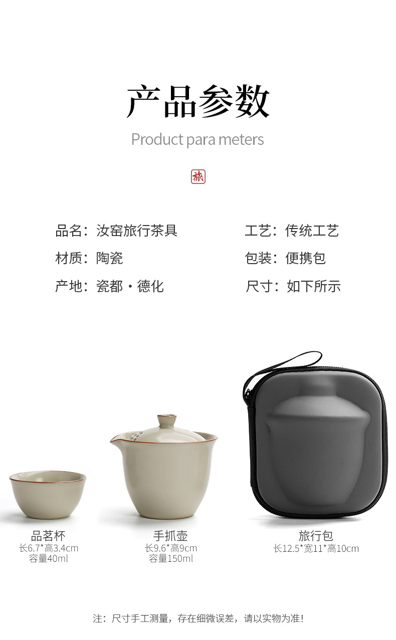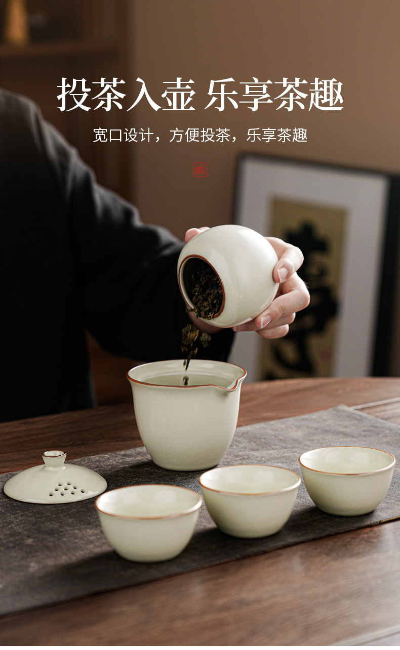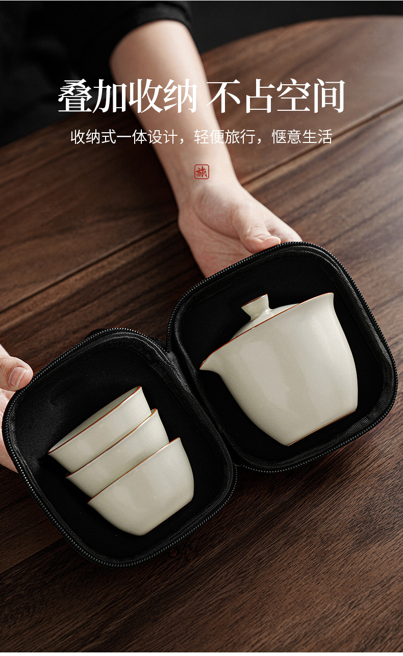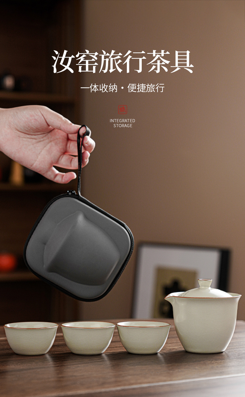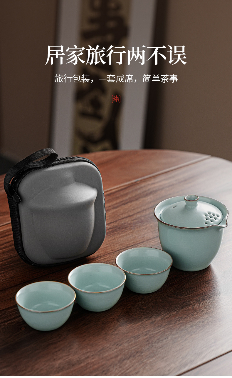 汝窰雅韻陶瓷旅行茶具一壺三杯戶外喝茶裝備可攜式旅行包伴手禮可定