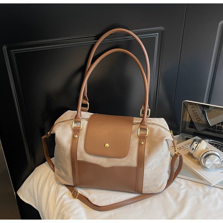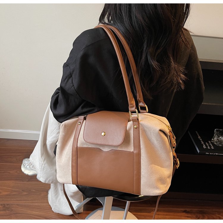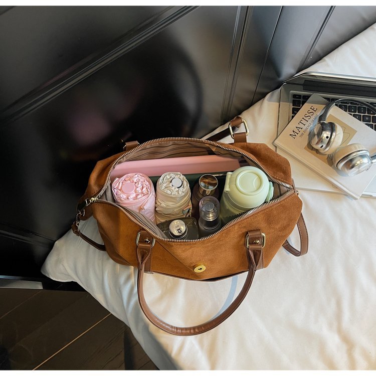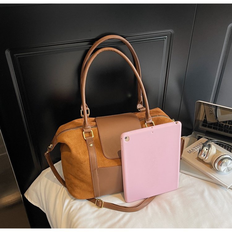 短途旅行包女時尚拼接輕便高顔值手提包可套拉桿箱女士外出行李包