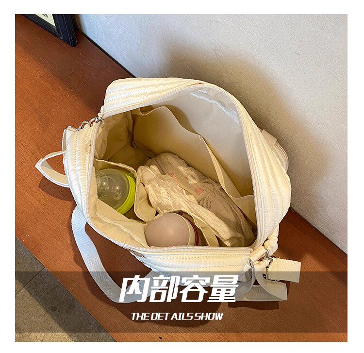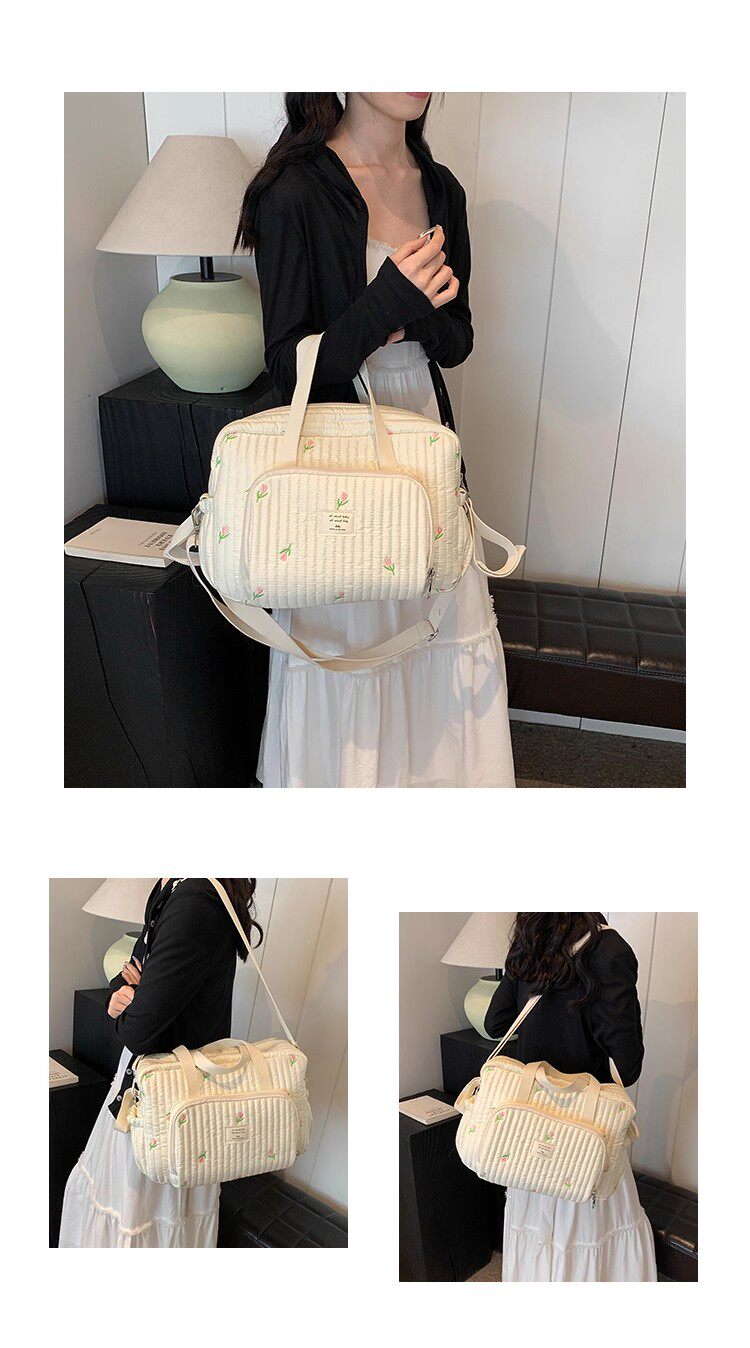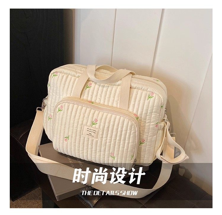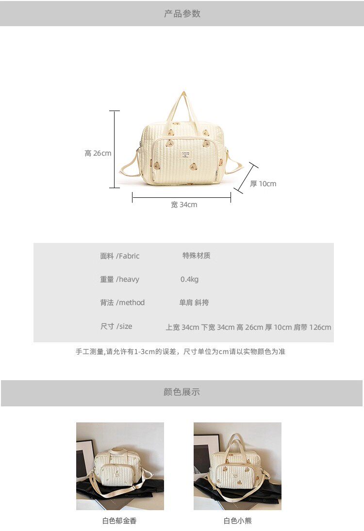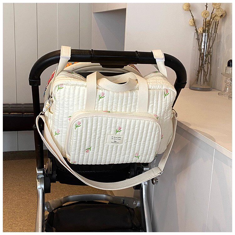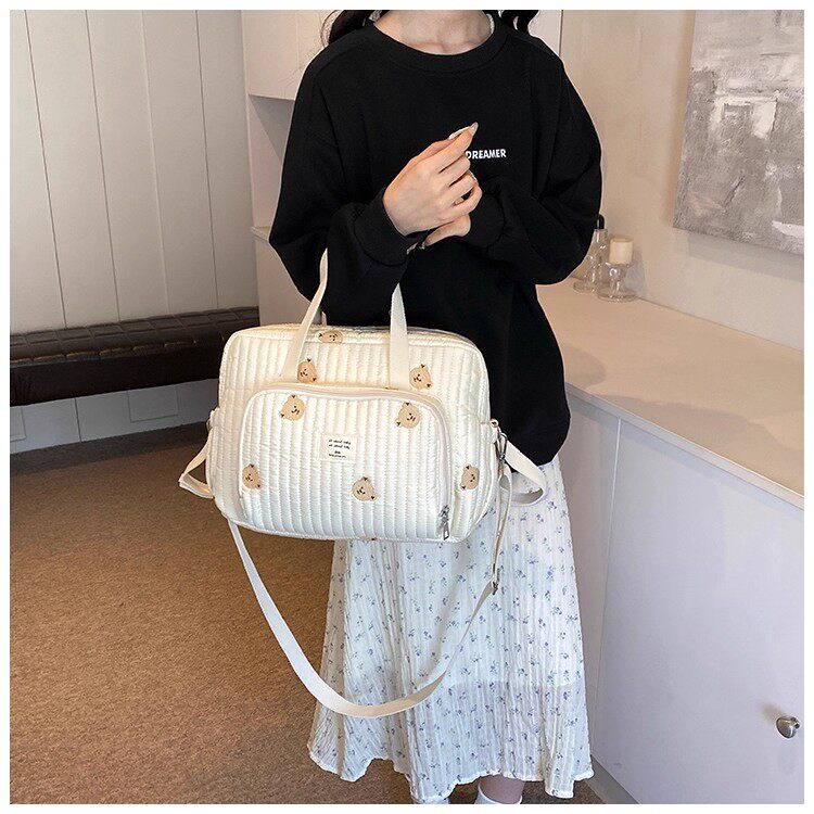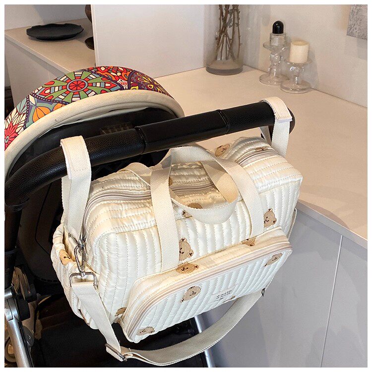韓國ins小熊媽咪包時尚刺綉花朵手提包大容量母嬰外出遛娃旅行包