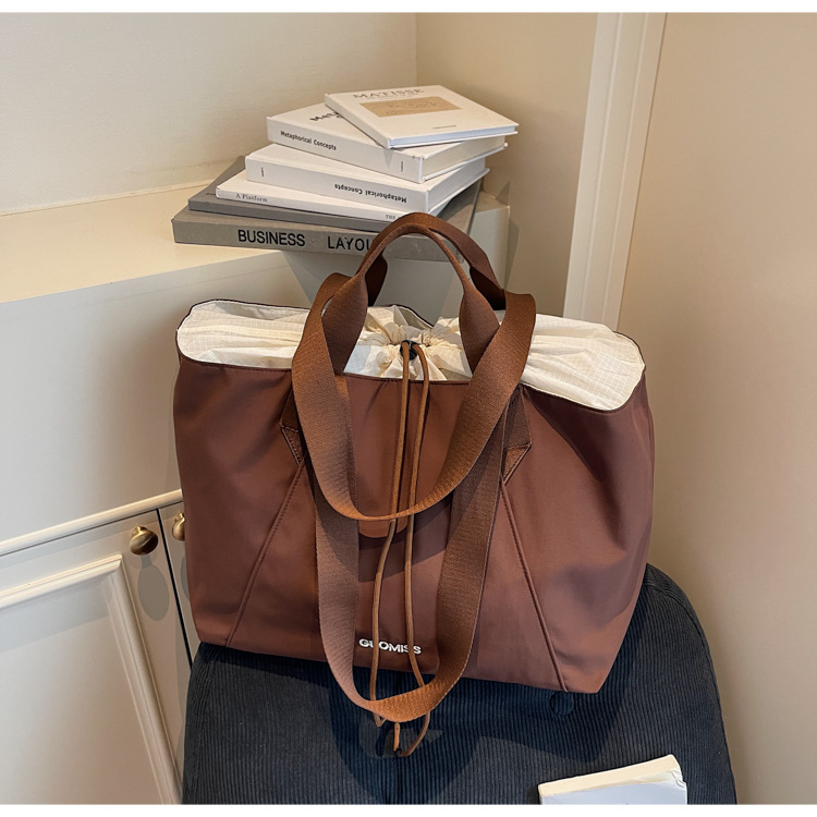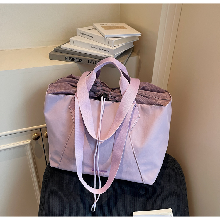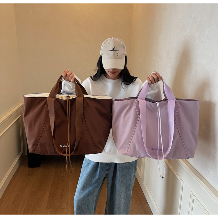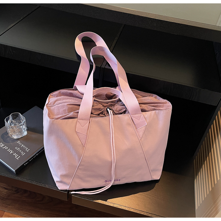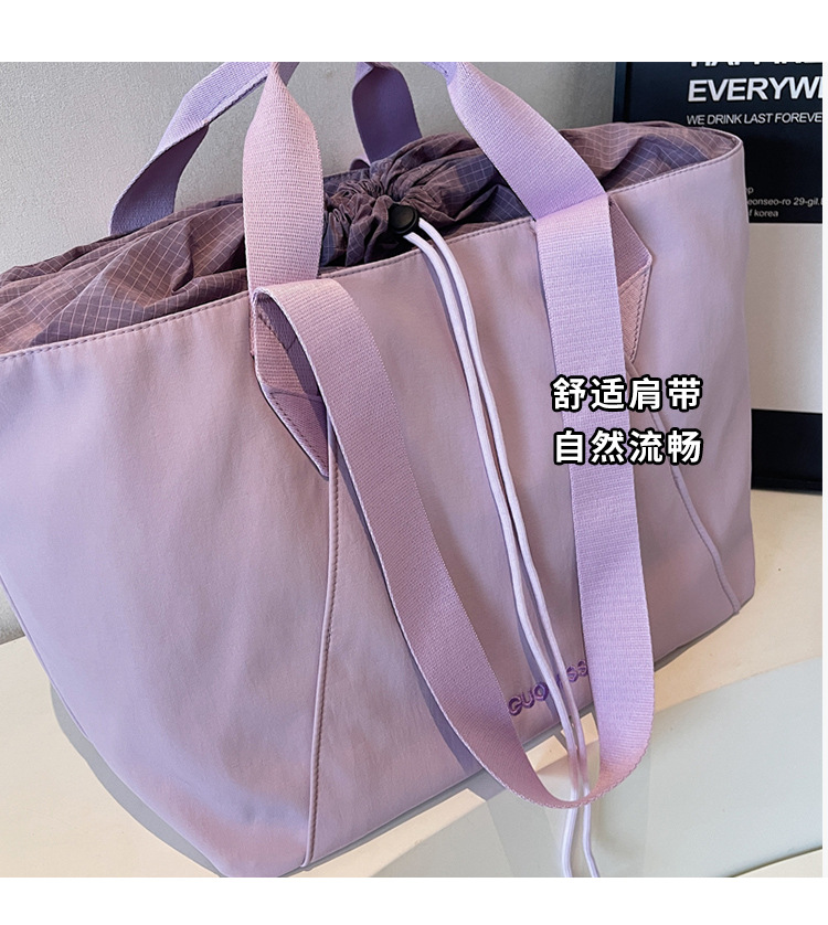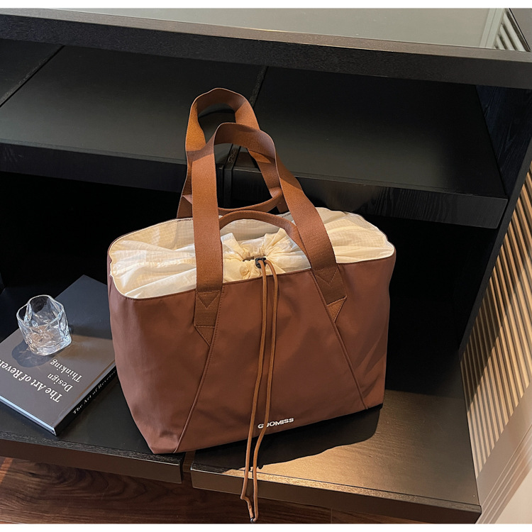 短途旅行包女大容量束口袋托特包休閒旅遊行李袋高級感手提健身包