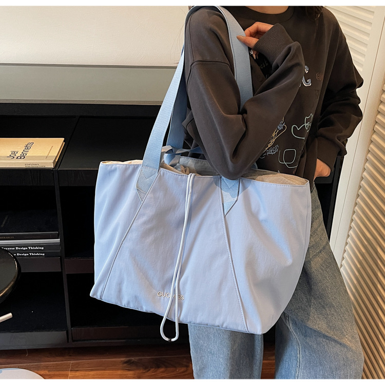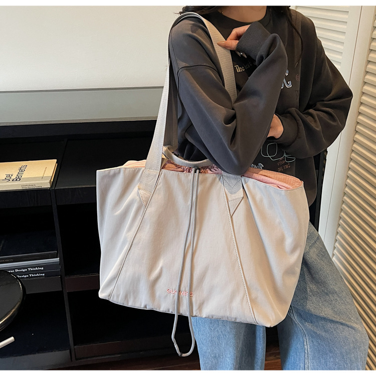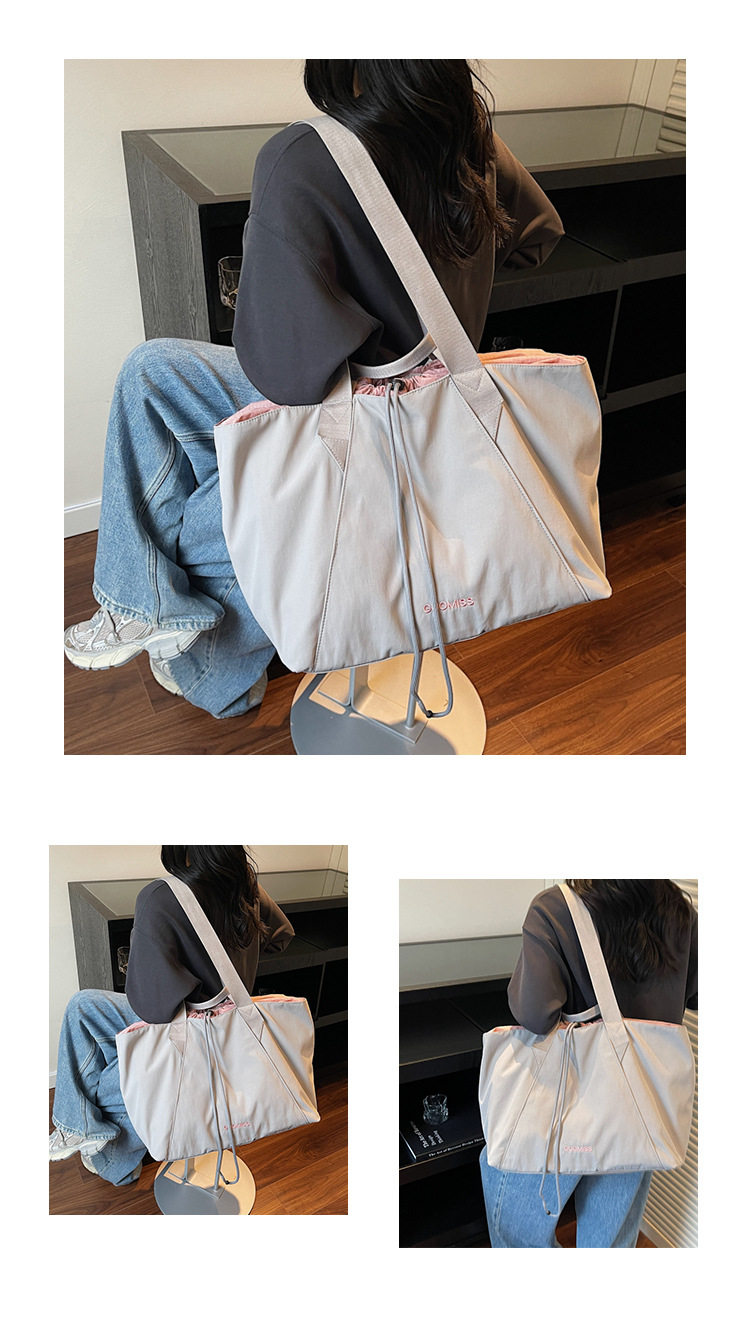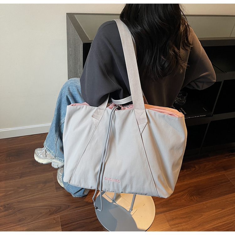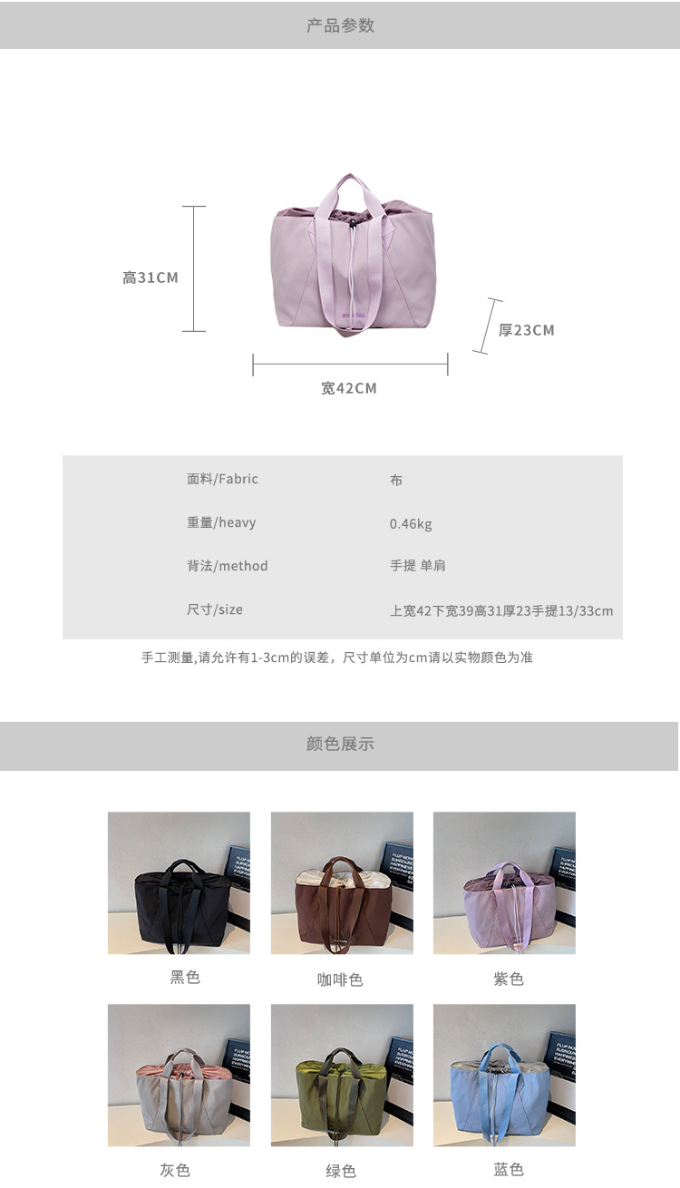 短途旅行包女大容量束口袋托特包休閒旅遊行李袋高級感手提健身包