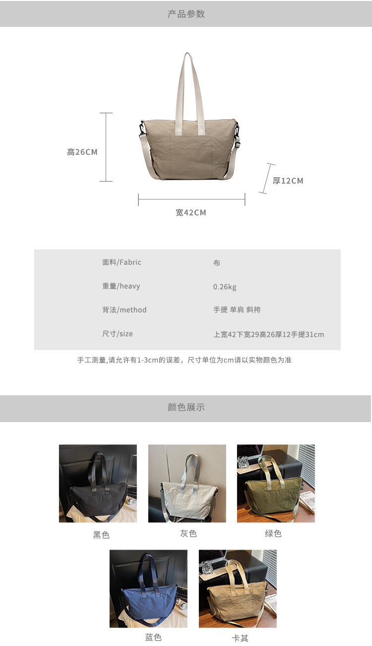 女士旅行包防水尼龍布包百搭單肩斜背健身包大容量手提包休閒通勤