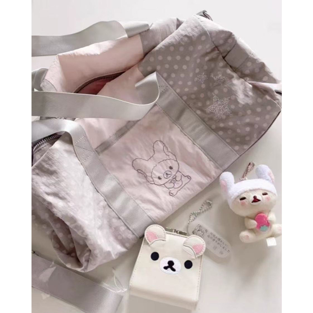 可愛卡通熊刺綉短途旅行包2025新款單肩包大容量輕便手提包